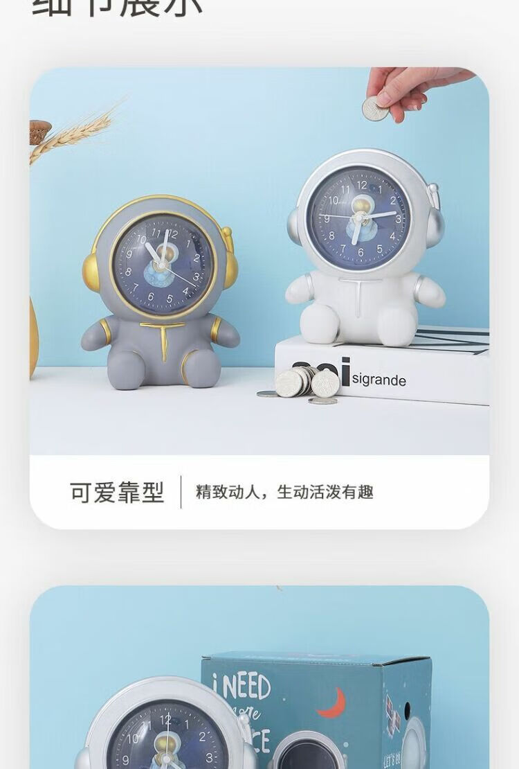 Leaf cutter ant astronaut astronaut piggy bank can be stored and retrievable bedroom desktop small ornaments children's day birthday gift piggy bank white trumpet with clock