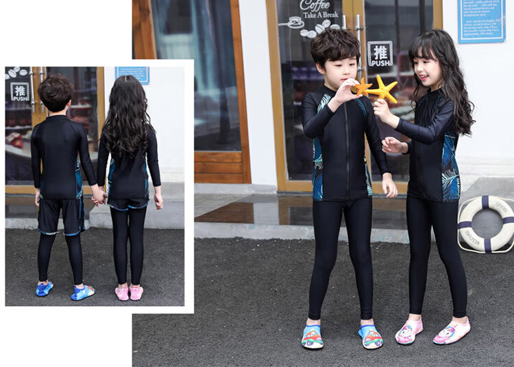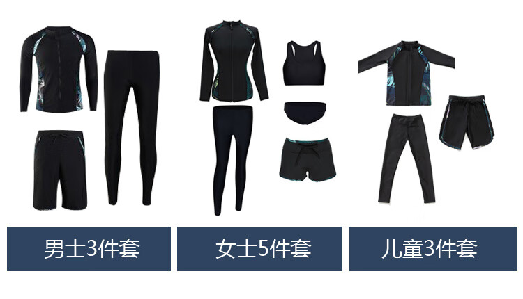 Citoor wetsuit complete set of men's and women's parent-child swimwear sun protection couple split snorkeling suit surfing suit jellyfish suit quick-drying adult-men's 3-piece set 2XL