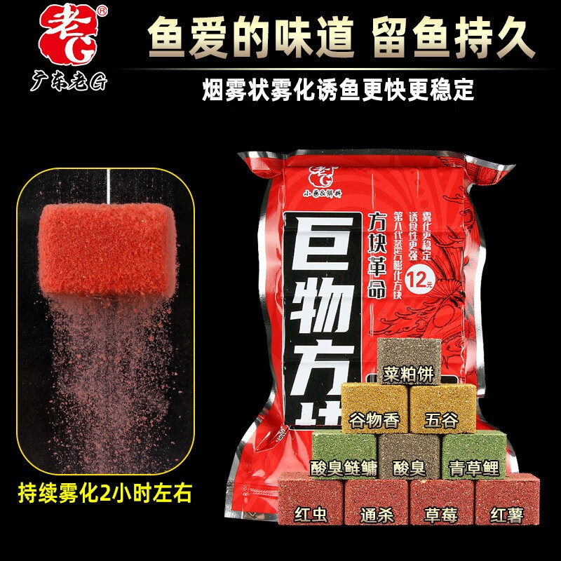 Old G Giant Cube Bait Silver Carp and Bighead Carp Big-head Throwing Rod Fishing Bait Sour Strawberry Cube Cake Explosive Hook Fish Feed Mud Dace Peanuts Tongsha (crucian carp, tilapia, silver carp, bighead carp, grass bream, dace)