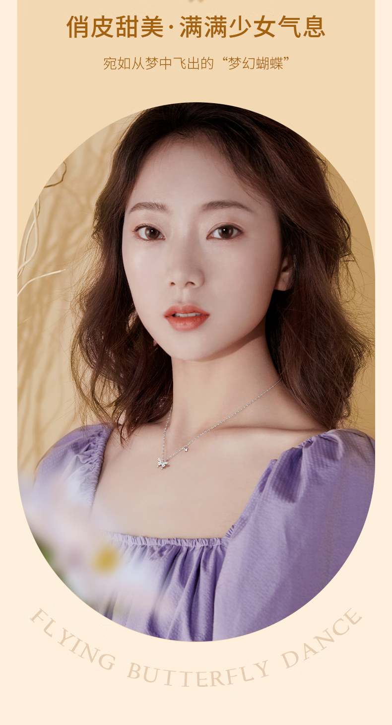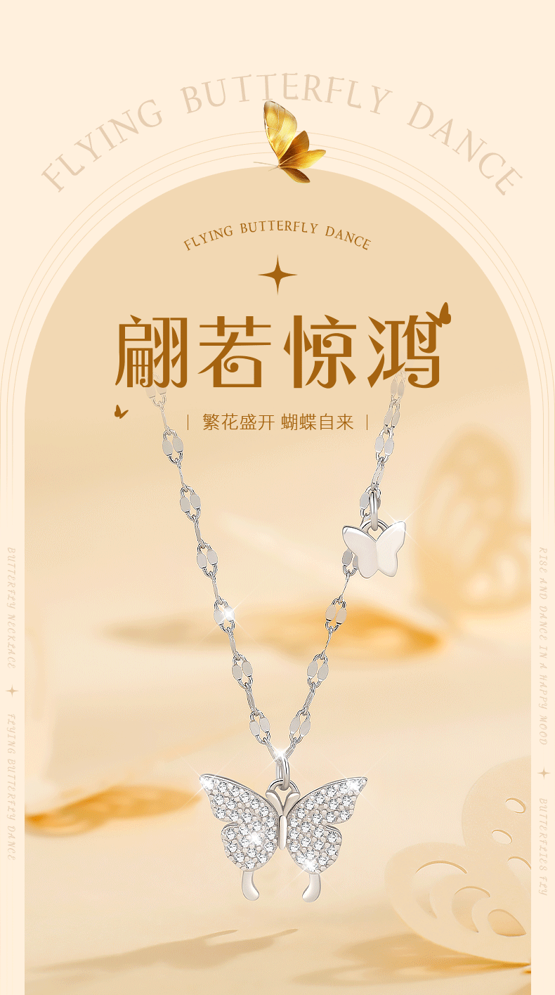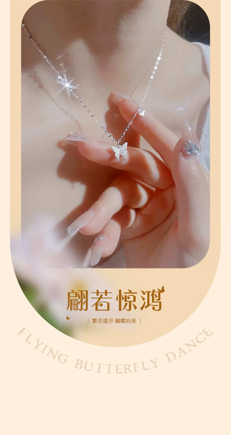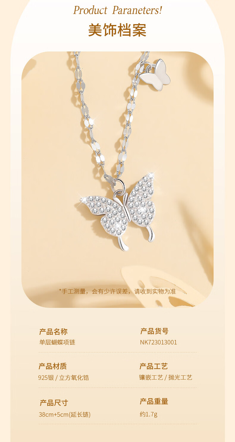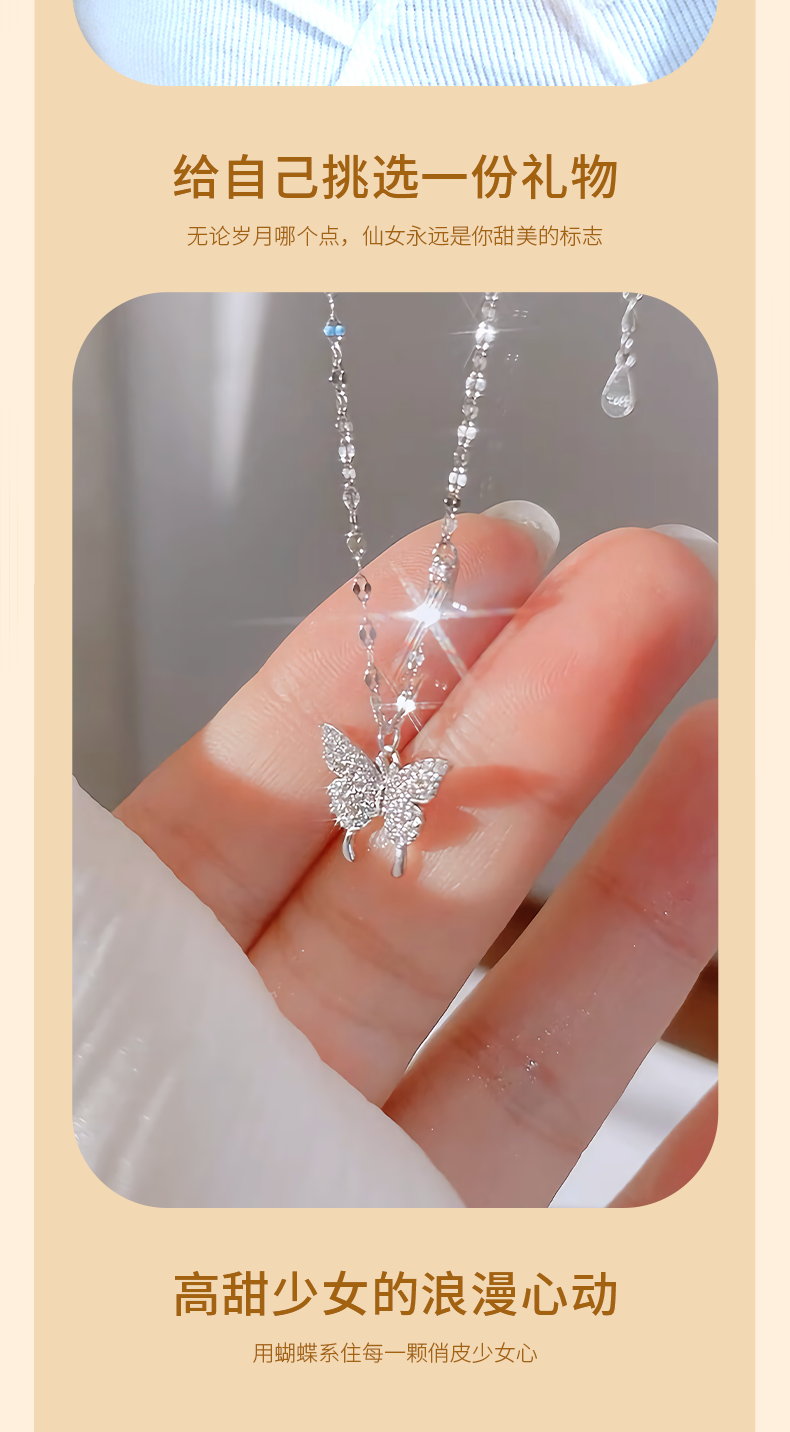 Mini&yaya925 silver butterfly necklace female pendant fashion jewelry female birthday Valentine's Day gift for girlfriend and wife sparkling butterfly necklace