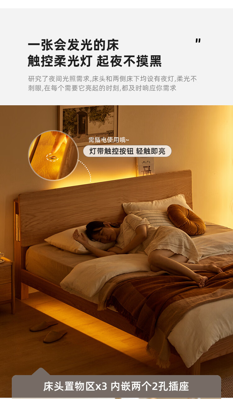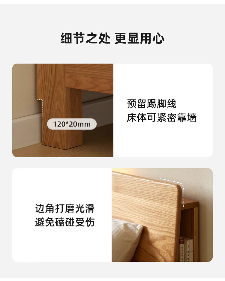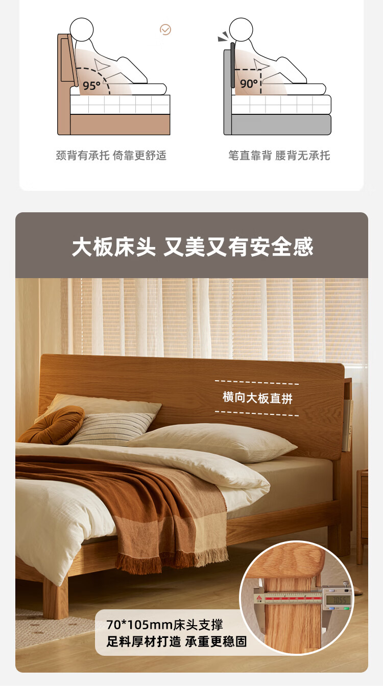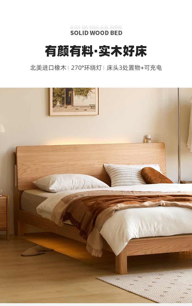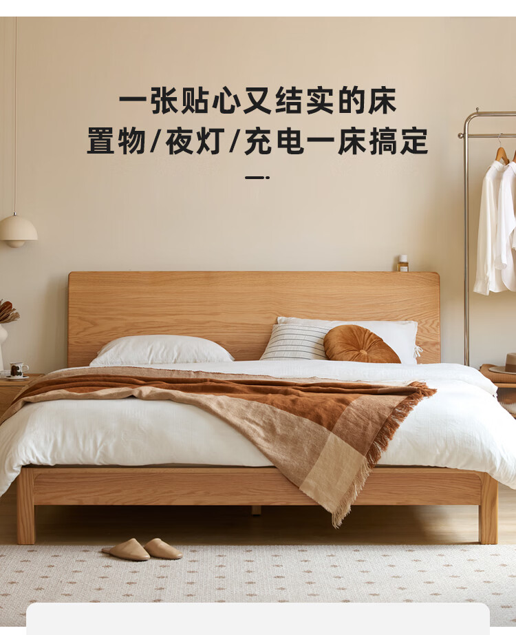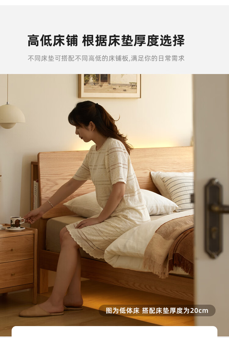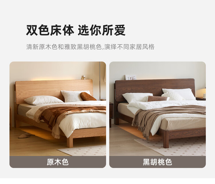 Original element all solid wood bed modern minimalist master bedroom double bed pure solid wood mortise and tenon large bed L701D low body - solid wood color 1.5*2.0m single bed large bed