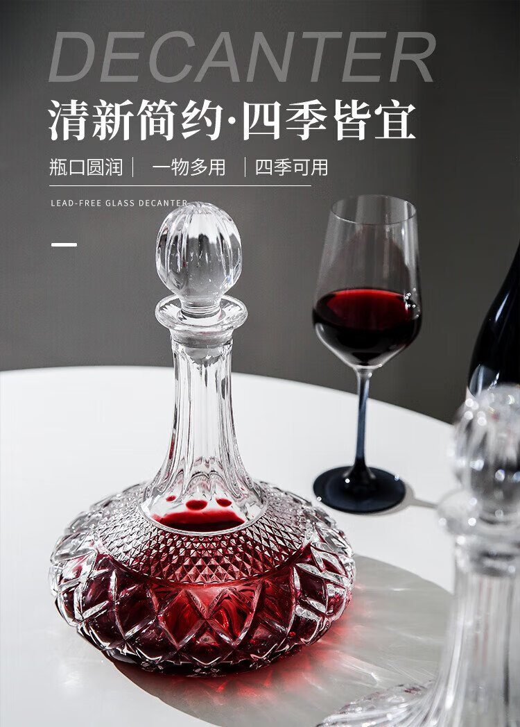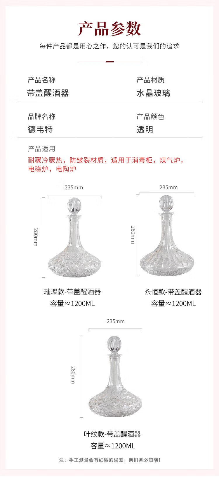 DWIGHT (DWIGHT) high-end light luxury crystal glass red wine decanter household with lid wine quick wine divider pouring wine bottle wine set Brilliant model with lid decanter 1.2L + gift box