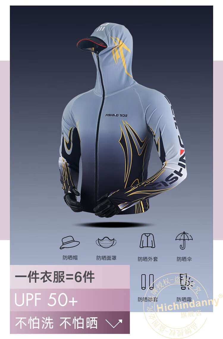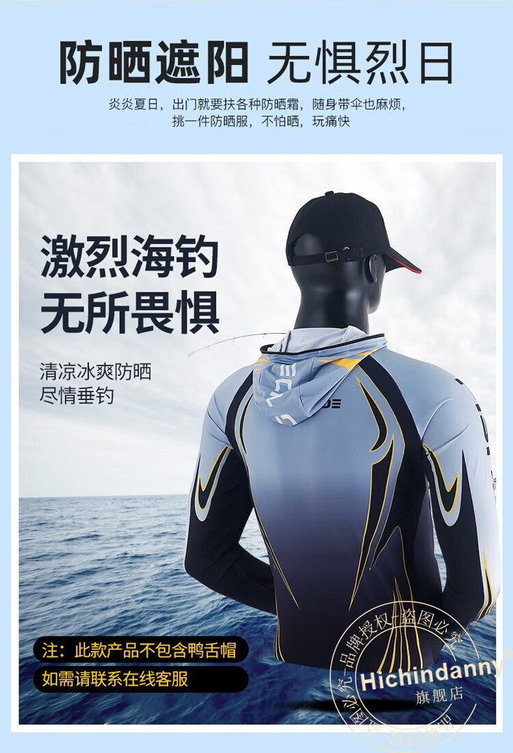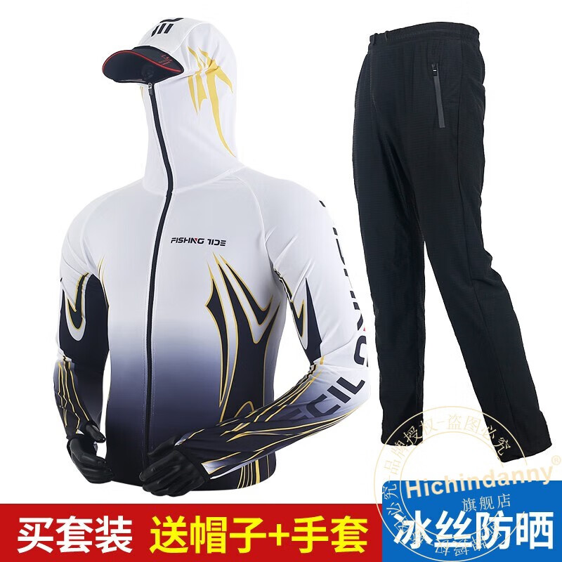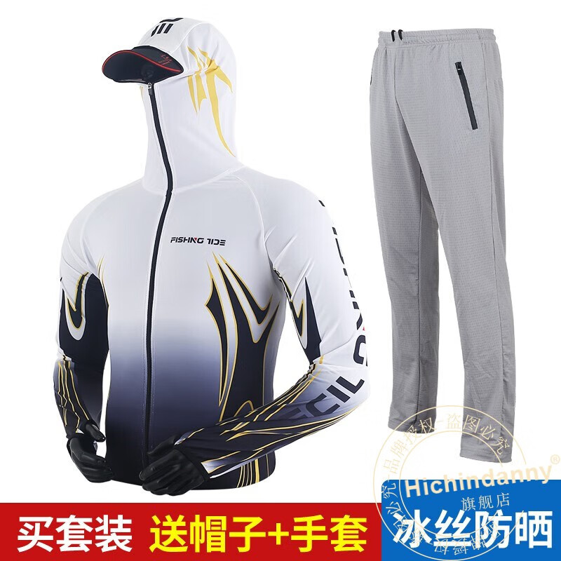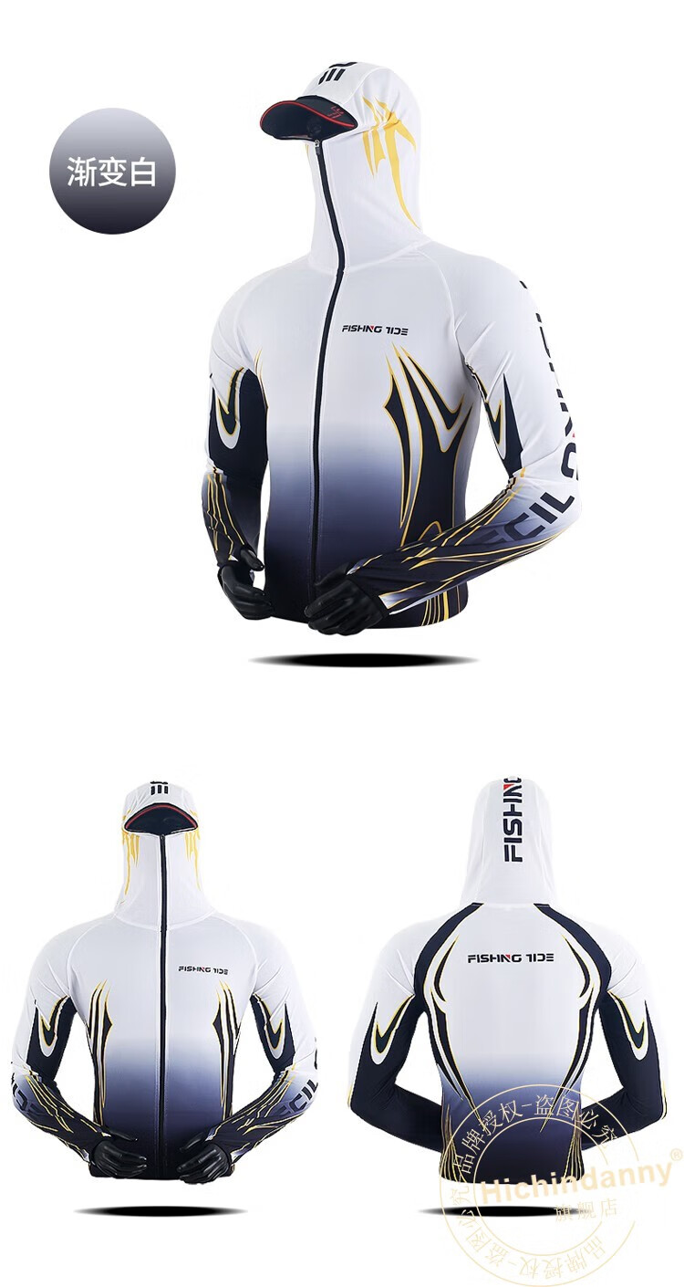 HICHIN DANNY fishing clothing men's sun protection clothing suit ice silk quick-drying top spring and summer sea fishing clothing Luya sun protection fishing clothing new white top S suitable for 100Jin Jin equal to 0.5 kg or less