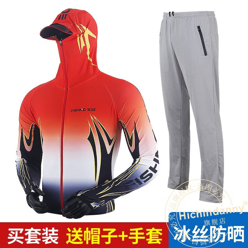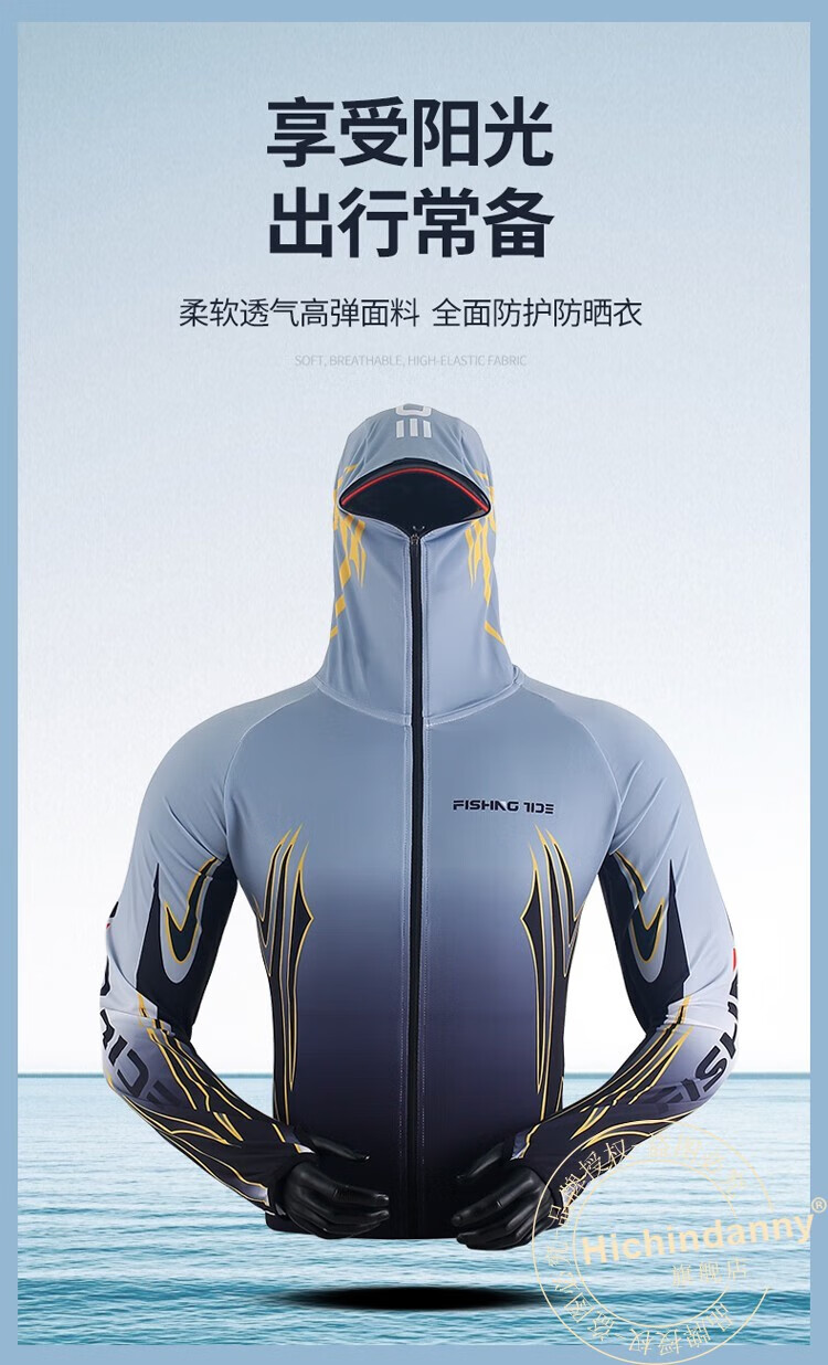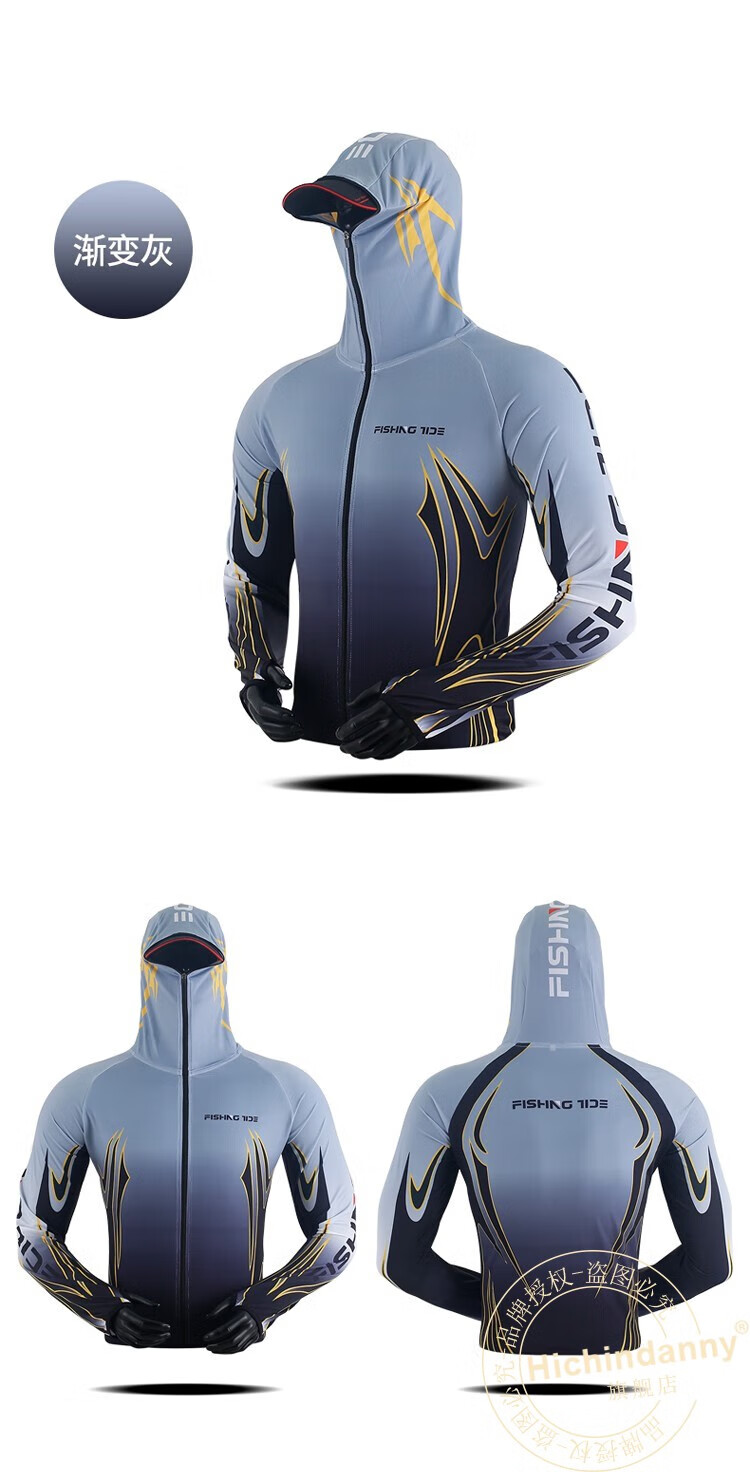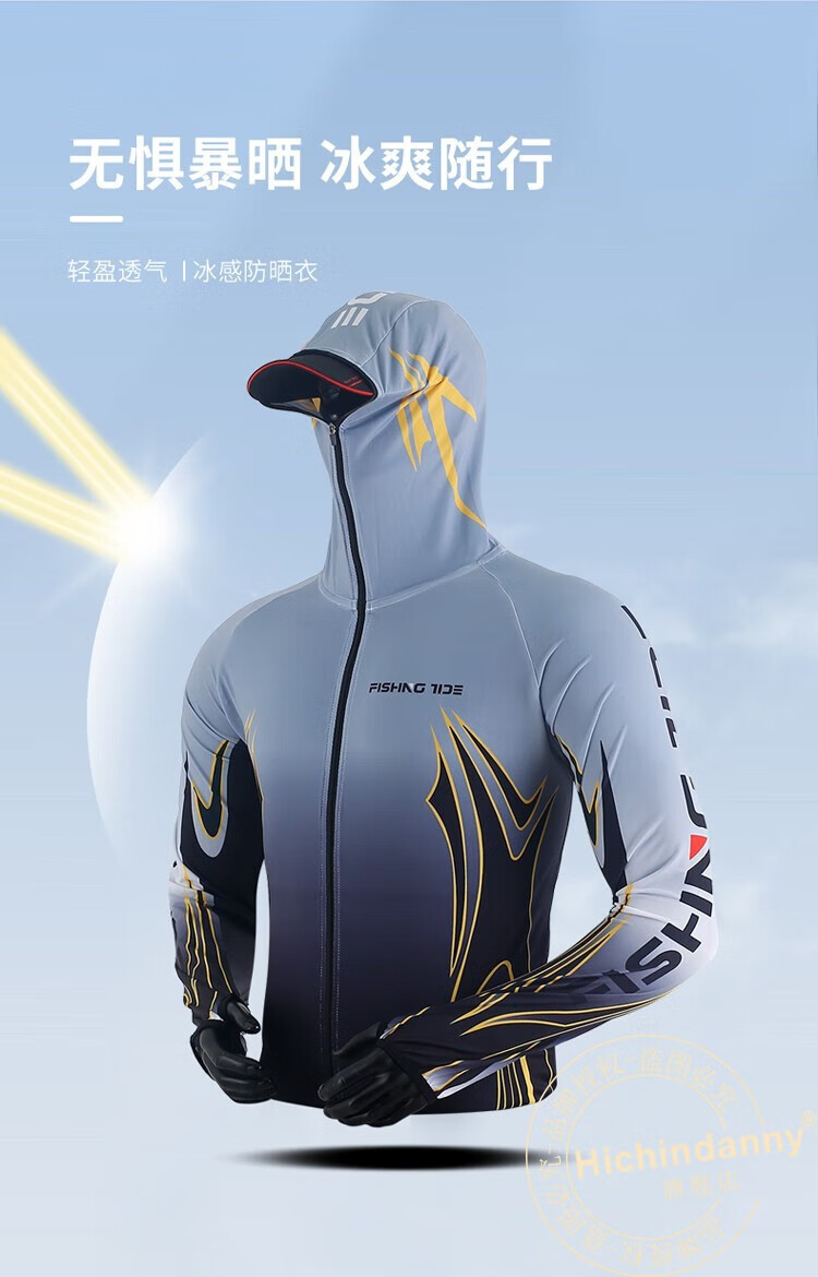 HICHIN DANNY fishing clothing men's sun protection clothing suit ice silk quick-drying top spring and summer sea fishing clothing Luya sun protection fishing clothing new white top S suitable for 100Jin Jin equal to 0.5 kg or less