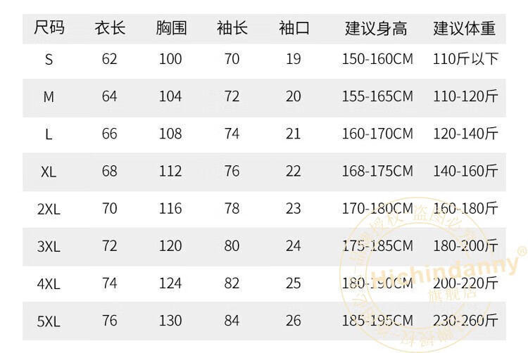 China (cm) 165 / 88-90 170 / 96-98 175 / 108-110 180 / 118-122 185 / 126-130