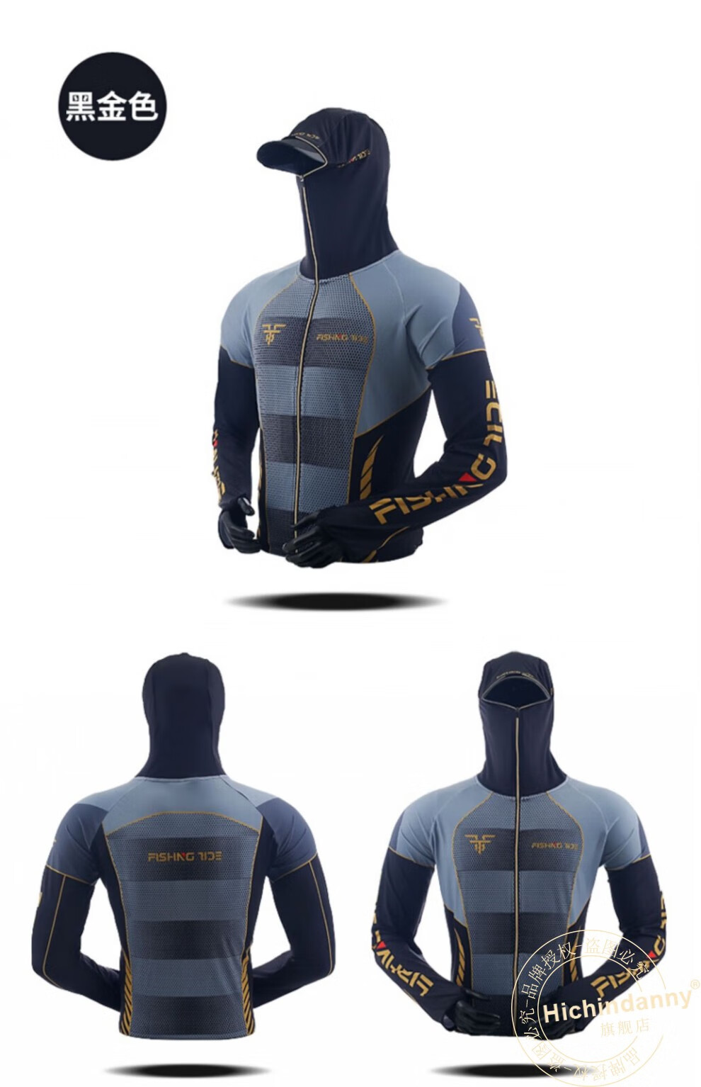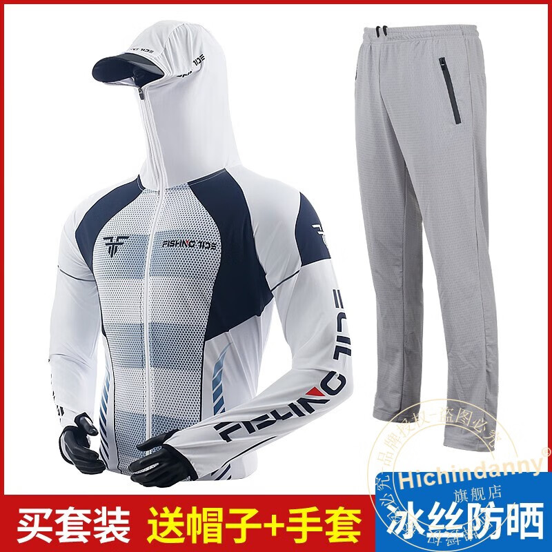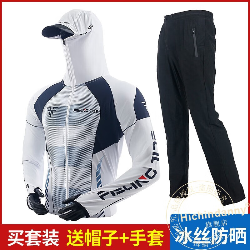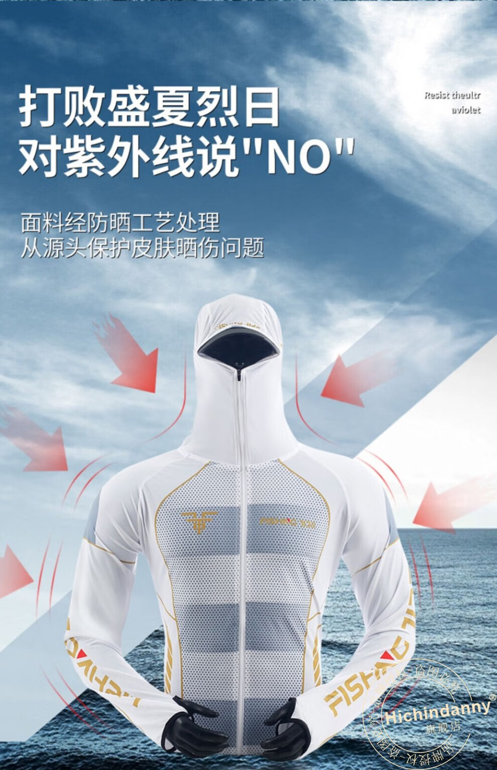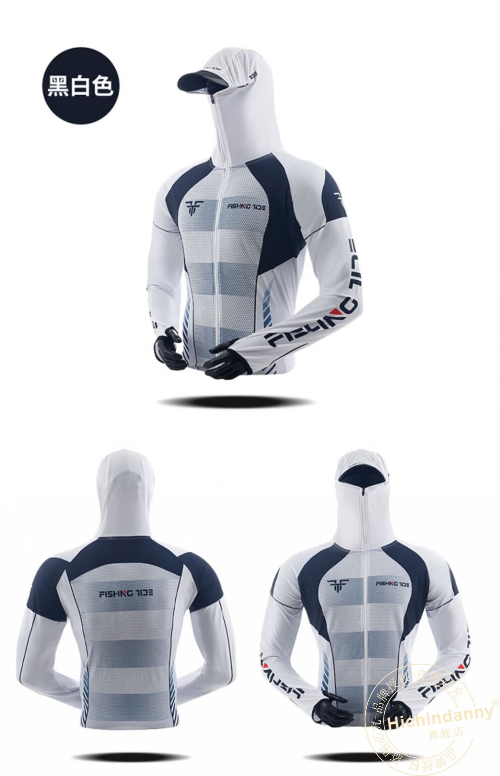 HICHIN DANNY fishing sun protection suit for men and women ice silk breathable quick-drying outdoor sports anti-mosquito suit fishing clothing black and white top S