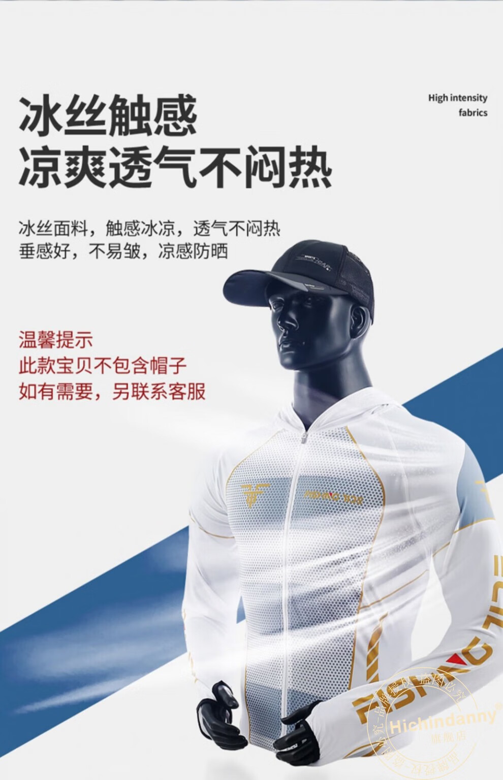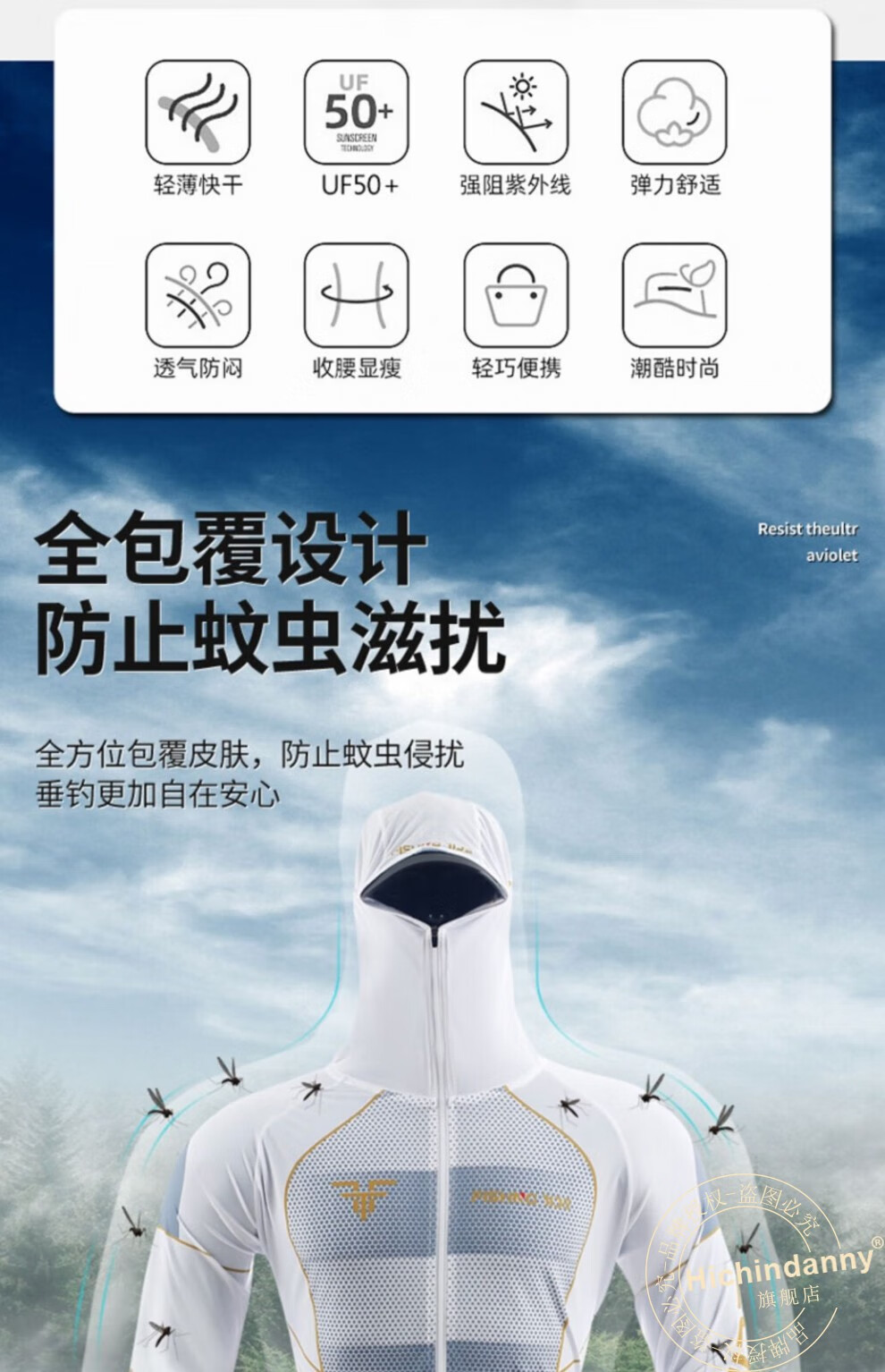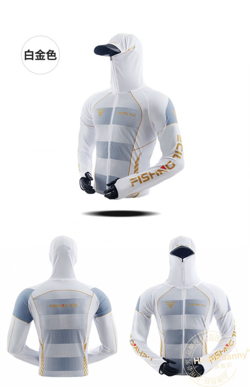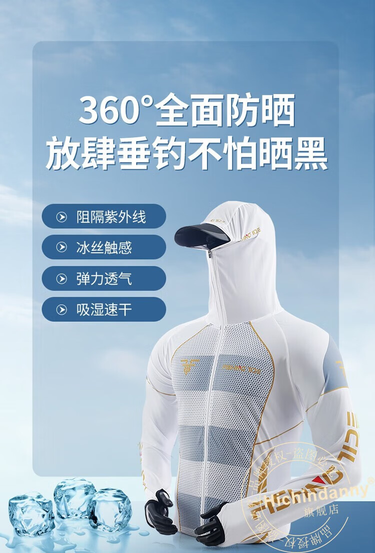HICHIN DANNY fishing sun protection suit for men and women ice silk breathable quick-drying outdoor sports anti-mosquito suit fishing clothing black and white top S
