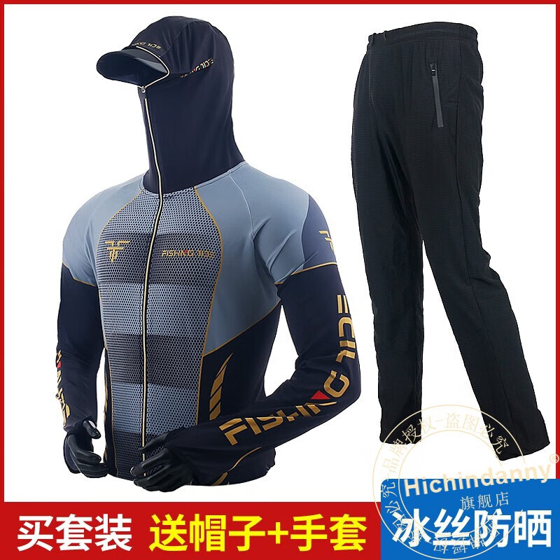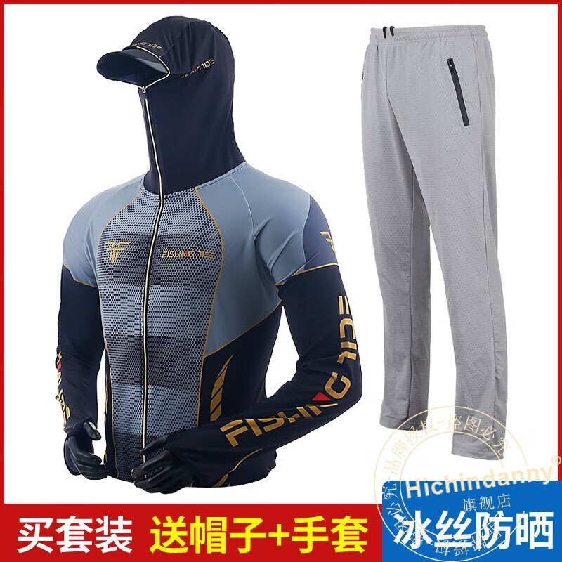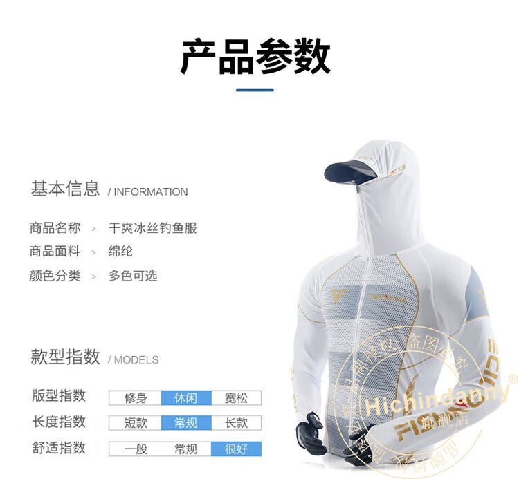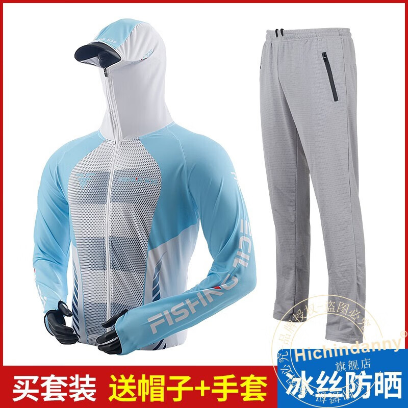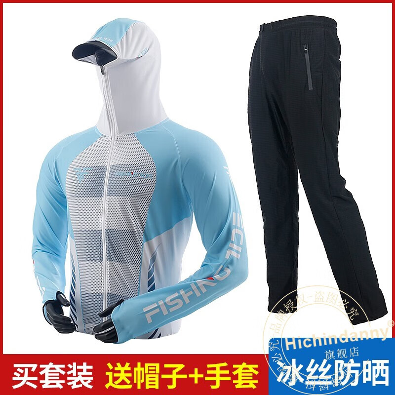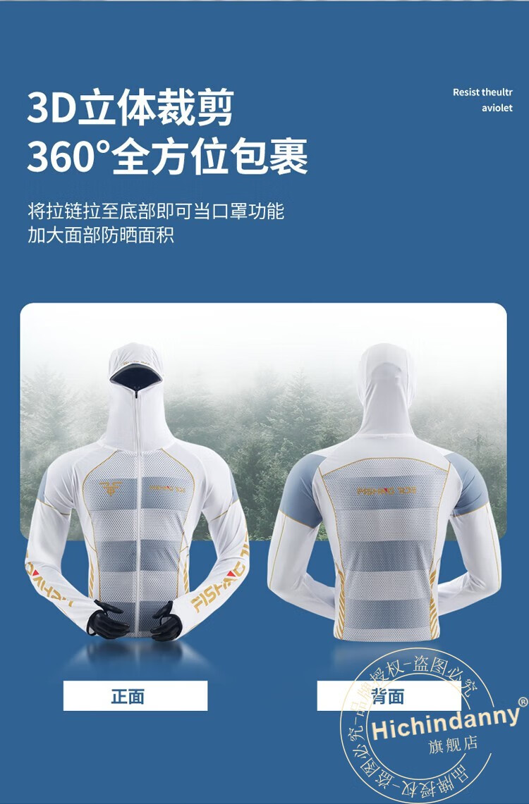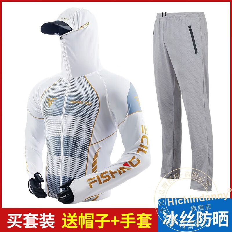 HICHIN DANNY fishing sun protection suit for men and women ice silk breathable quick-drying outdoor sports anti-mosquito suit fishing clothing black and white top S