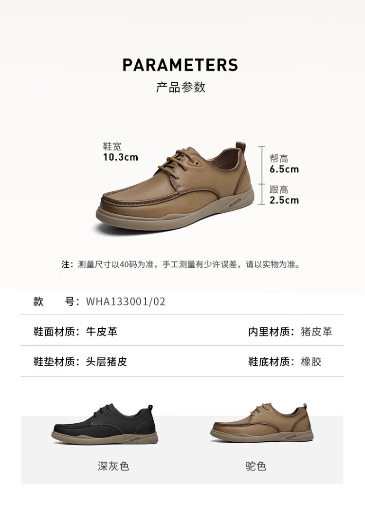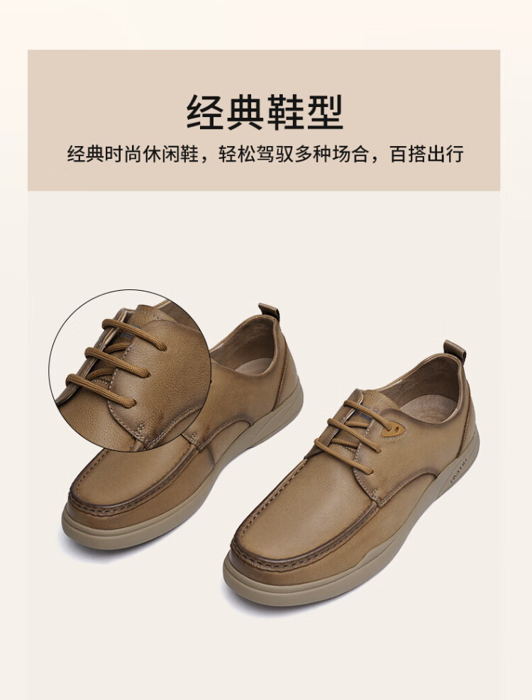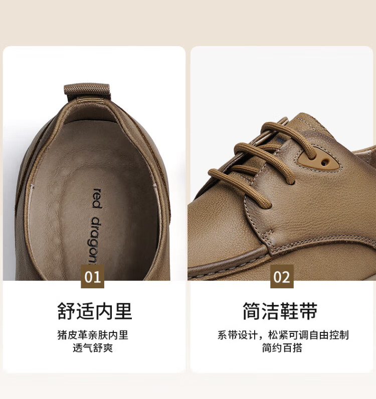 Red Dragonfly Men's Shoes New Fashion Business Casual Shoes Men's Low-top Workwear Style Commuting Men's Leather Shoes WHA13300 Camel 40