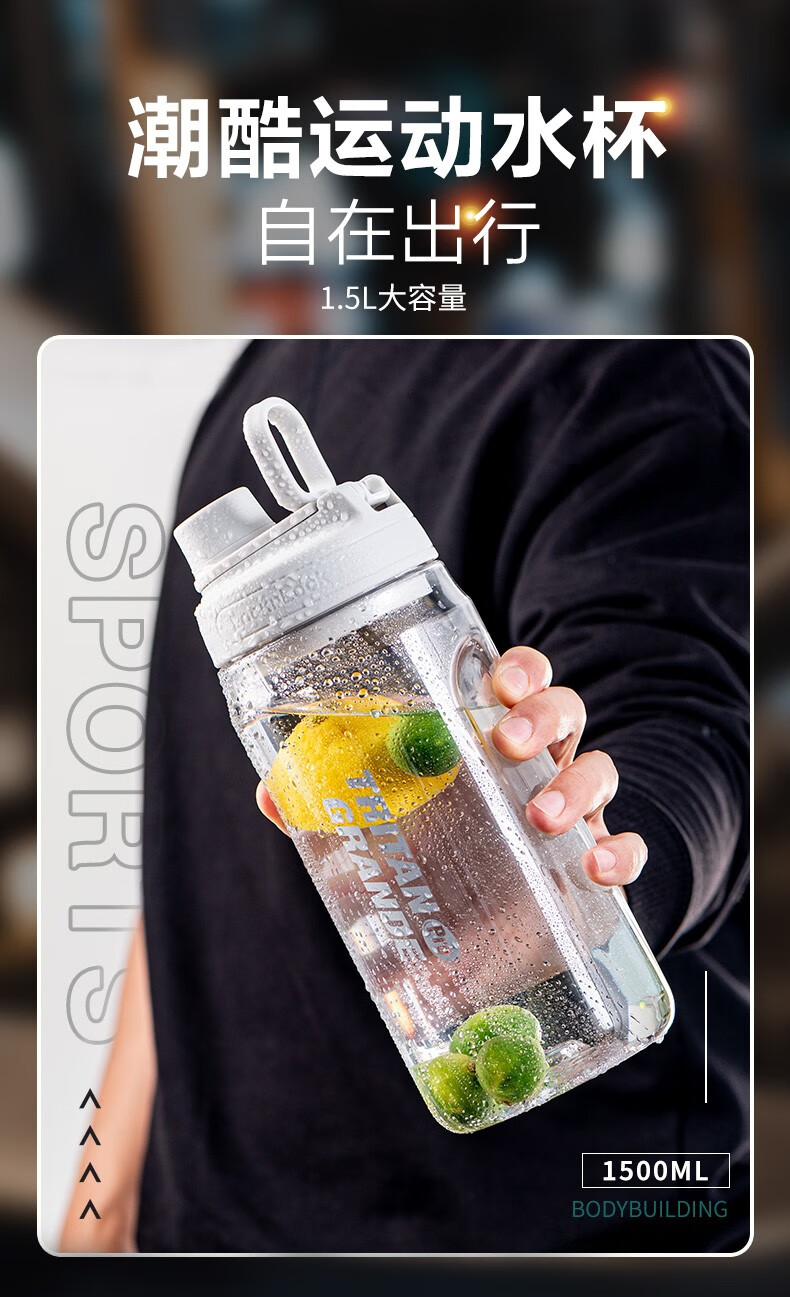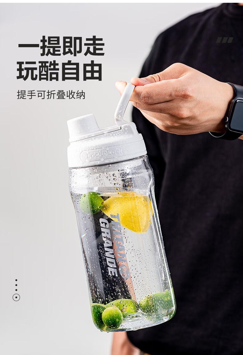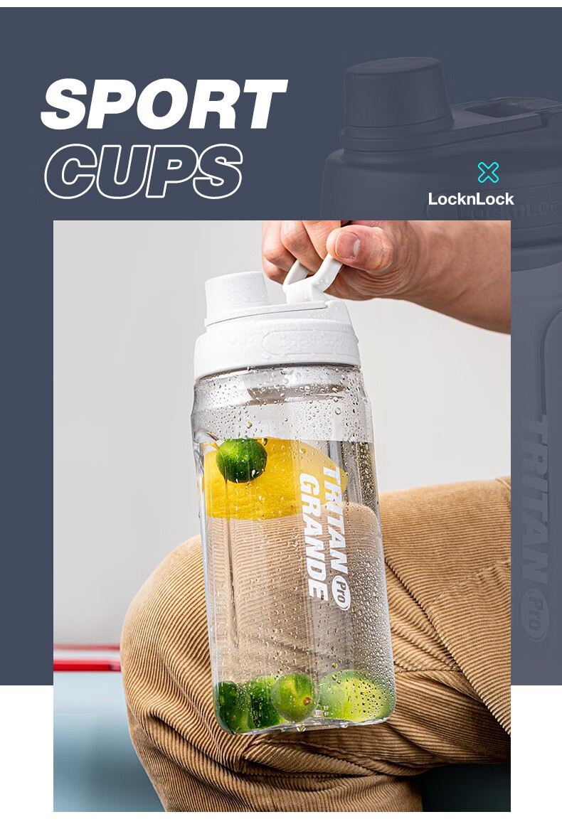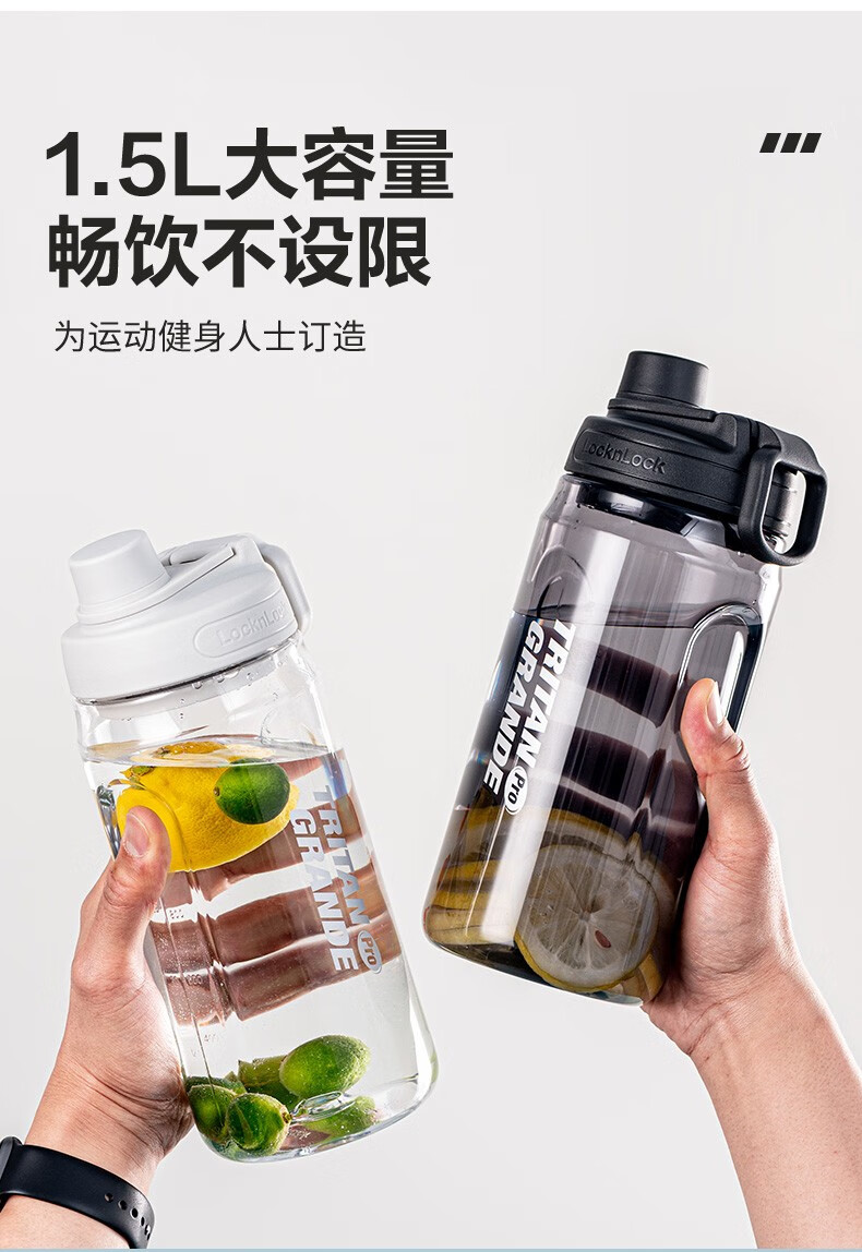Lock and Lock Plastic Cup Ton Bucket with Tea Water Barrier Large Capacity Fitness Outdoor Sports Water Bottle with Scale Portable Gray White - 1.5L