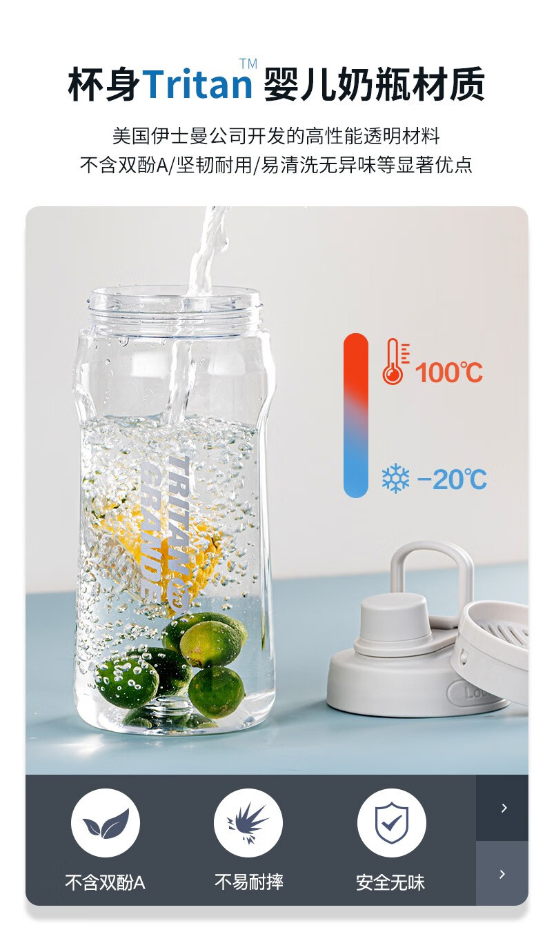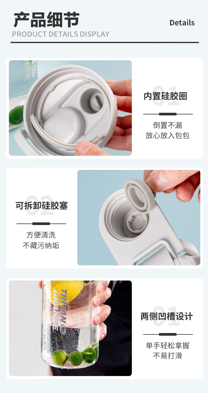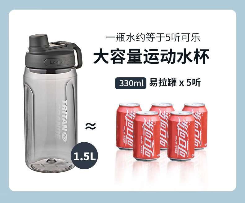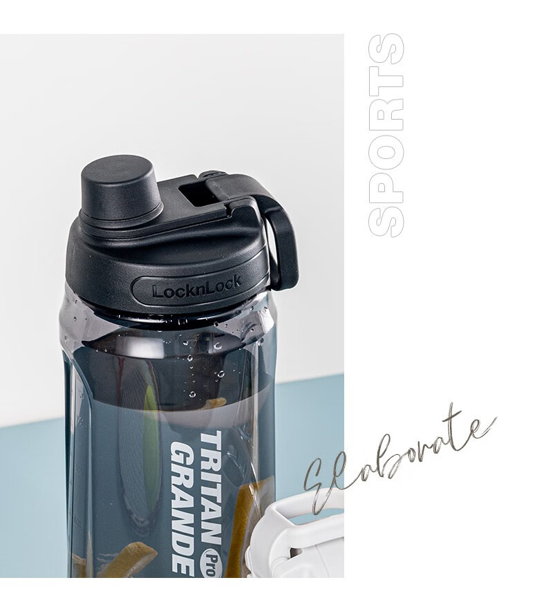 Lock and Lock Plastic Cup Ton Bucket with Tea Water Barrier Large Capacity Fitness Outdoor Sports Water Bottle with Scale Portable Gray White - 1.5L