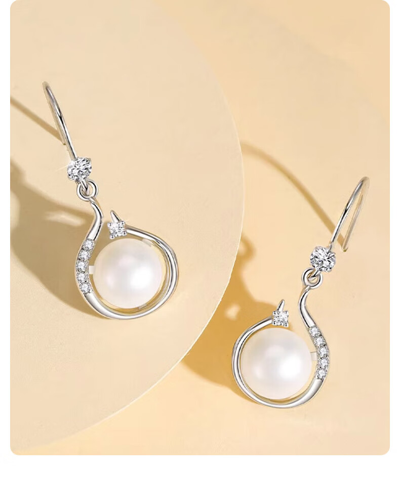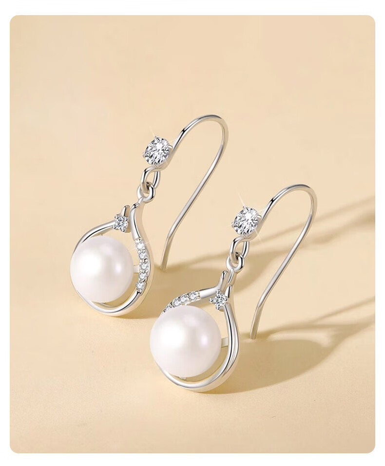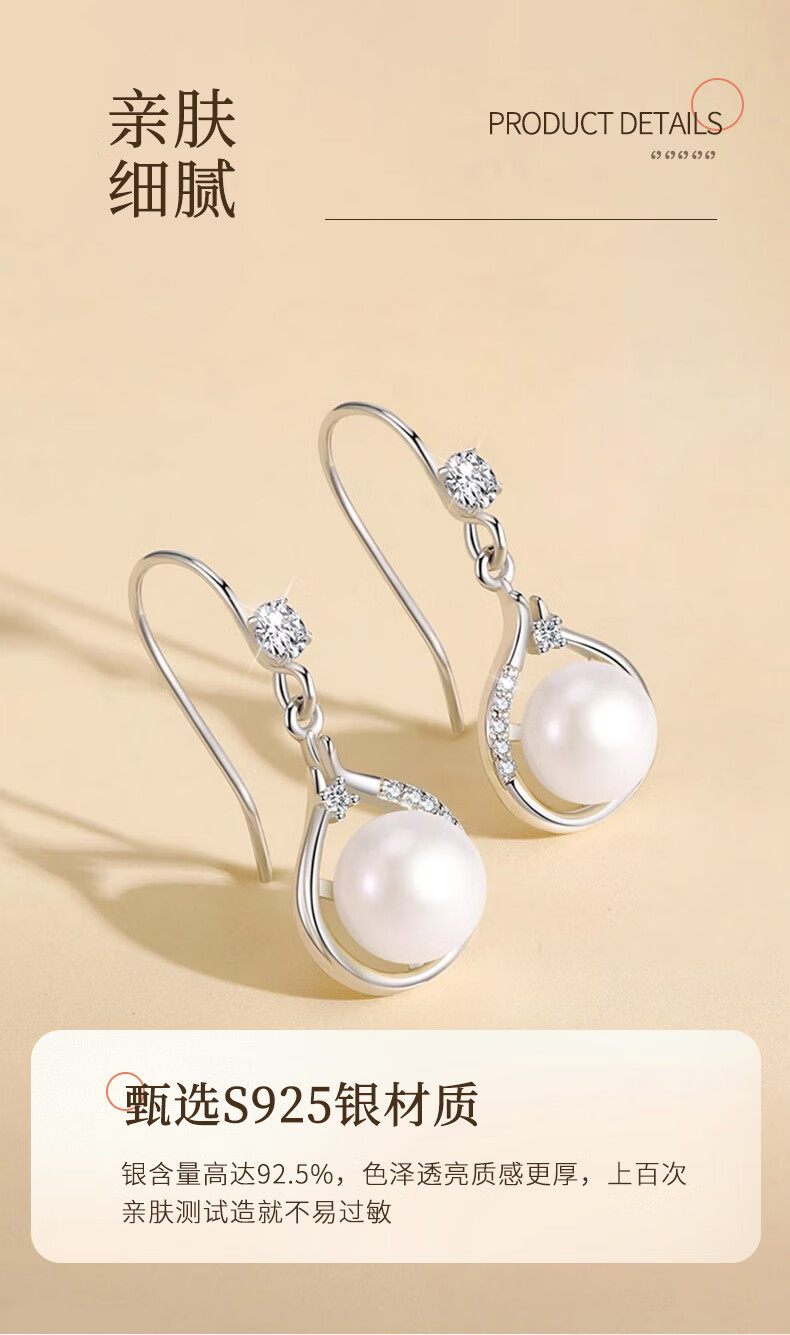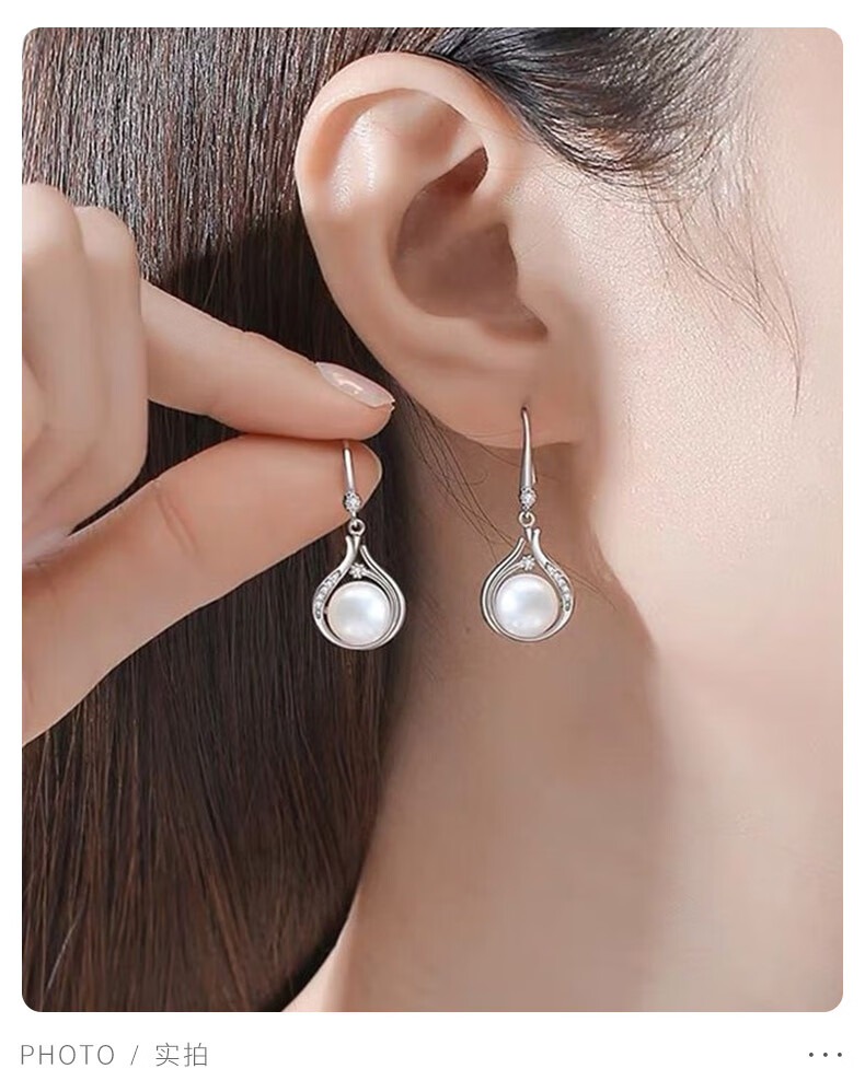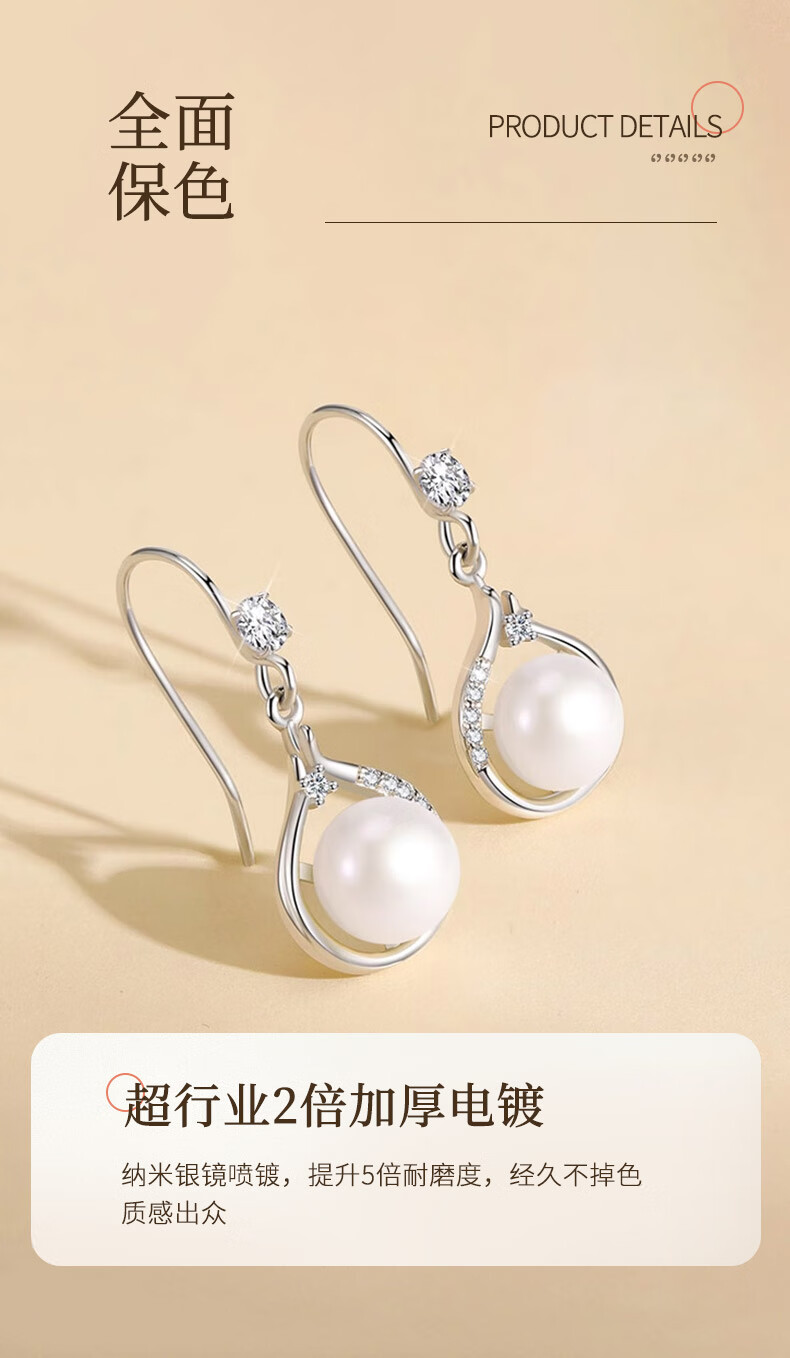CHINA GOLD 925 Silver Pearl Earrings for Women Light Luxury High-end Earrings Temperament Simple Earrings Wedding and Birthday Gifts for Girlfriends Jingsuda* Pearl Earrings 925 Silver