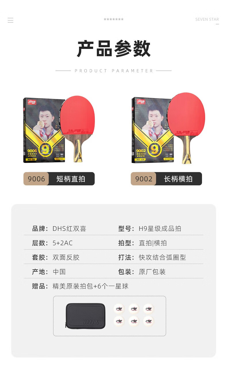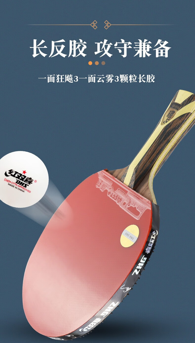 Double Happiness (DHS) Red Double Happiness 789 Stars Long Reverse Adhesive Table Tennis Racket Particles Long Reverse Adhesive Professional Rotating Table Tennis Racket Hair Shunfeng Fast Break Rotating Long Reverse Adhesive H9003 Single Shot Sends 6 Balls