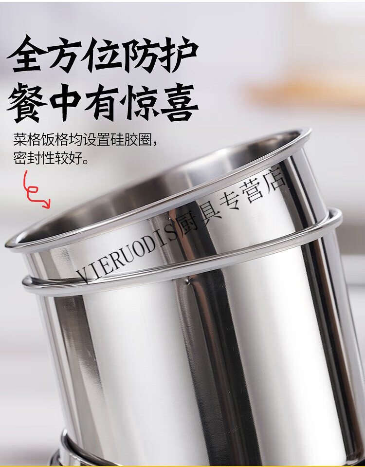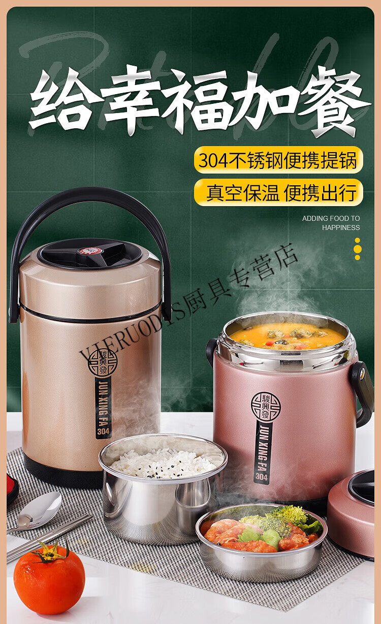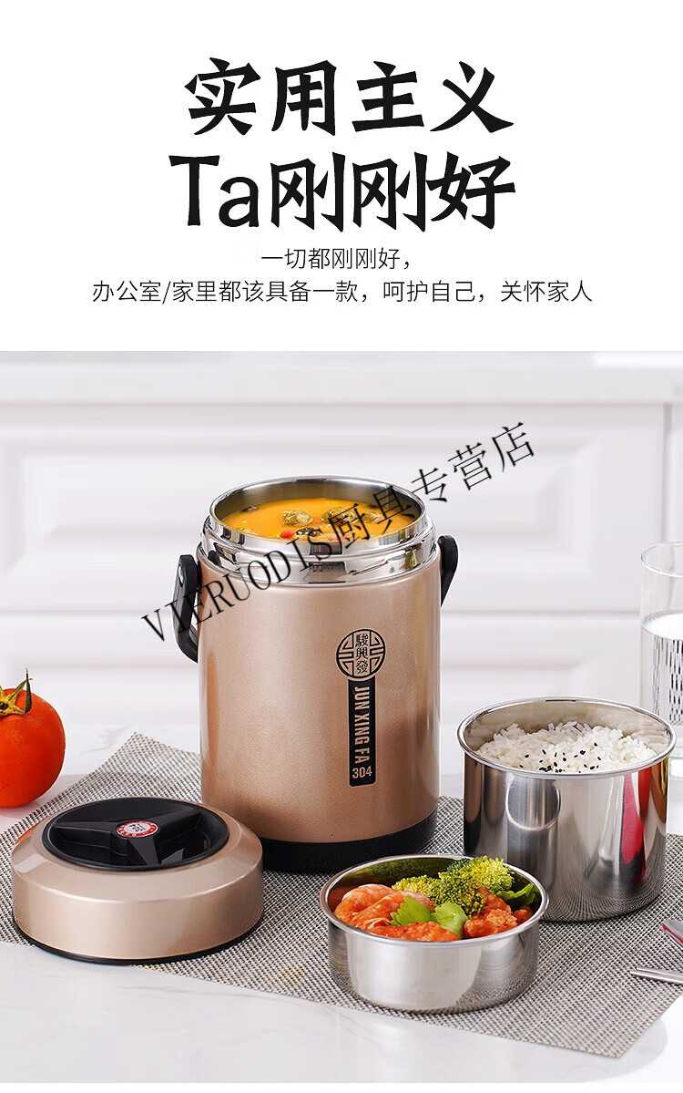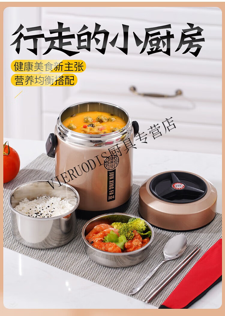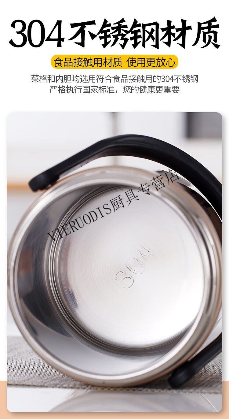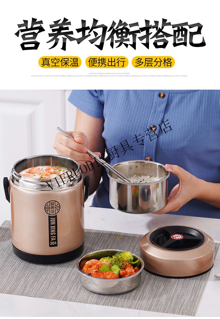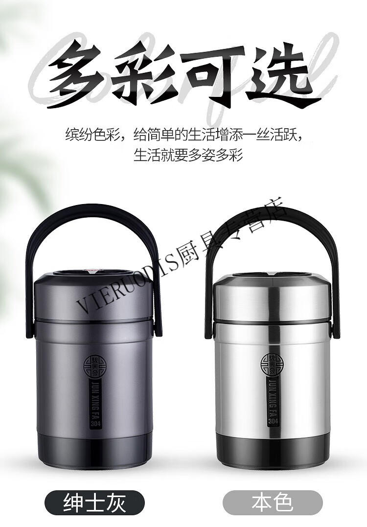 VIERUODIS Germany imported quality 304 stainless steel vacuum insulation box for students and office workers to bring rice, large capacity and extra long 12/24 steel color two layers 304 Collection + 1.2L