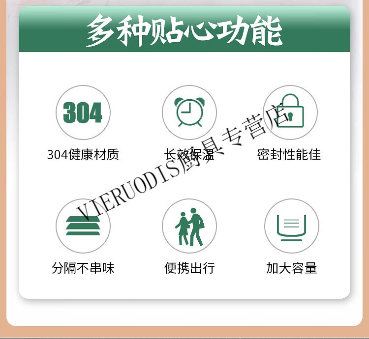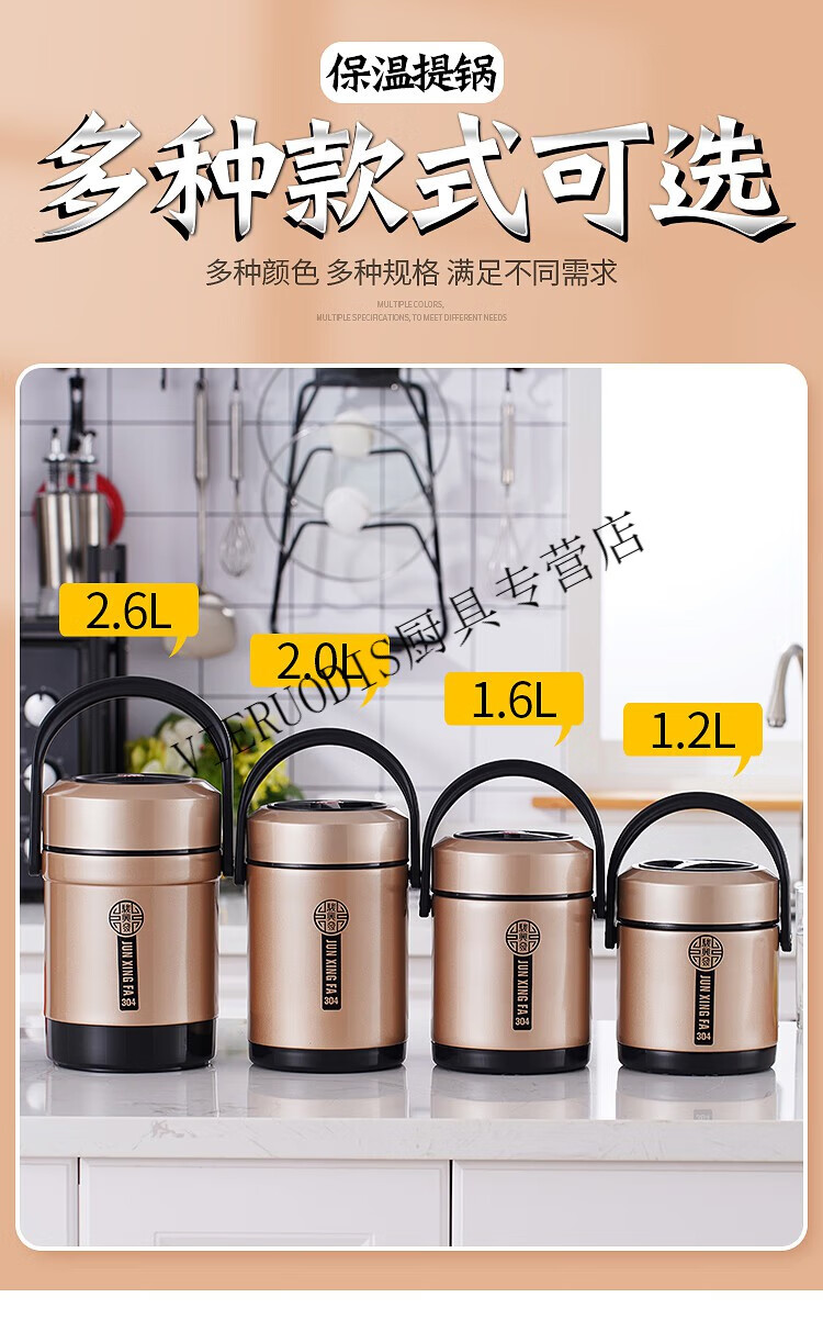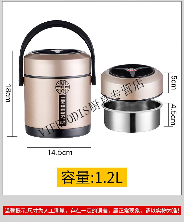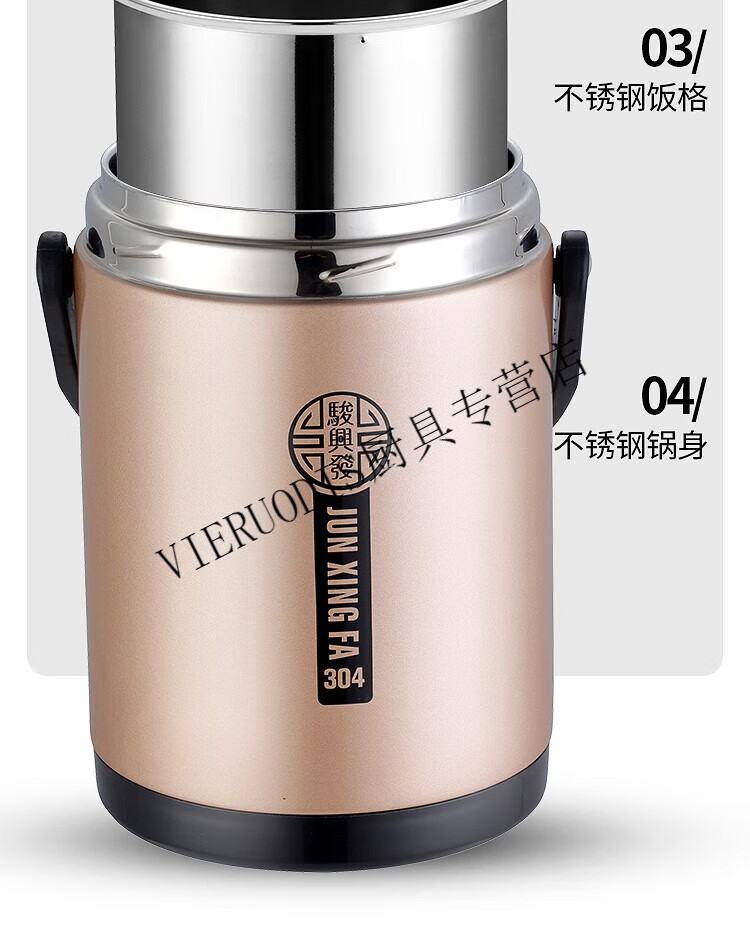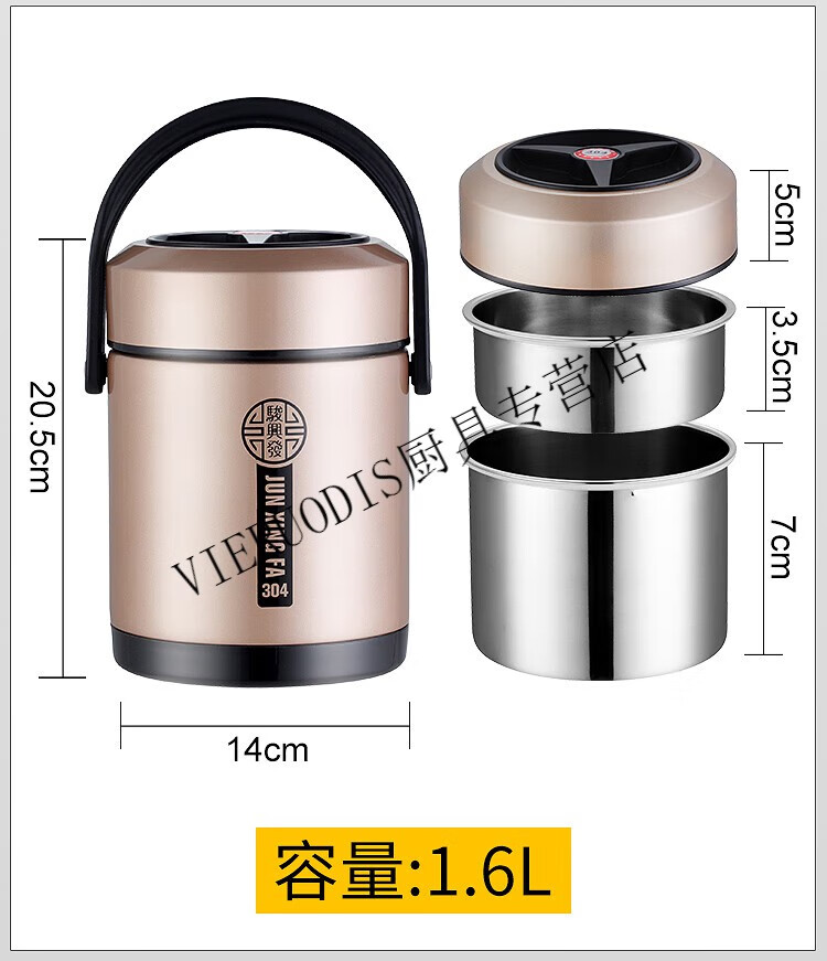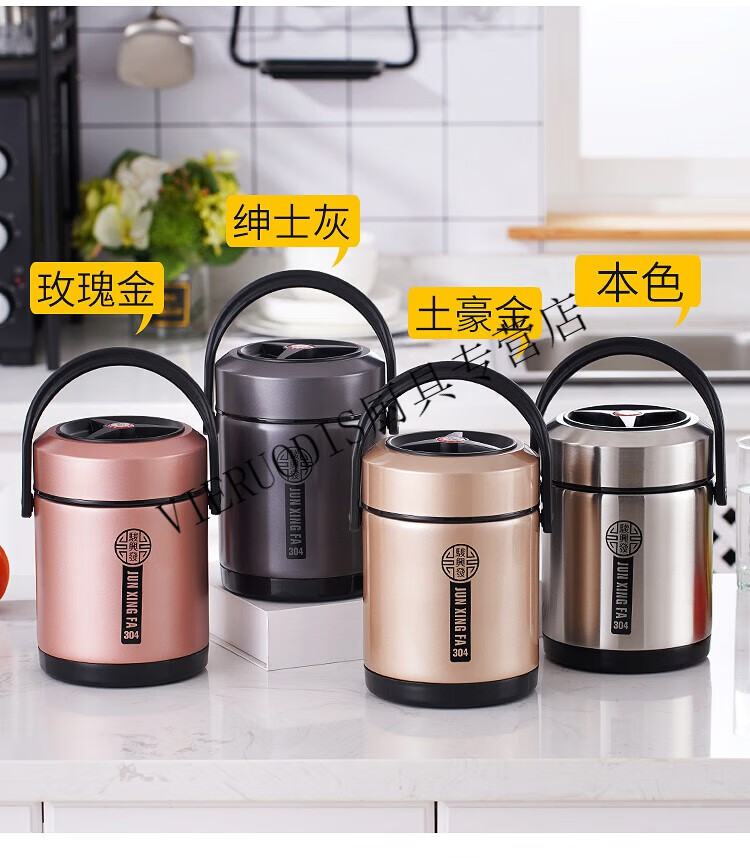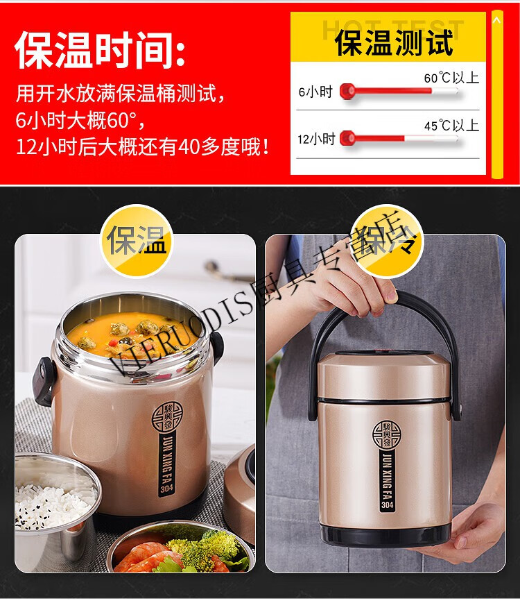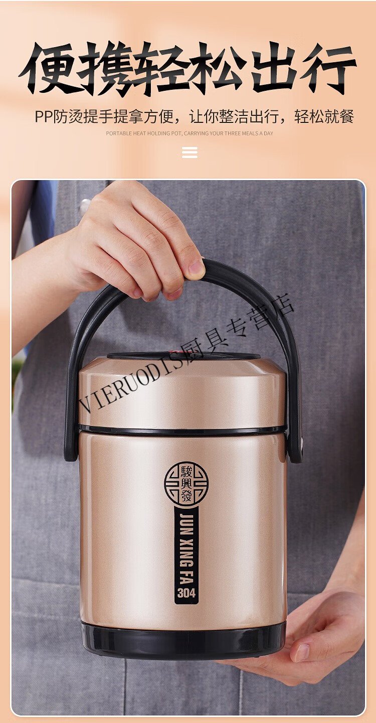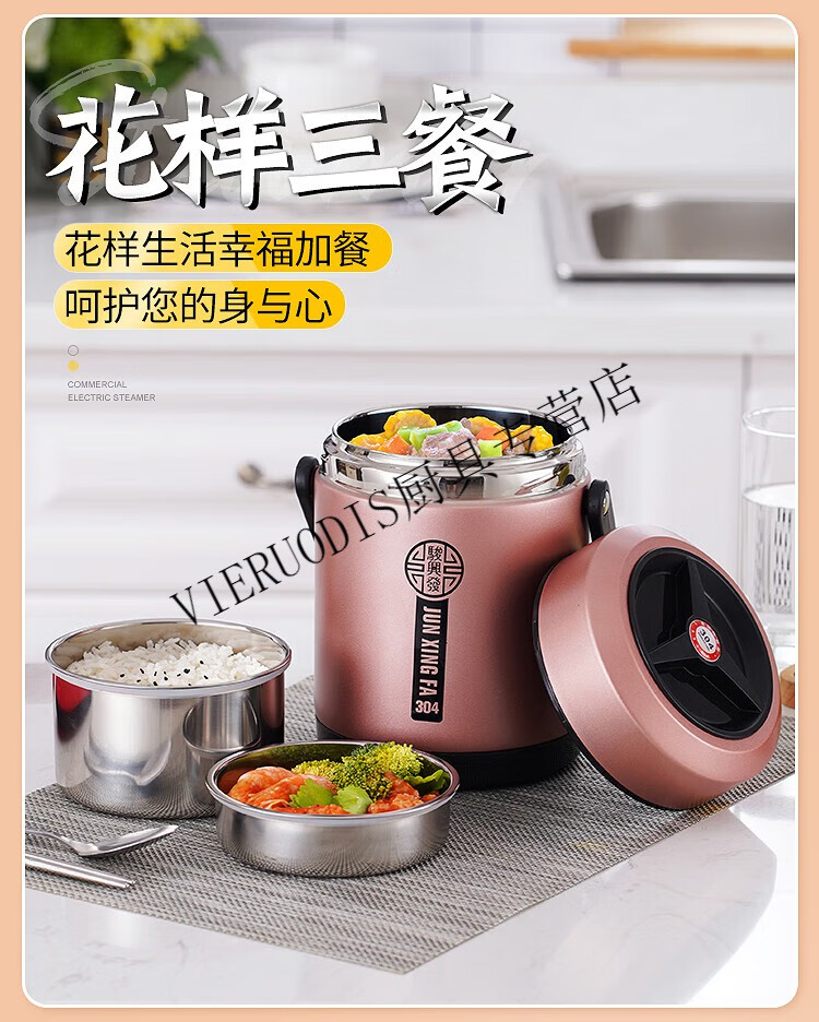 VIERUODIS Germany imported quality 304 stainless steel vacuum insulation box for students and office workers to bring rice, large capacity and extra long 12/24 steel color two layers 304 Collection + 1.2L
