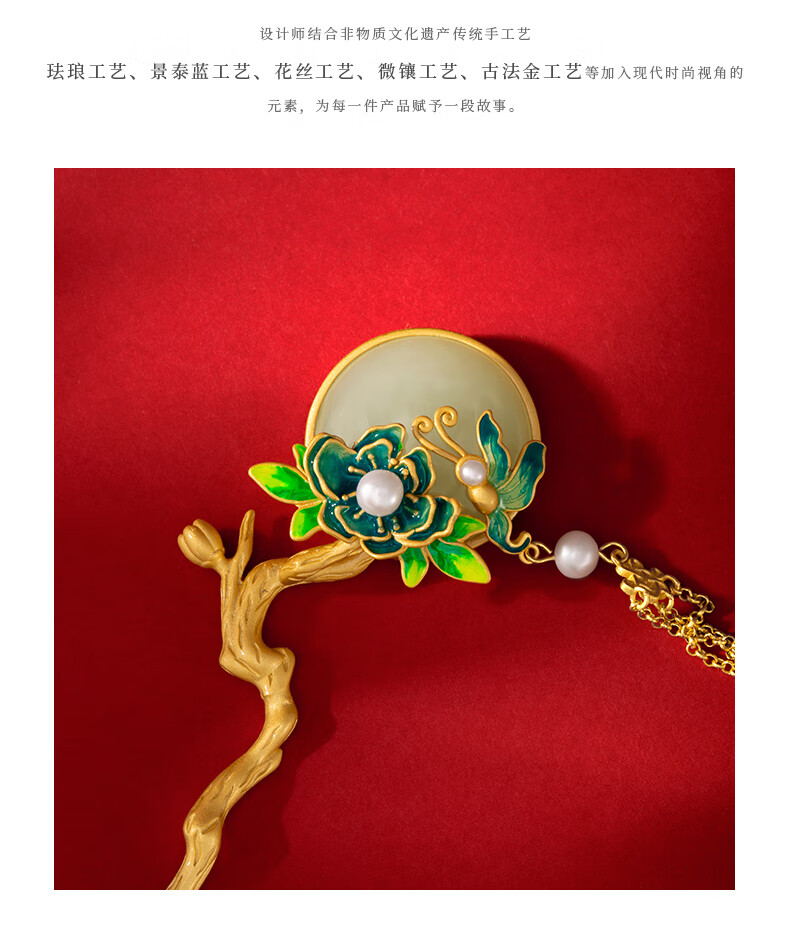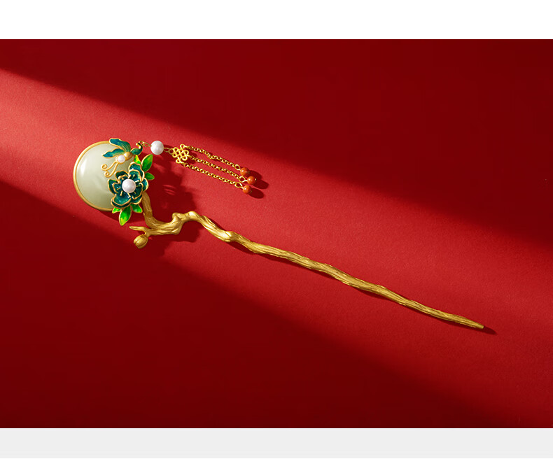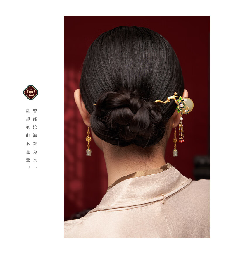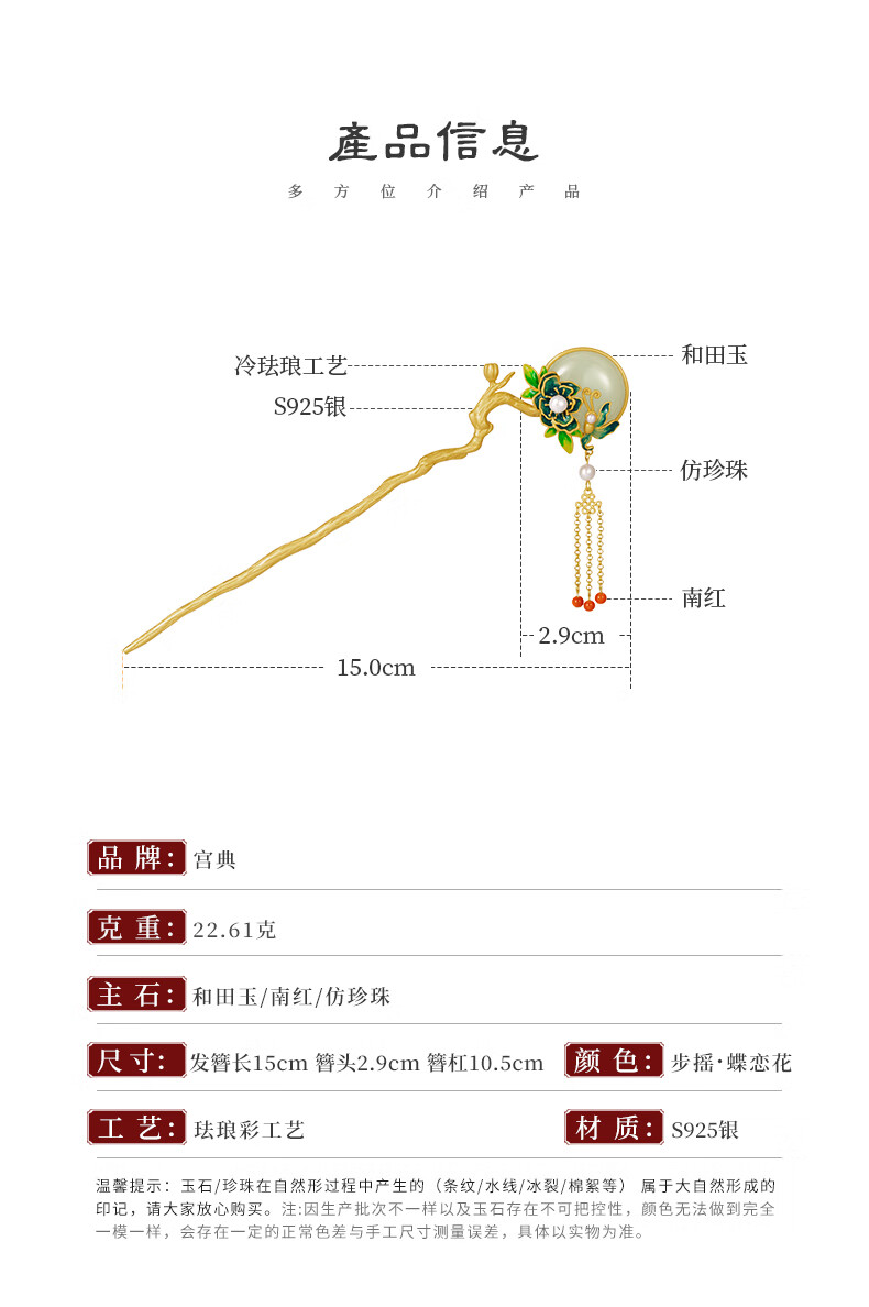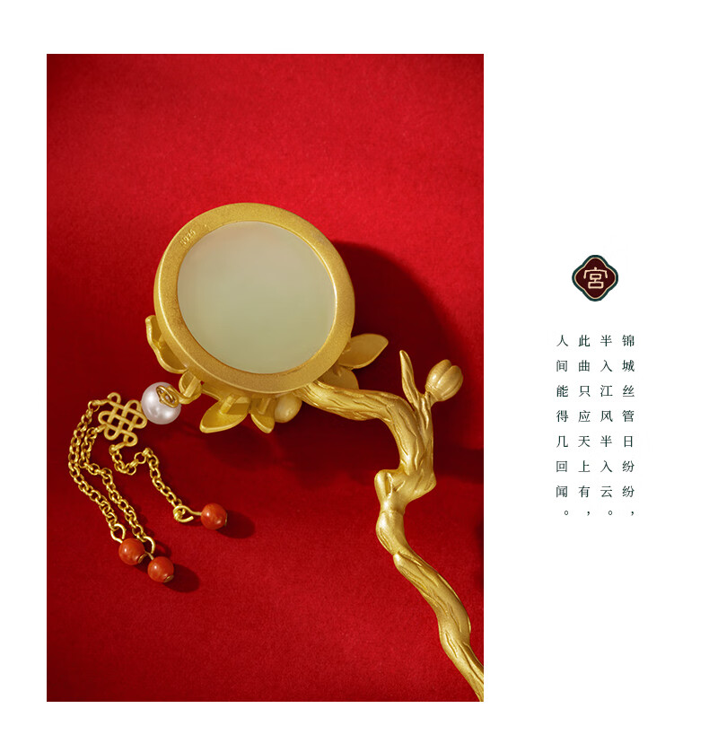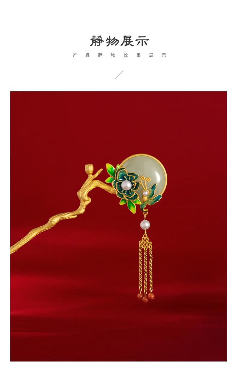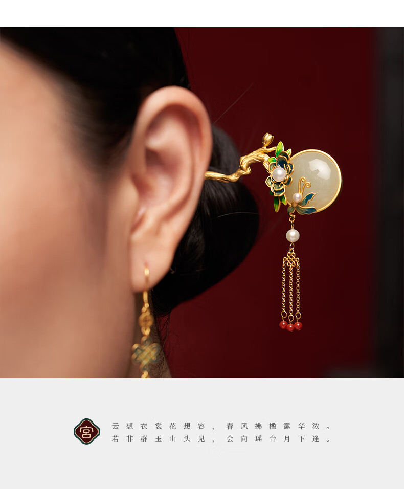 Gong Dian's Chinese-style step-shaping hairpin and field jade 925 silver gold-plated hairpin with tassels are high-end hairpins for family members. Buyao Dielianhua