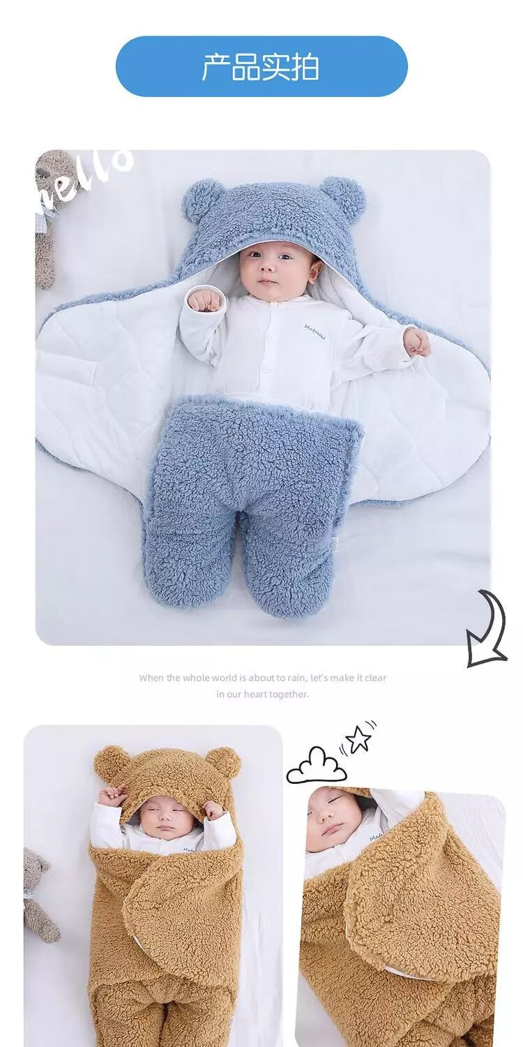 Disney (Disney) baby blanket newborn autumn and winter thickened blanket newborn baby anti-jump swaddle 0-3-6 months supplies blue-round legs Shu velvet size 6 suitable for 0-3 months