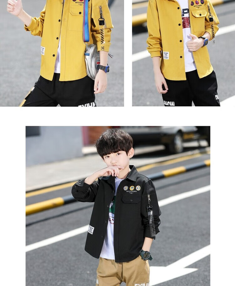 G.duck brand children's clothing boys' spring and autumn casual shirts 2023 new style medium and large children's long-sleeved handsome shirts trendy yellow 140