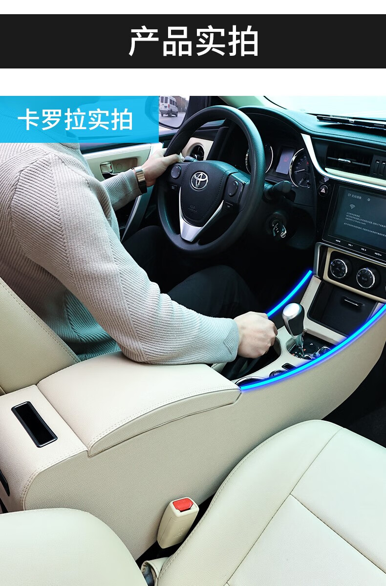 Hansong Toyota Corolla armrest box modification parts special 14-23 channel accessories 19 double engine Leiling armrest box 14-18 Corolla top accessories black colorful atmosphere