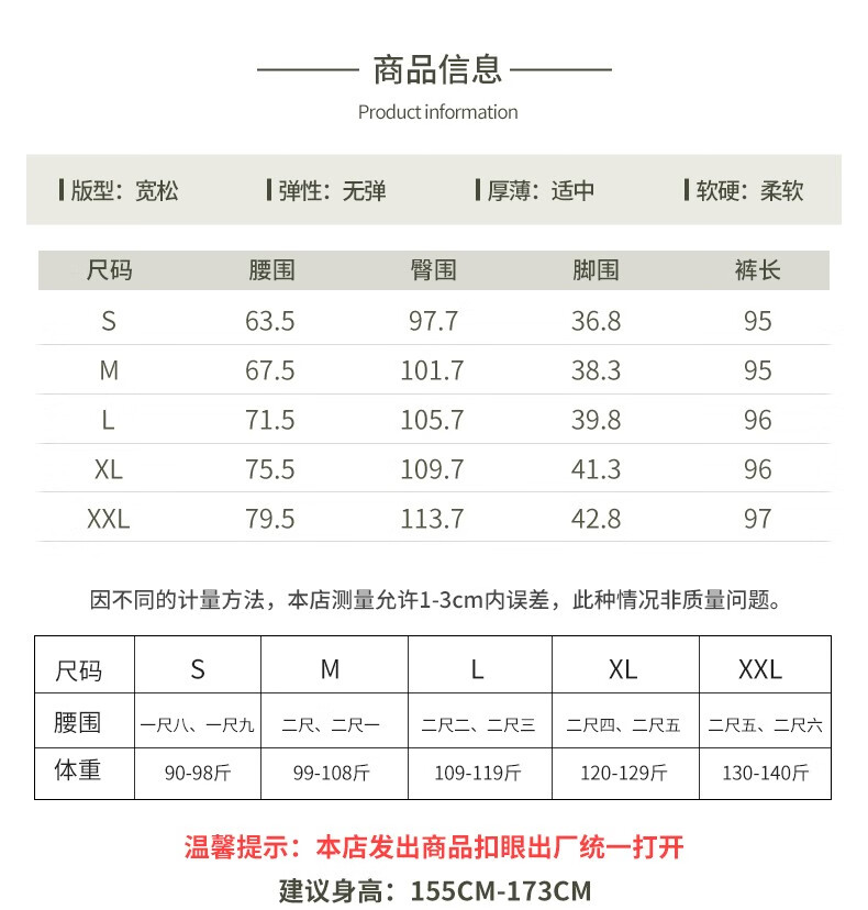 Outseam (cm) 99 cm 101.5 cm 104 cm 106.5 cm 109 cm