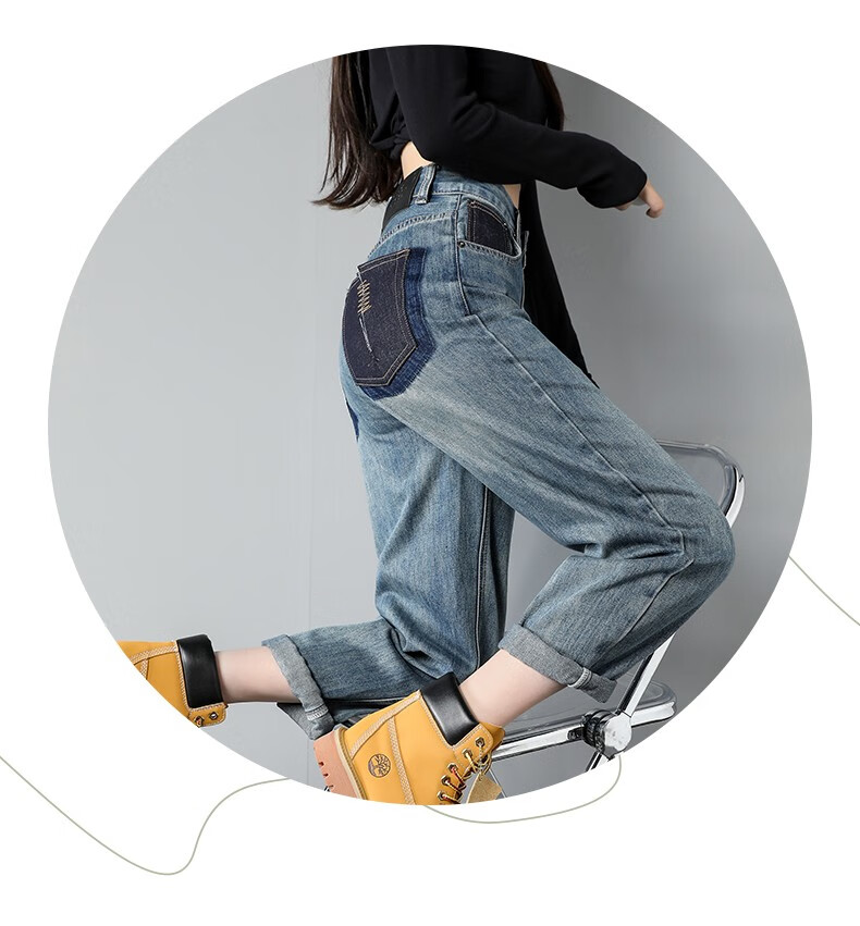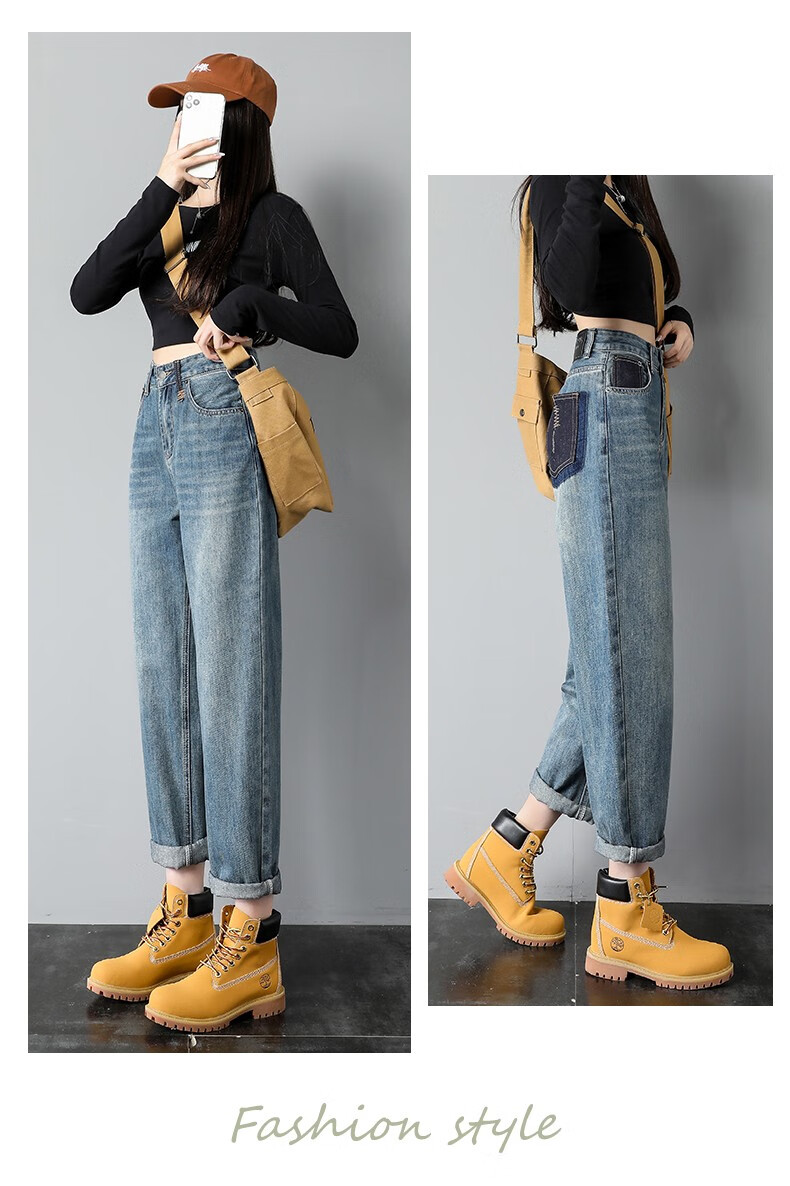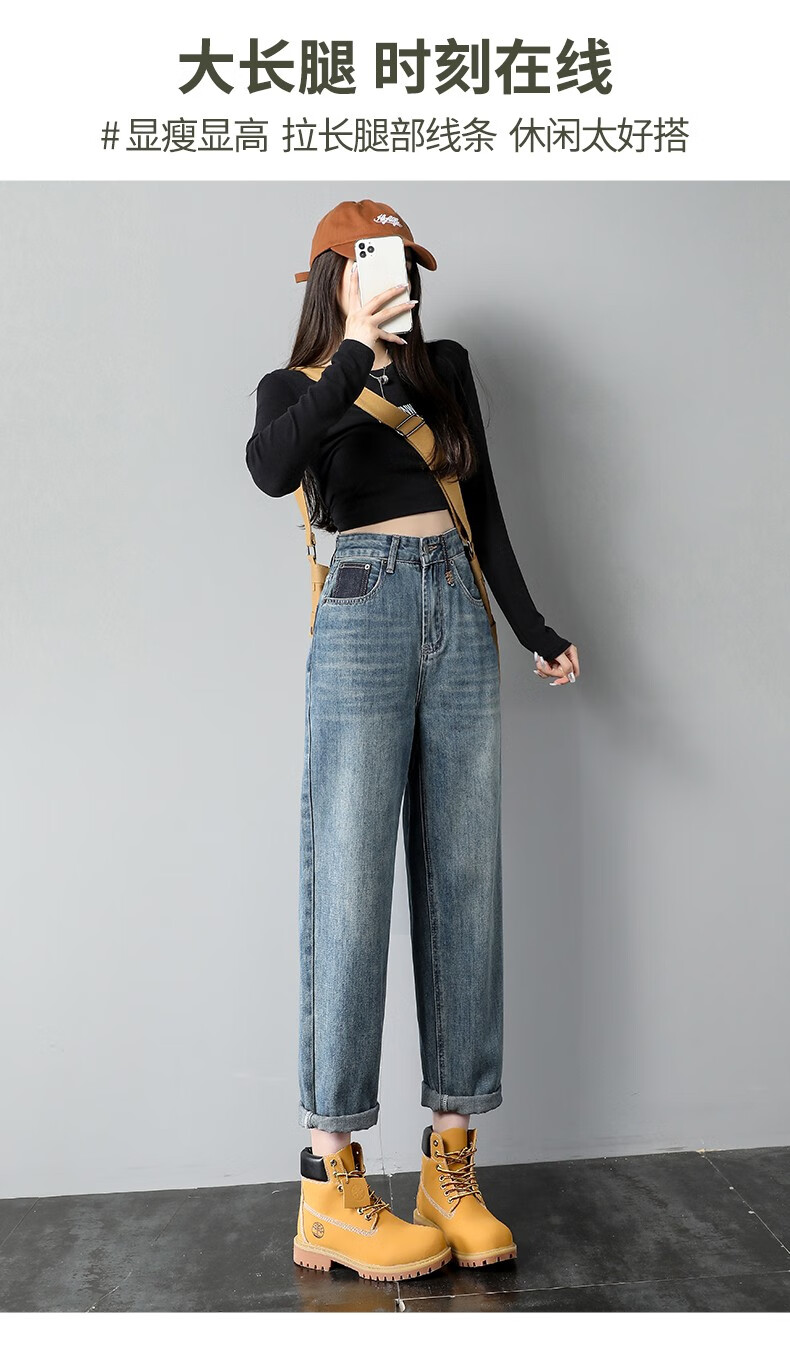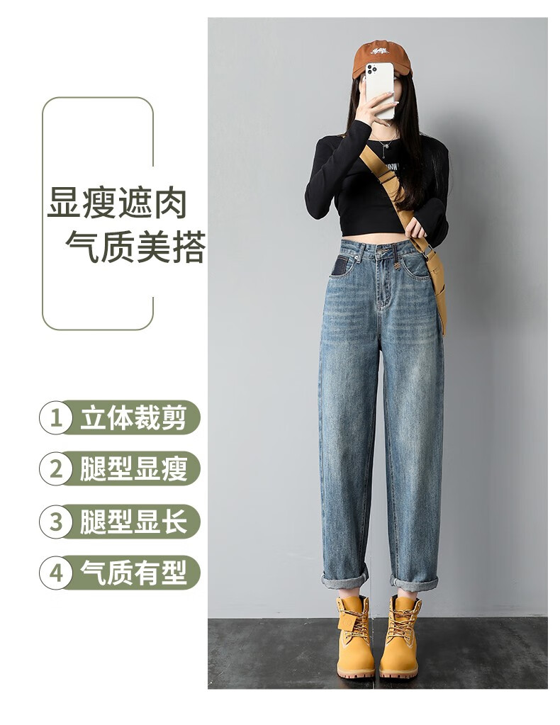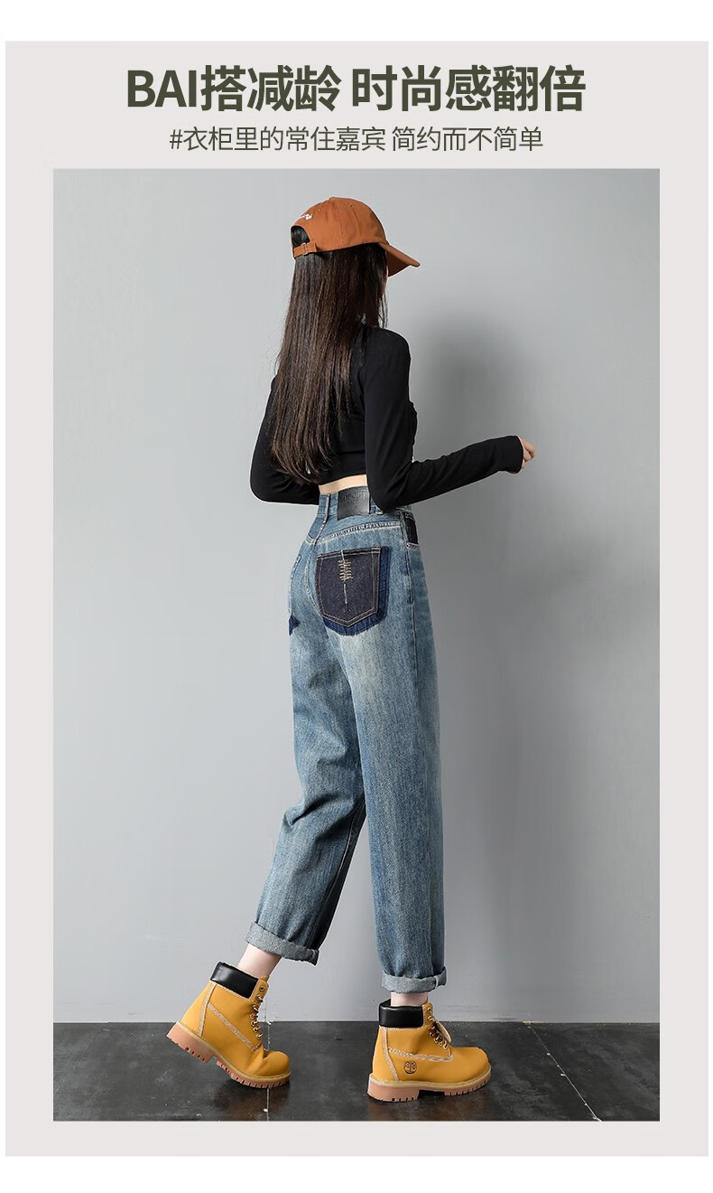 Mad Cortes trendy brand design high-waisted harem jeans for women 2025 spring loose straight slim versatile carrot daddy pants picture color M