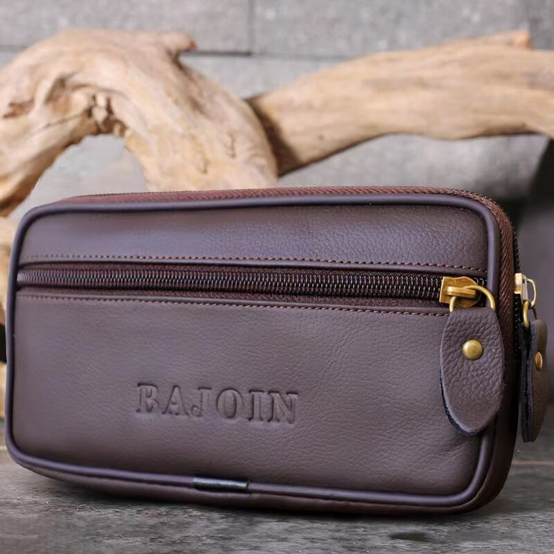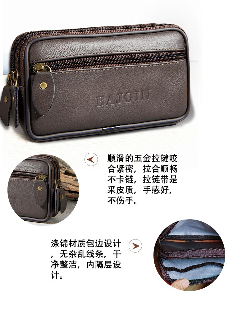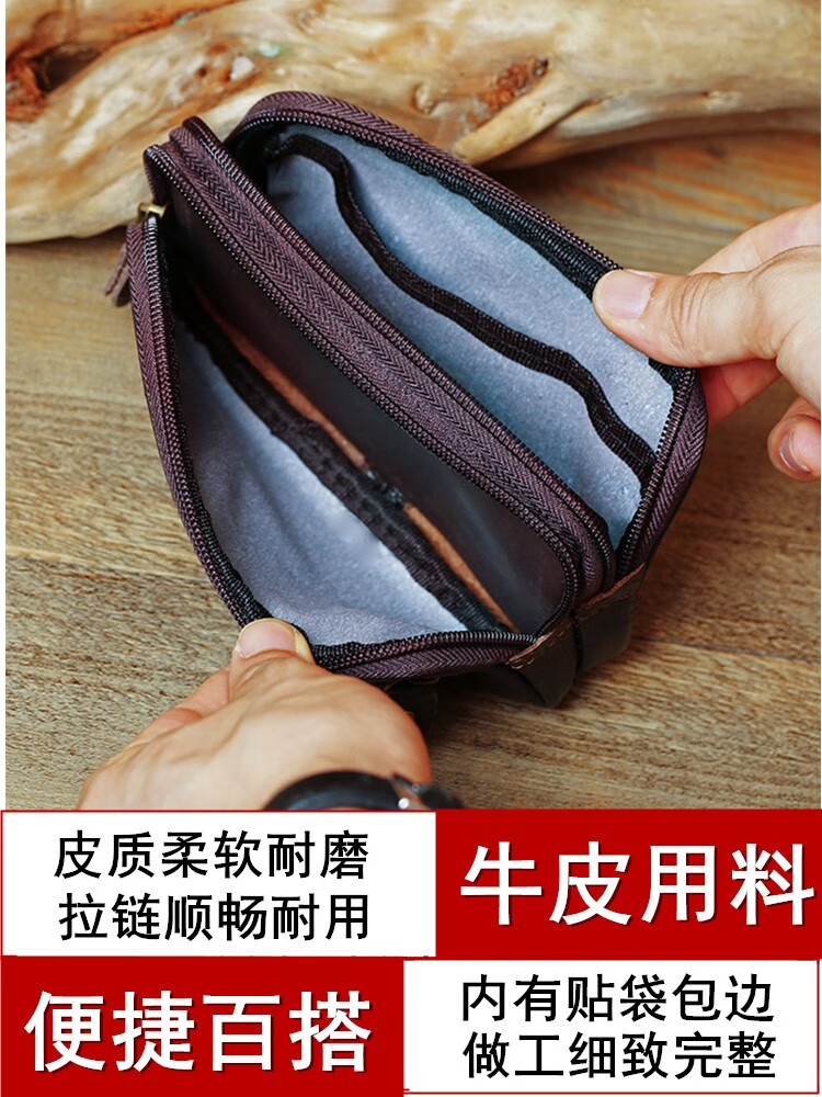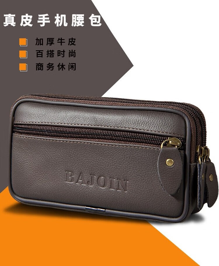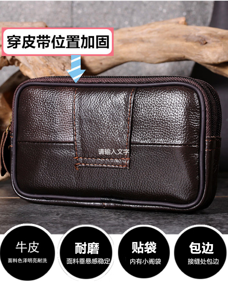 Junzi Taotao cowhide mobile phone waist bag men's construction site mobile phone bag horizontal style work belt mobile phone bag for men two layers of brown (can accommodate 18 cm long)