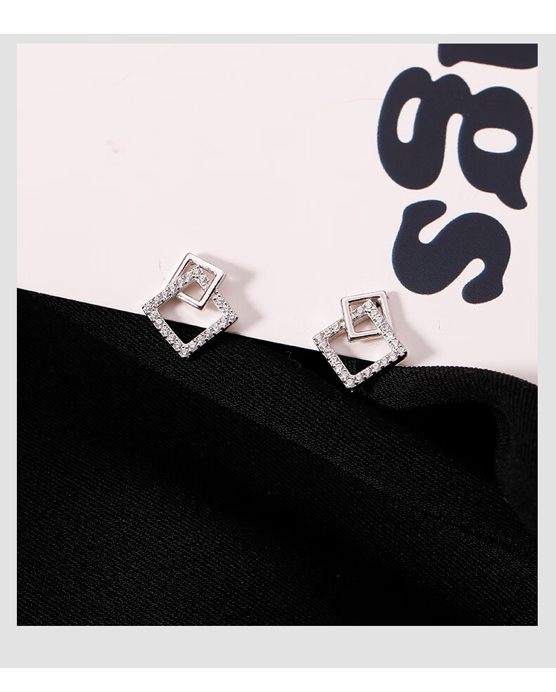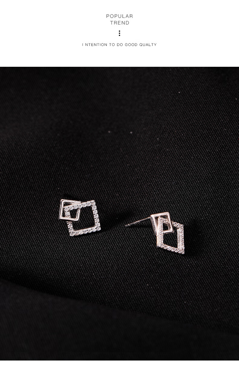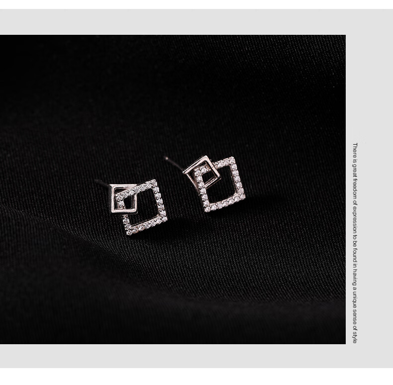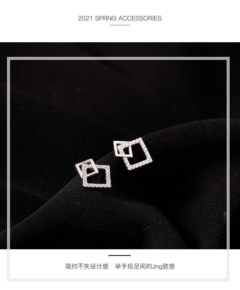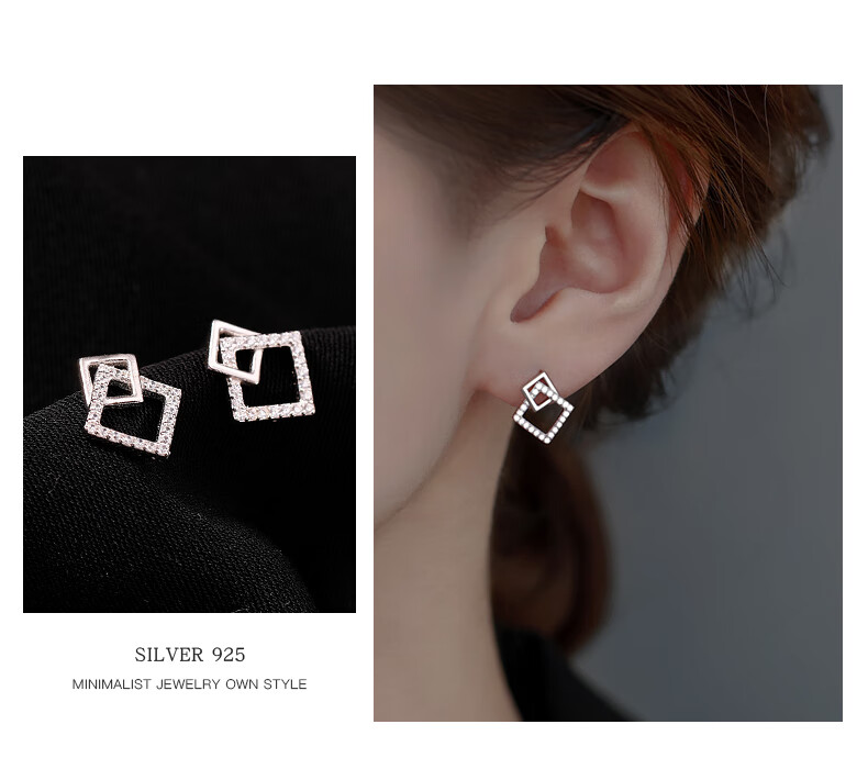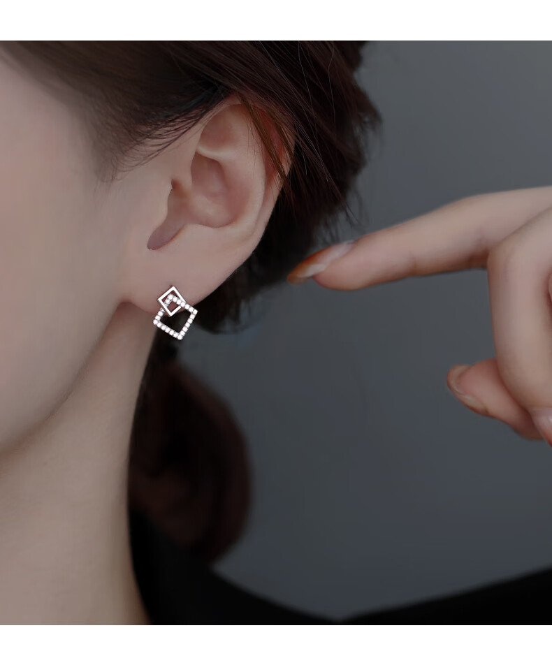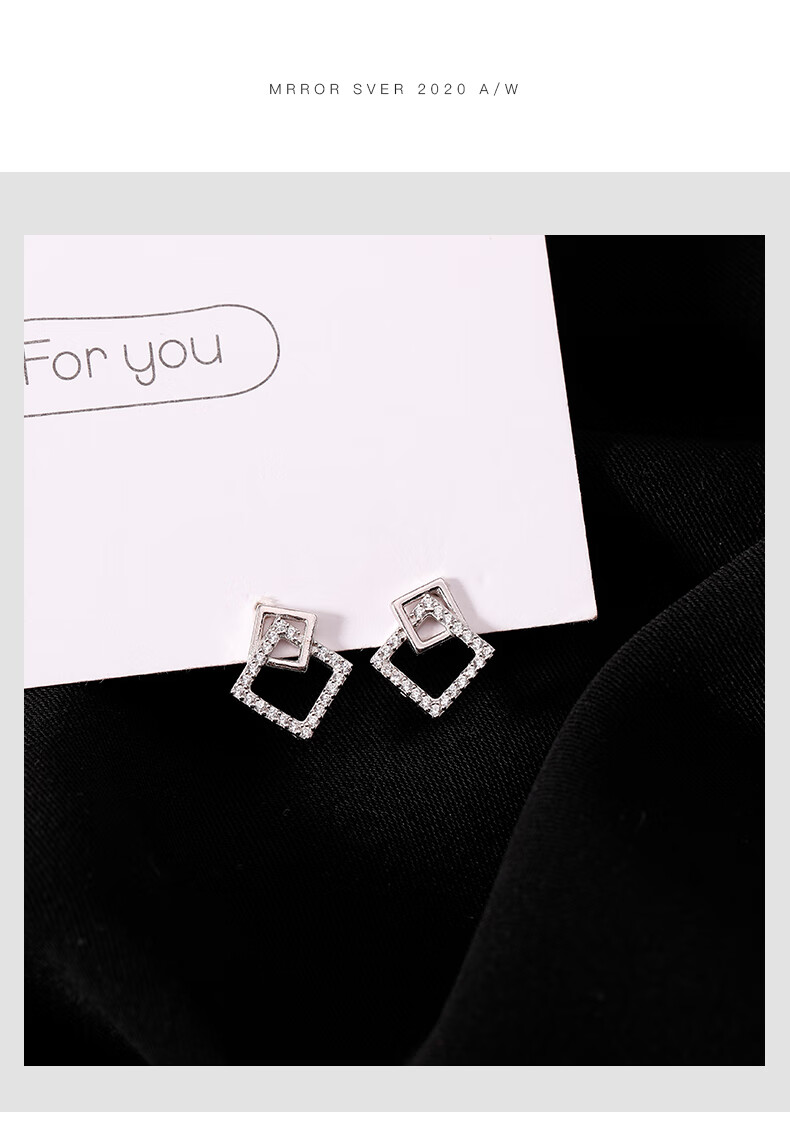 Yinao (yinao) 925 sterling silver earrings for women autumn and winter 2025 new fashion earrings light luxury earrings niche design high-end earrings geometric square nails
