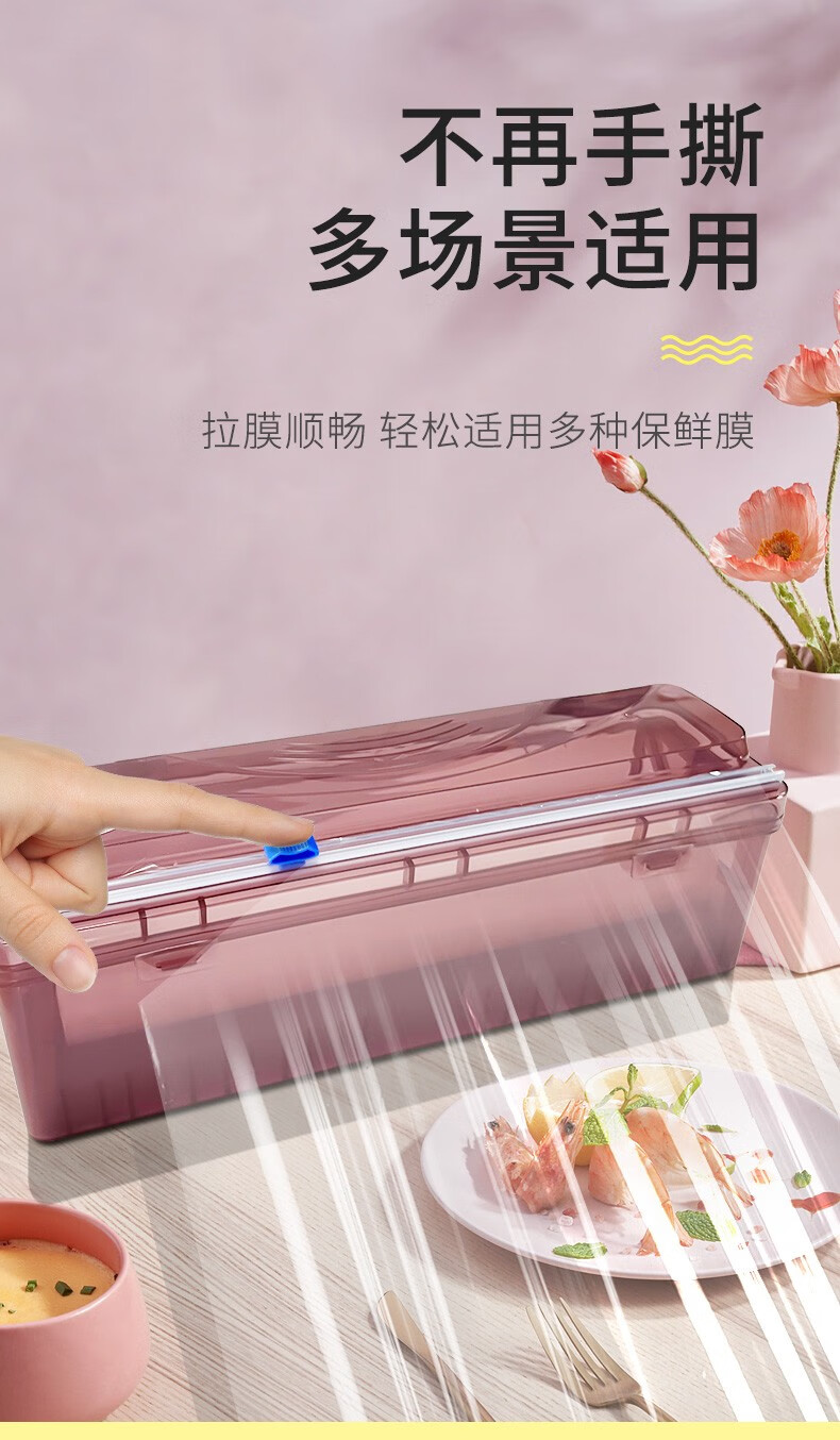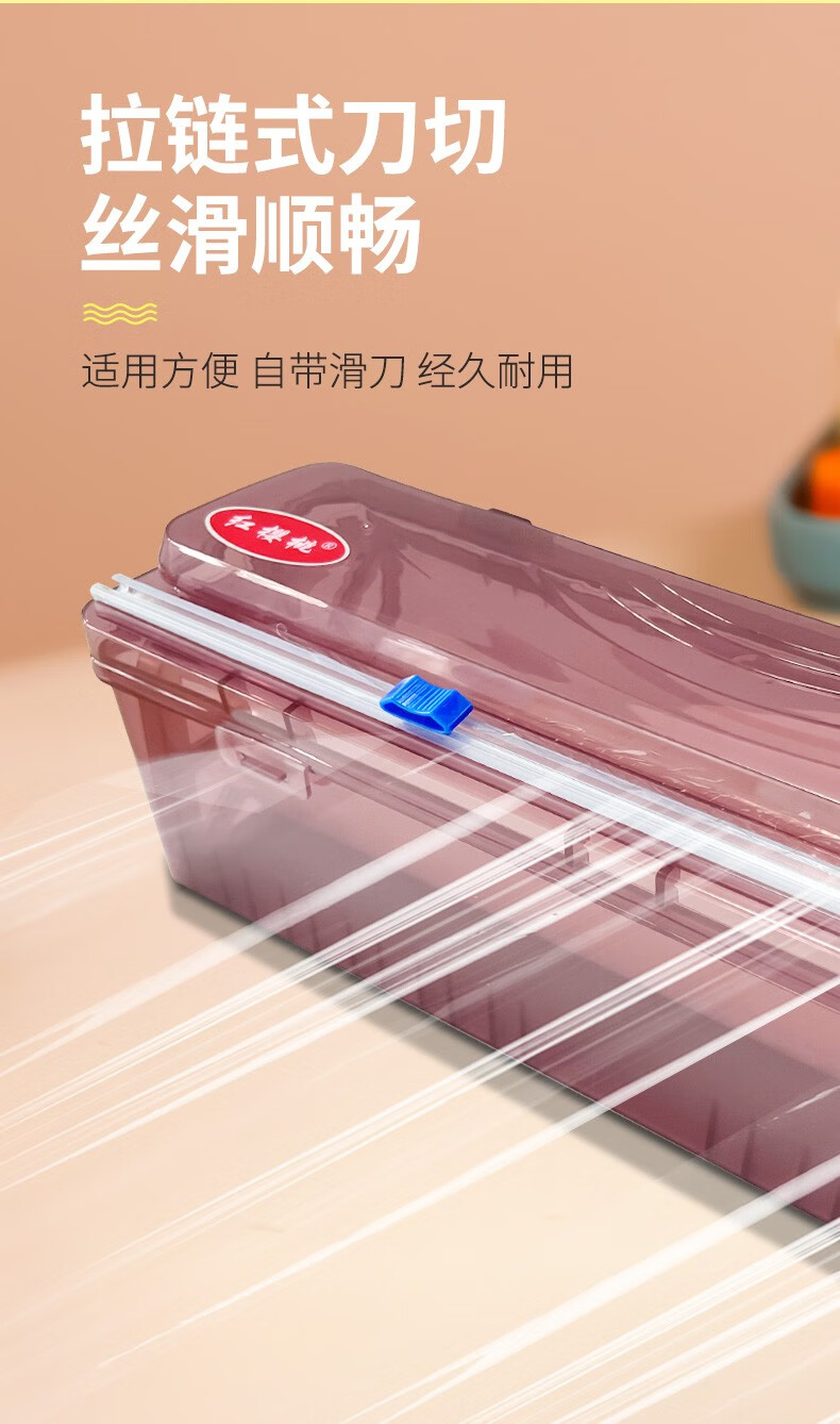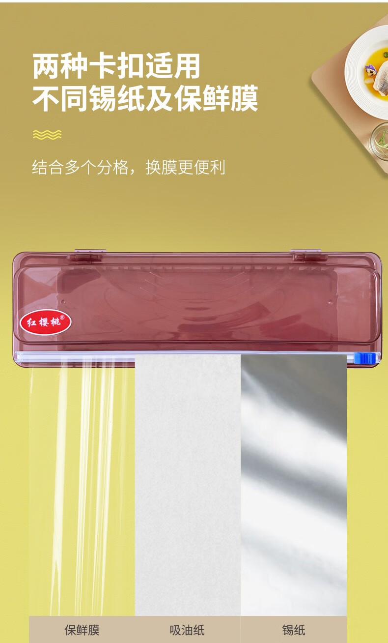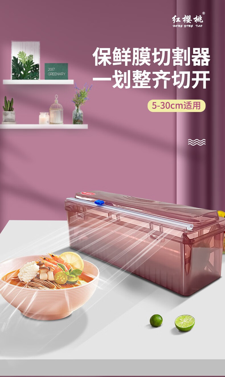 Red cherry cling film cutter food grade PE kitchen household set large roll special box cover commercial high temperature resistant tear-free edible 30cmx300m cling film