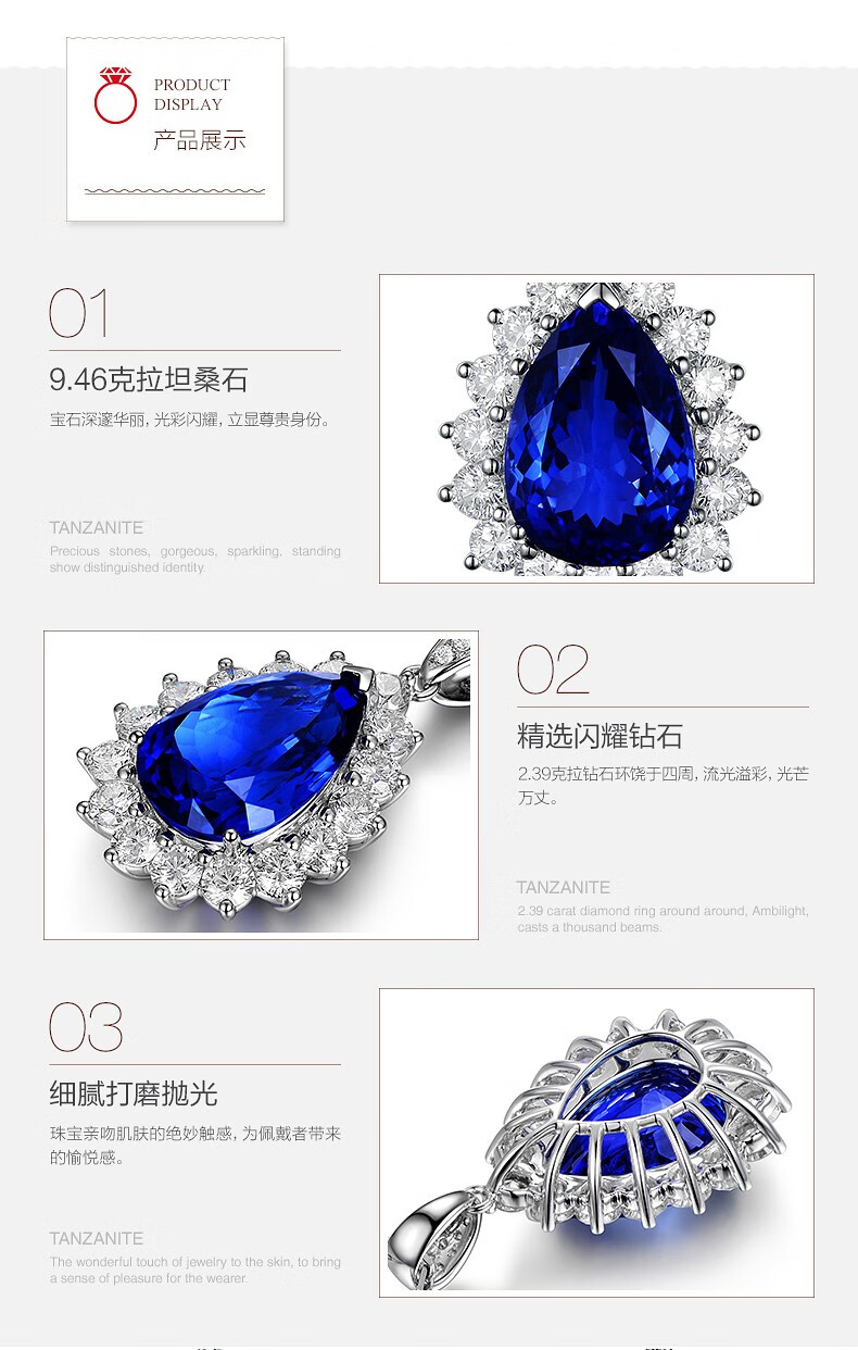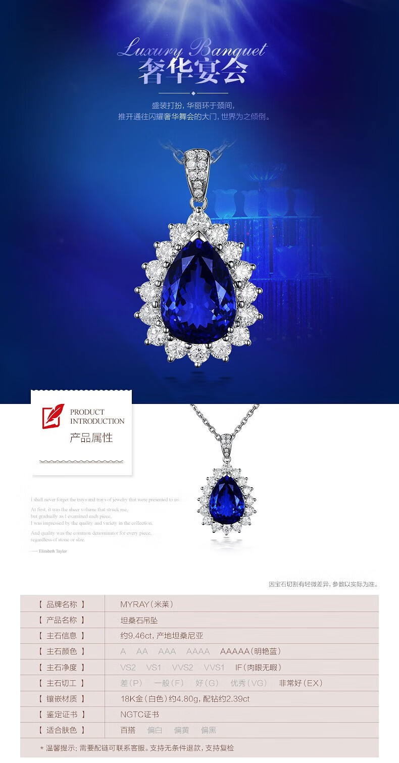 Millais Jewelry 5A Grade Brilliant Blue 9.46 Carat Tanzanite Pendant 18K Gold Inlaid Diamond Necklace Colored Gemstone Gift Does Not Include Chain (Chain Can Be Customized)