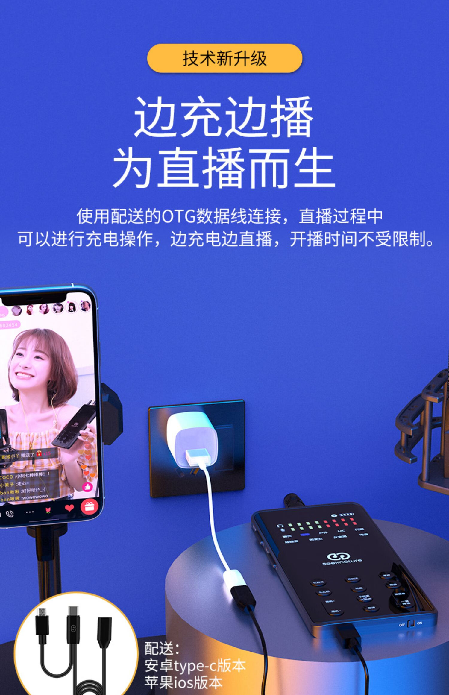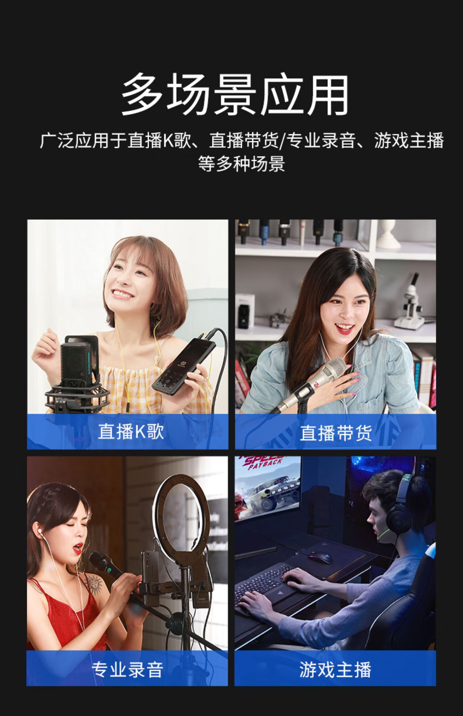 Senran Boba six-generation mini sound card set mobile phone live broadcast microphone computer notebook external sound card live broadcast equipment K-song Kuaishou Douyin eating chicken anchor Mai singing voice changer Senran Boba second-generation electronic music version sound card