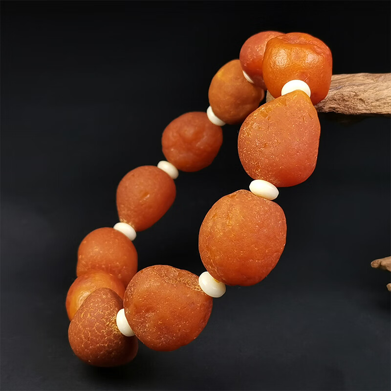 Hupai, one thing, one picture, one certificate, natural beeswax bracelet, raw stone bracelet, leather sea float, chicken fat red, raw mineral bracelet, 26.78g, 15*16mm