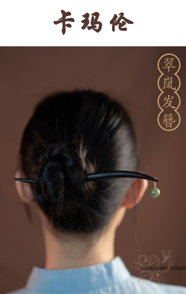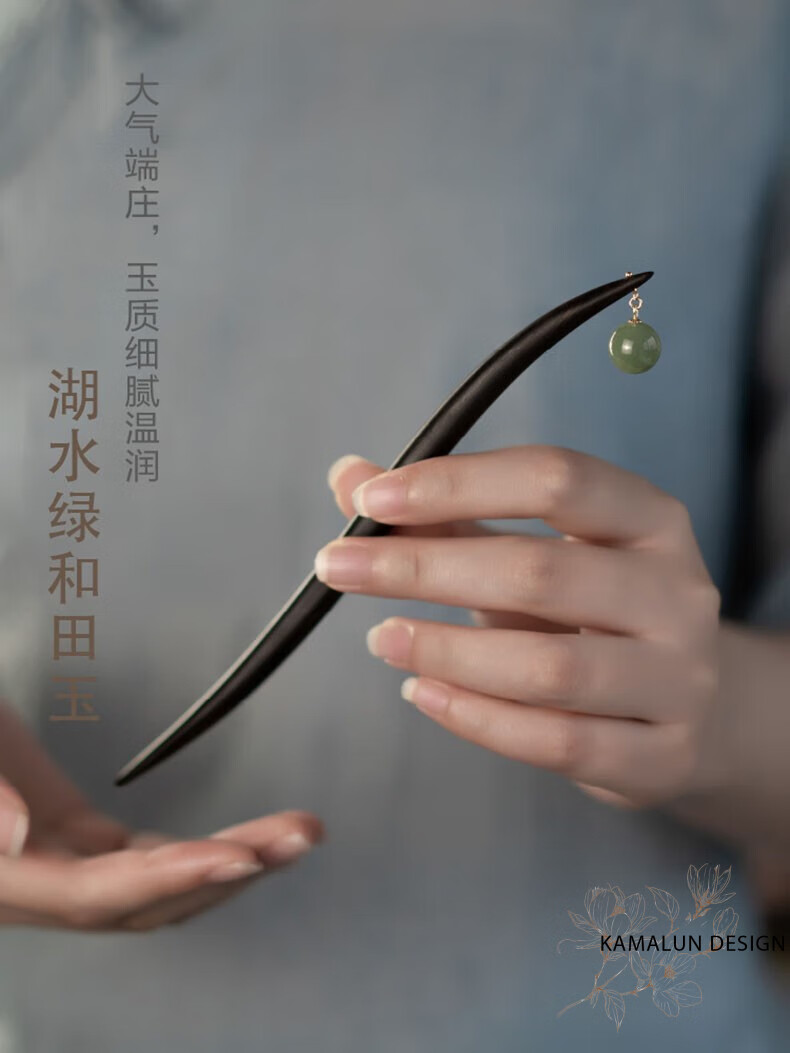 Kamalun (KAMALUN) sandalwood hairpin, ancient style hairpin, Chinese style cheongsam, Hetian jade hairpin, Hanfu headwear, birthday gift for girlfriend, Cuilan hairpin + brand gift box, no engraving