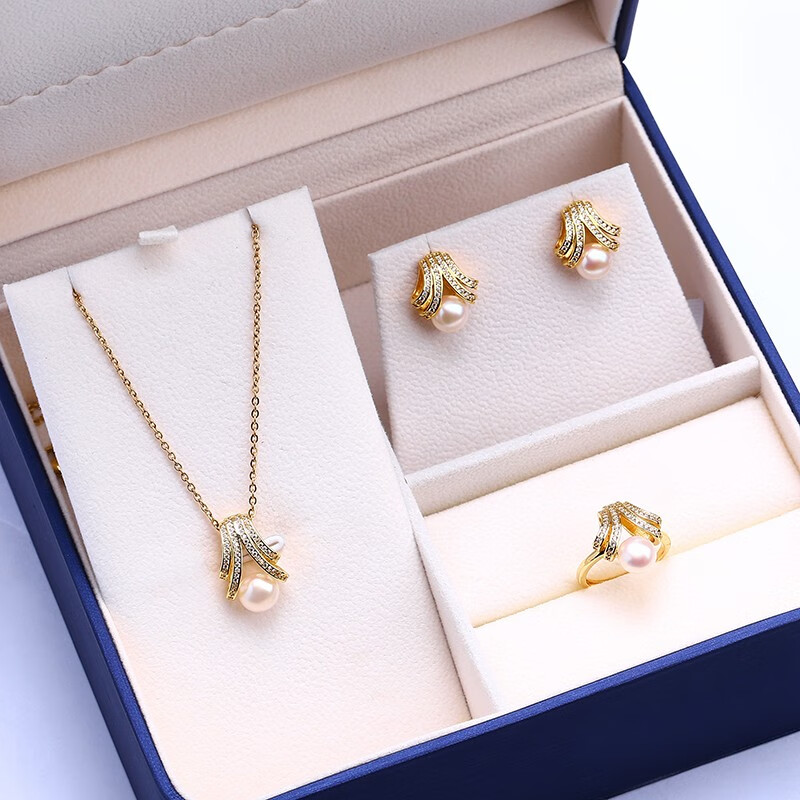 OLIVEIRA OLIVEIRA Pearl Pendant Ring Earrings New Three-piece Set Set Series C3-1295-1