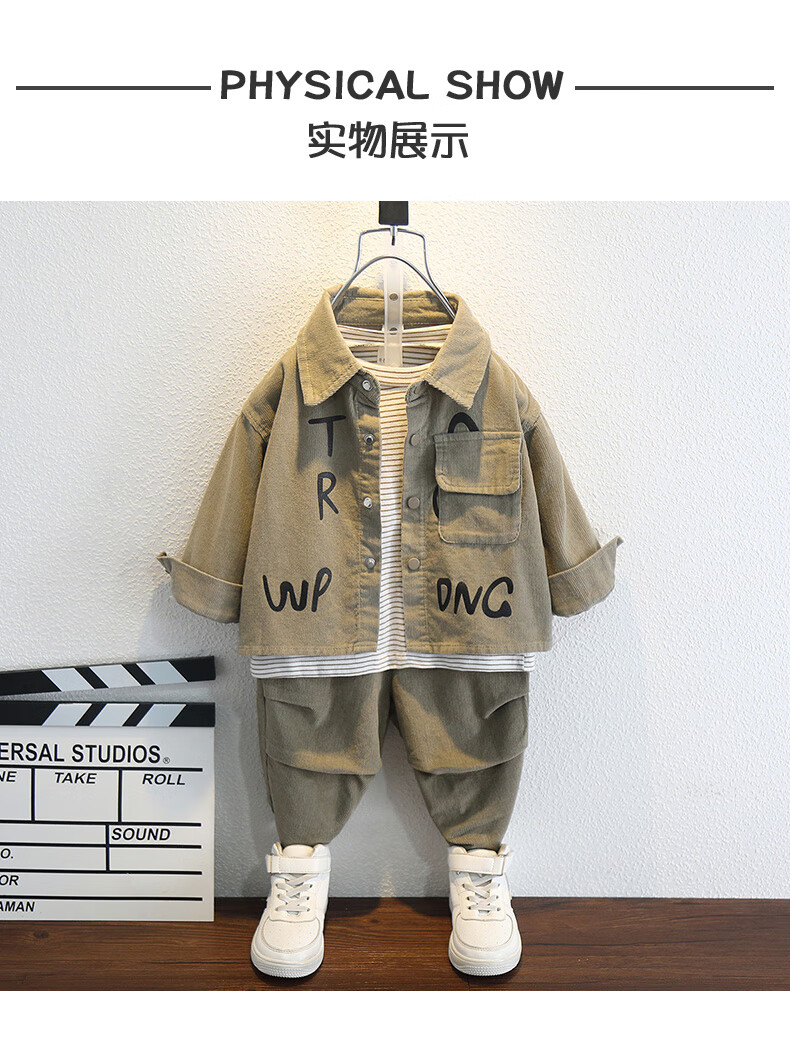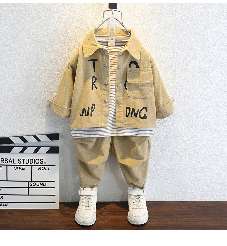 G.duck Boys Autumn Clothing Set 2025 Baby and Children's Clothing New Jacket Clothes Fashionable Baby Korean Style Casual Two-piece Set Trendy Khaki Color 100 cm