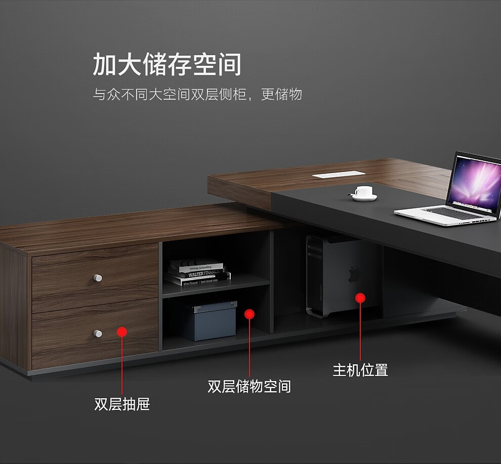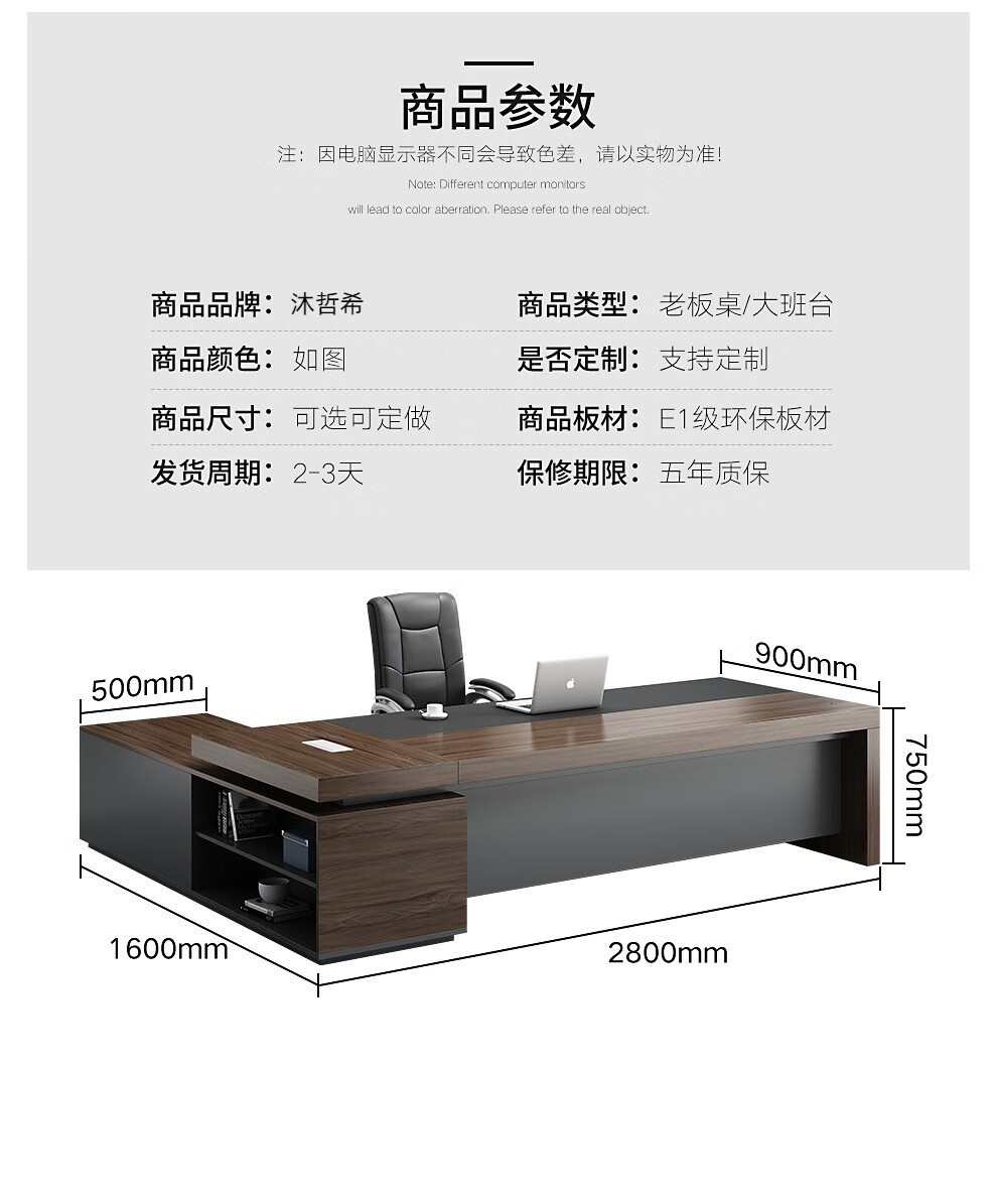 Mu Zhexi's boss table is simple, modern and elegant, office desk and chair, fashionable president's table, 1.6m boss table + boss chair