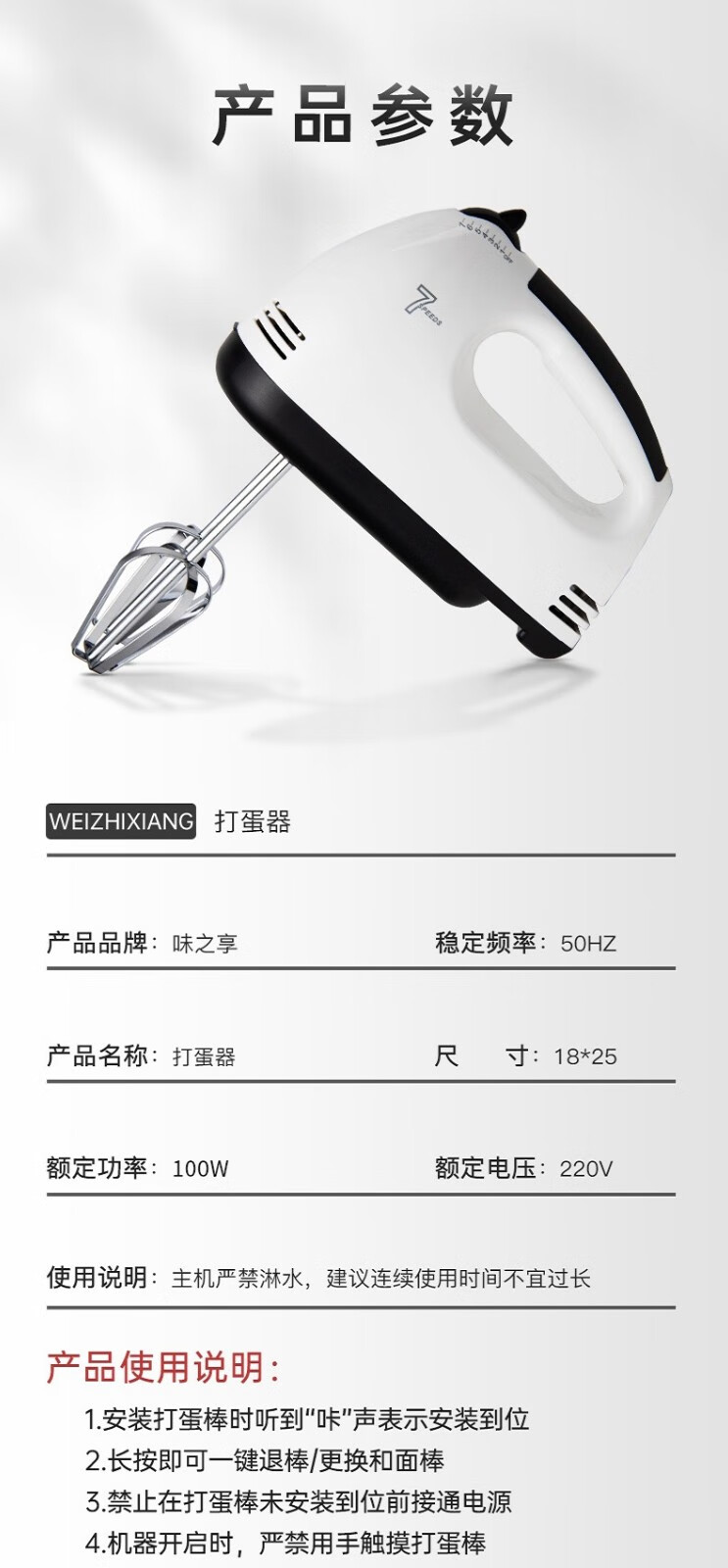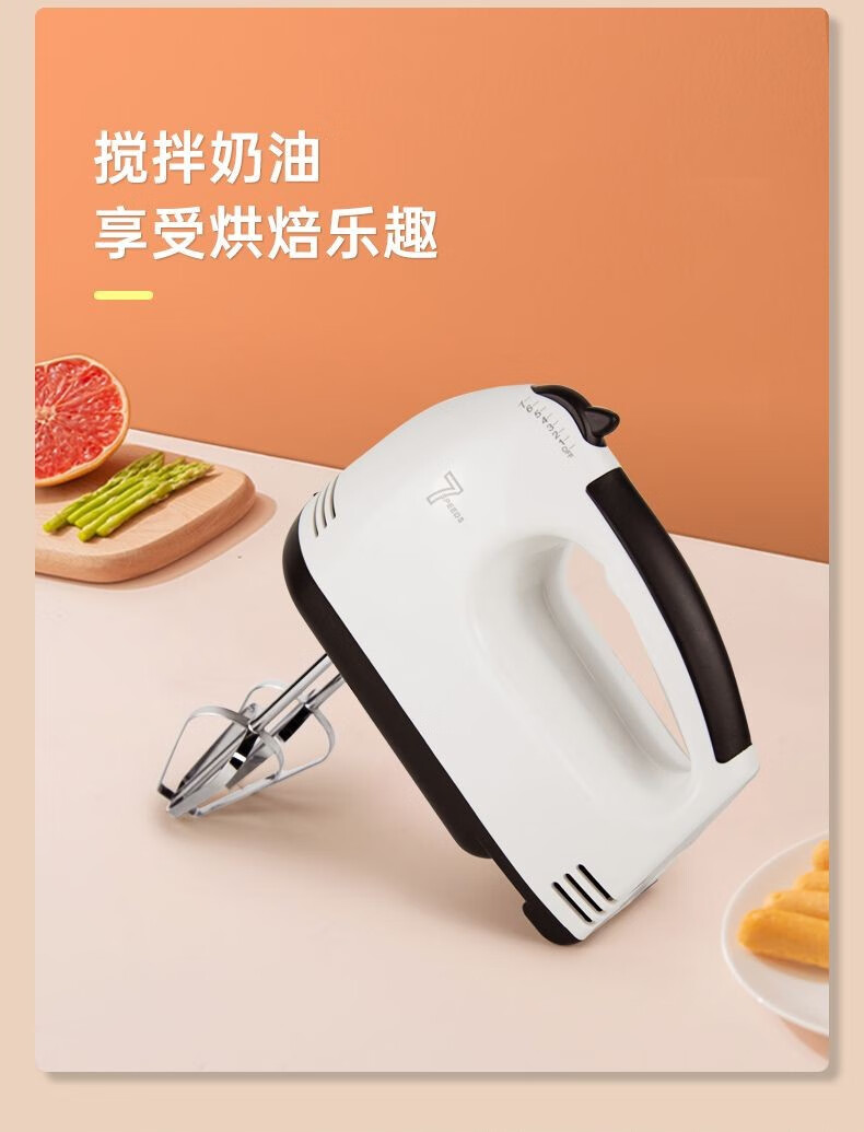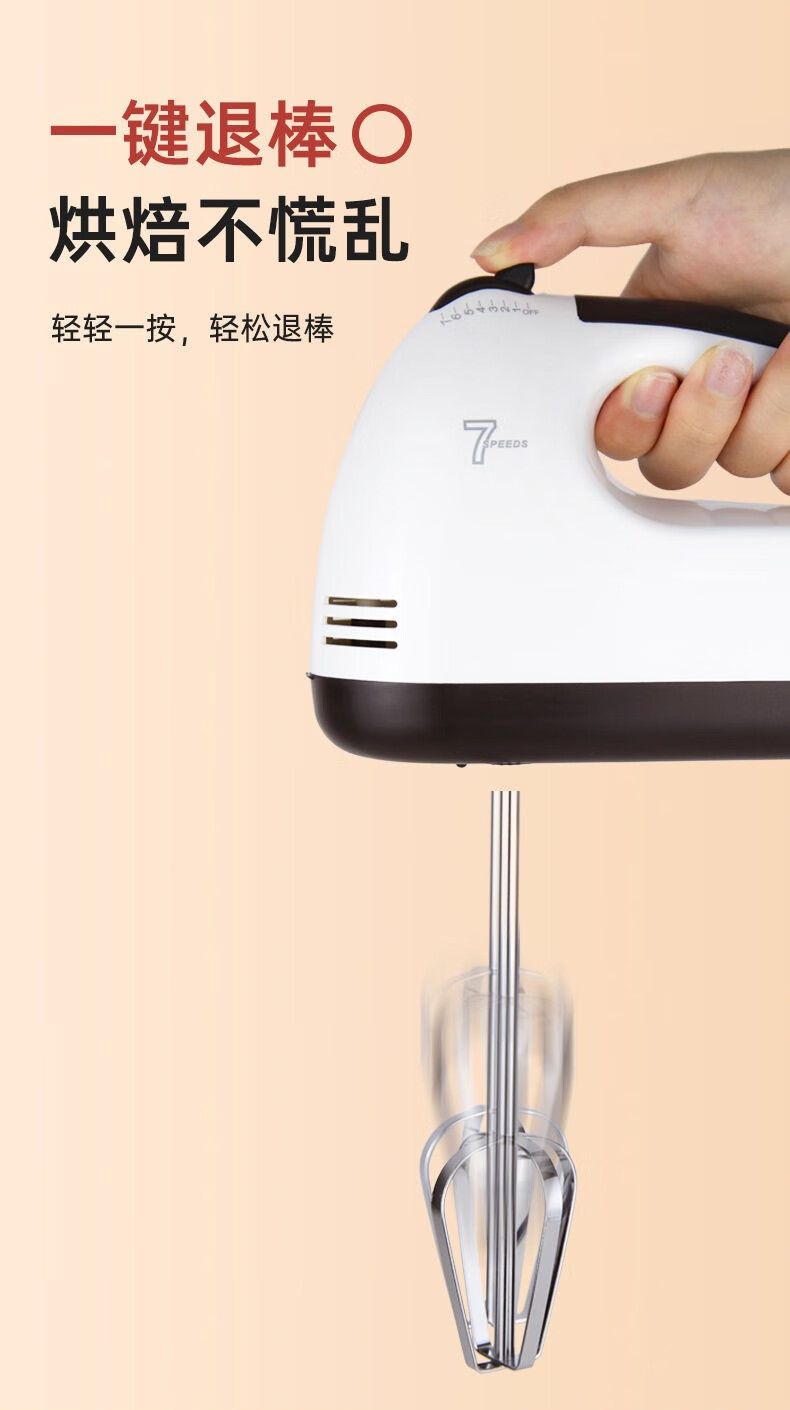 WeiZhiXiang electric egg beater household small handheld fully automatic baking tool creamer cake mixer whipper high-end 136/super strong motor heat dissipation and noise reduction 120W power egg beater 7-speed speed adjustment