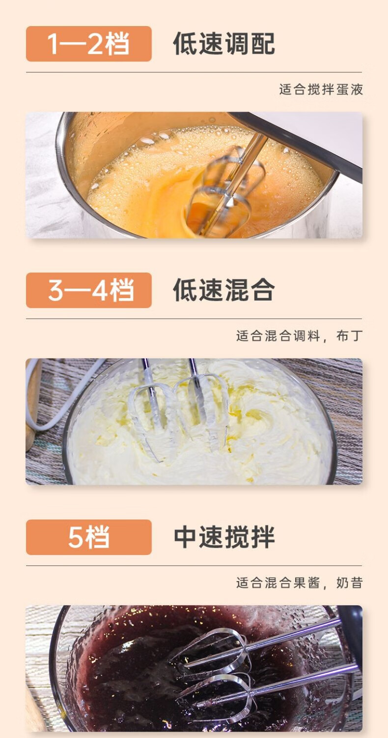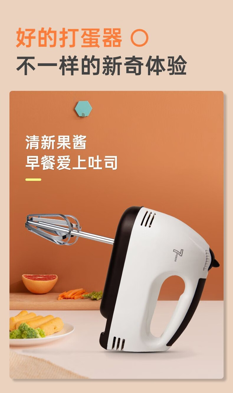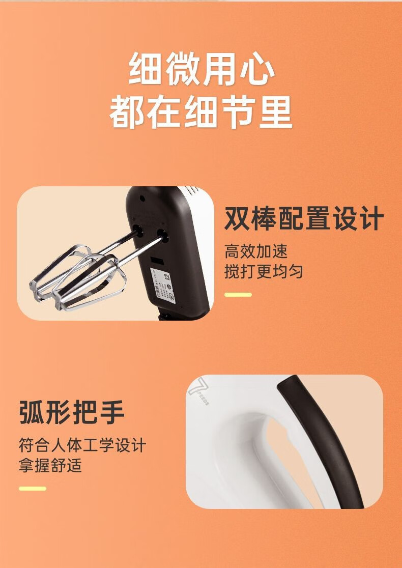 WeiZhiXiang electric egg beater household small handheld fully automatic baking tool creamer cake mixer whipper high-end 136/super strong motor heat dissipation and noise reduction 120W power egg beater 7-speed speed adjustment