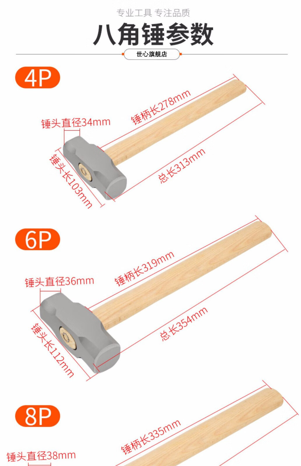Shixin octagonal hammer wooden handle 468 pounds wall-breaking heavy-duty hammer multi-functional household hammer square head hammer large hammer wooden handle octagonal hammer 6P