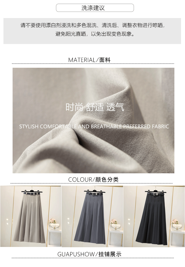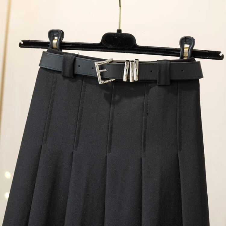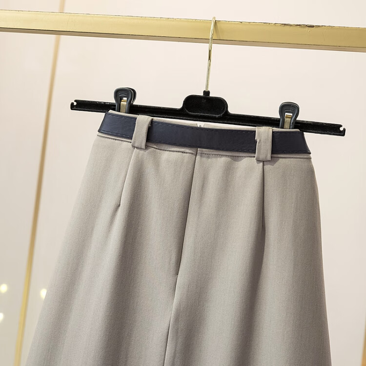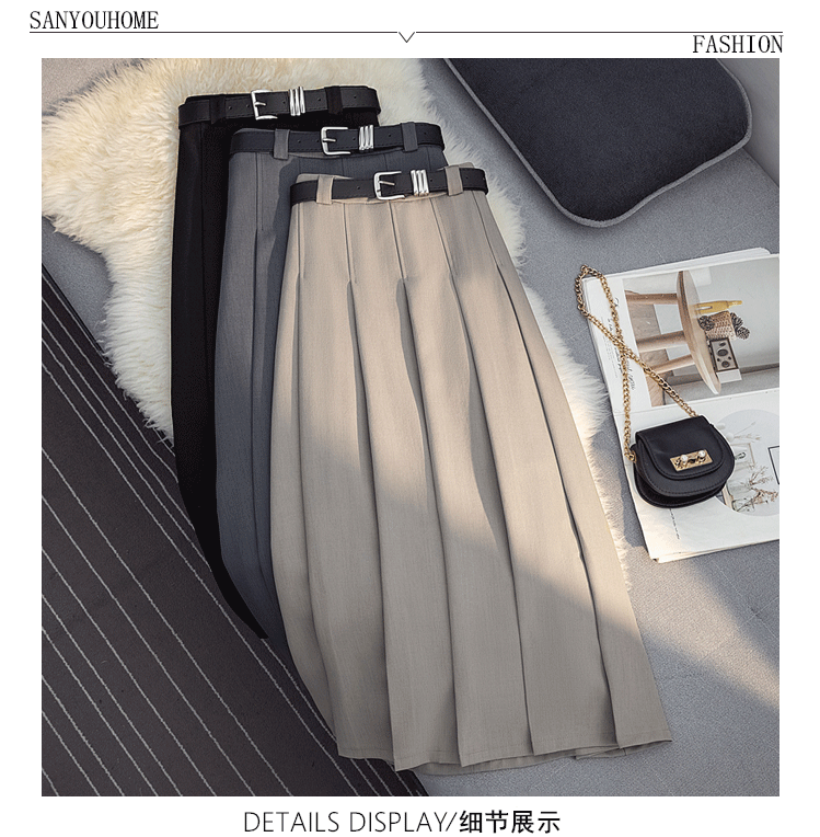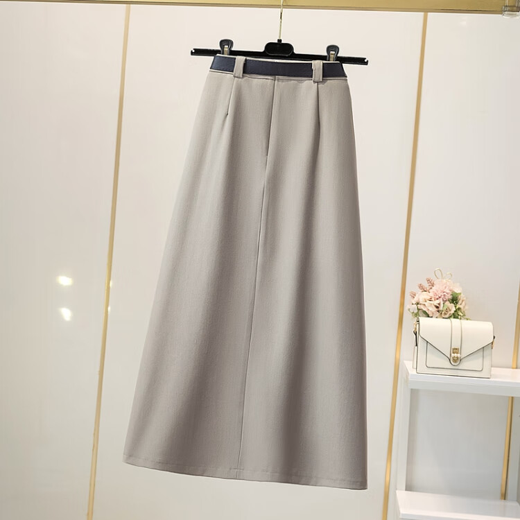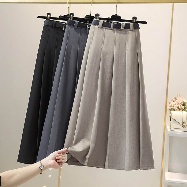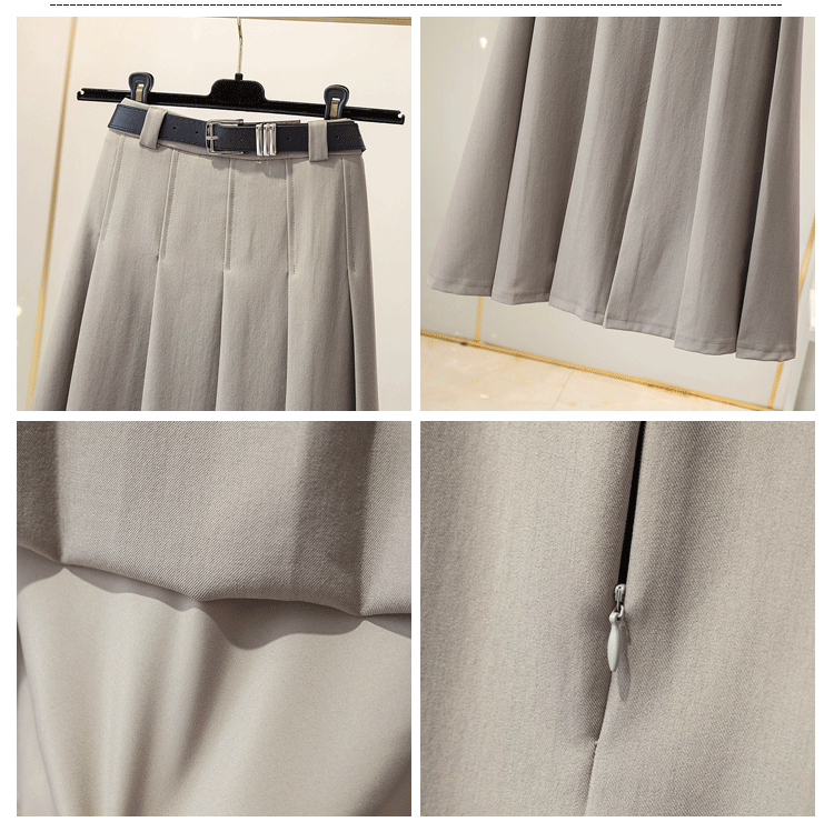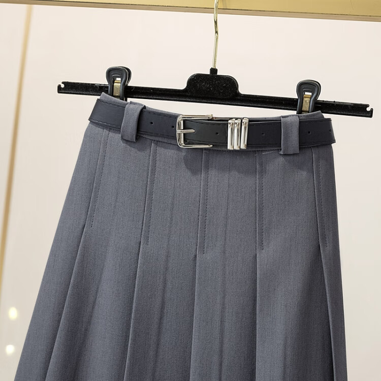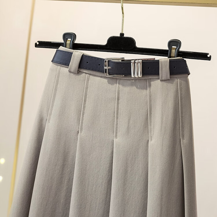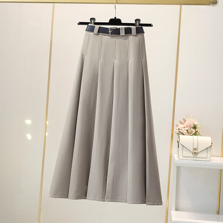 Avmko drapey hip-covering pleated skirt for women 2025 new high-waisted suit skirt mid-length A-line bottoming skirt college style light gray S