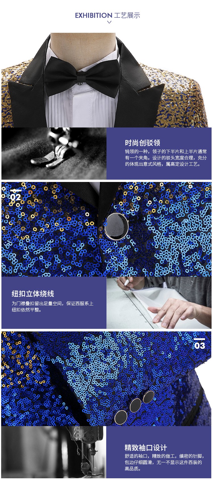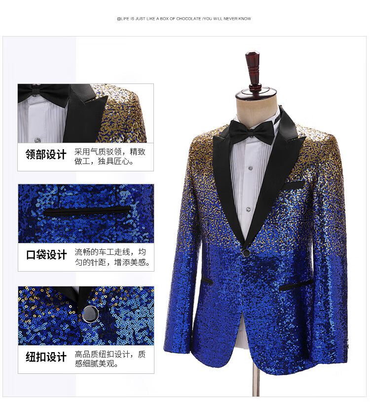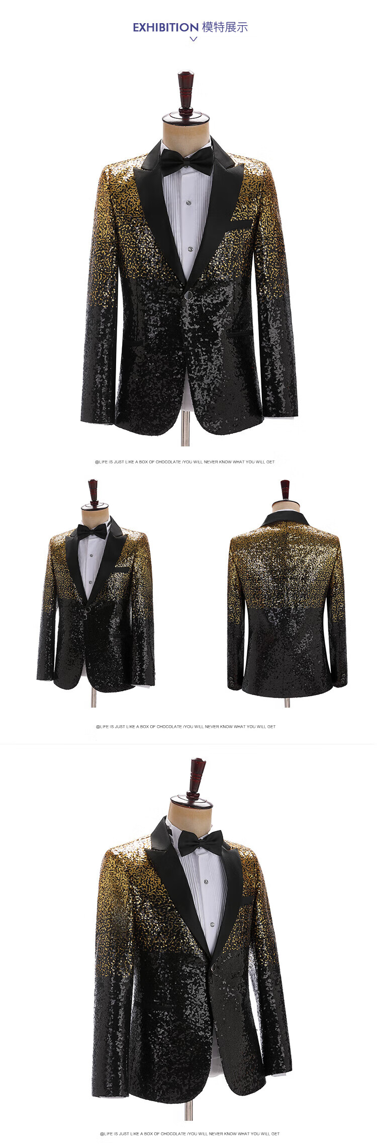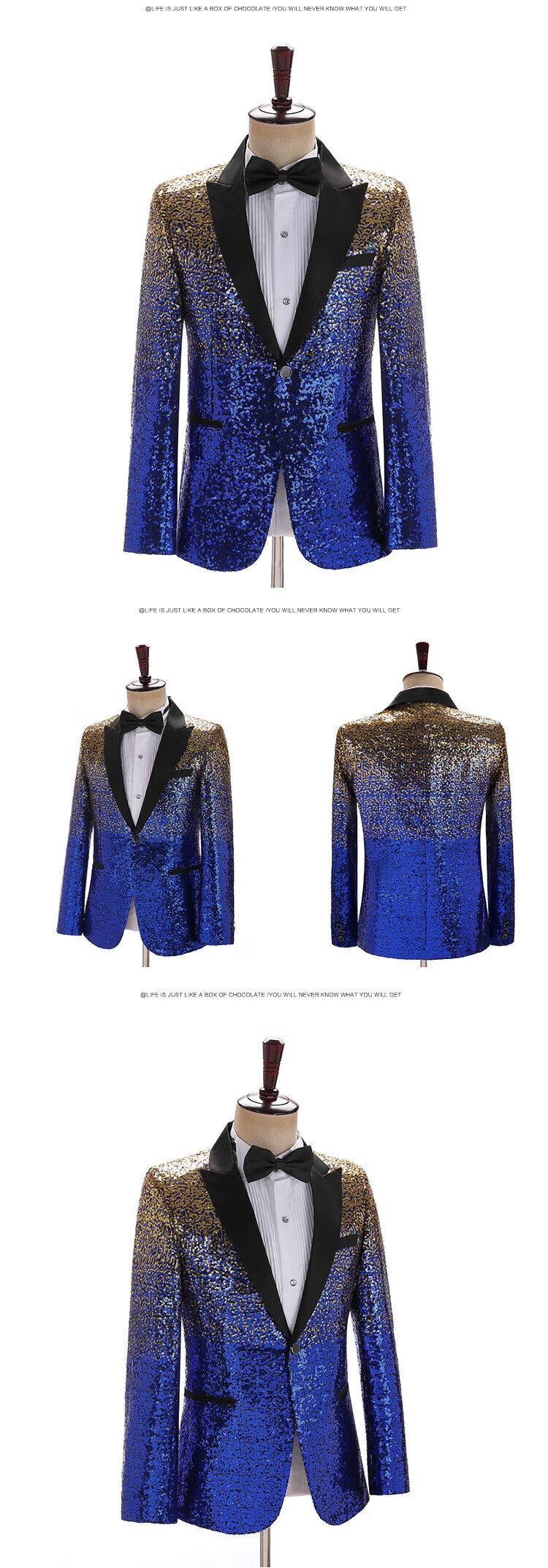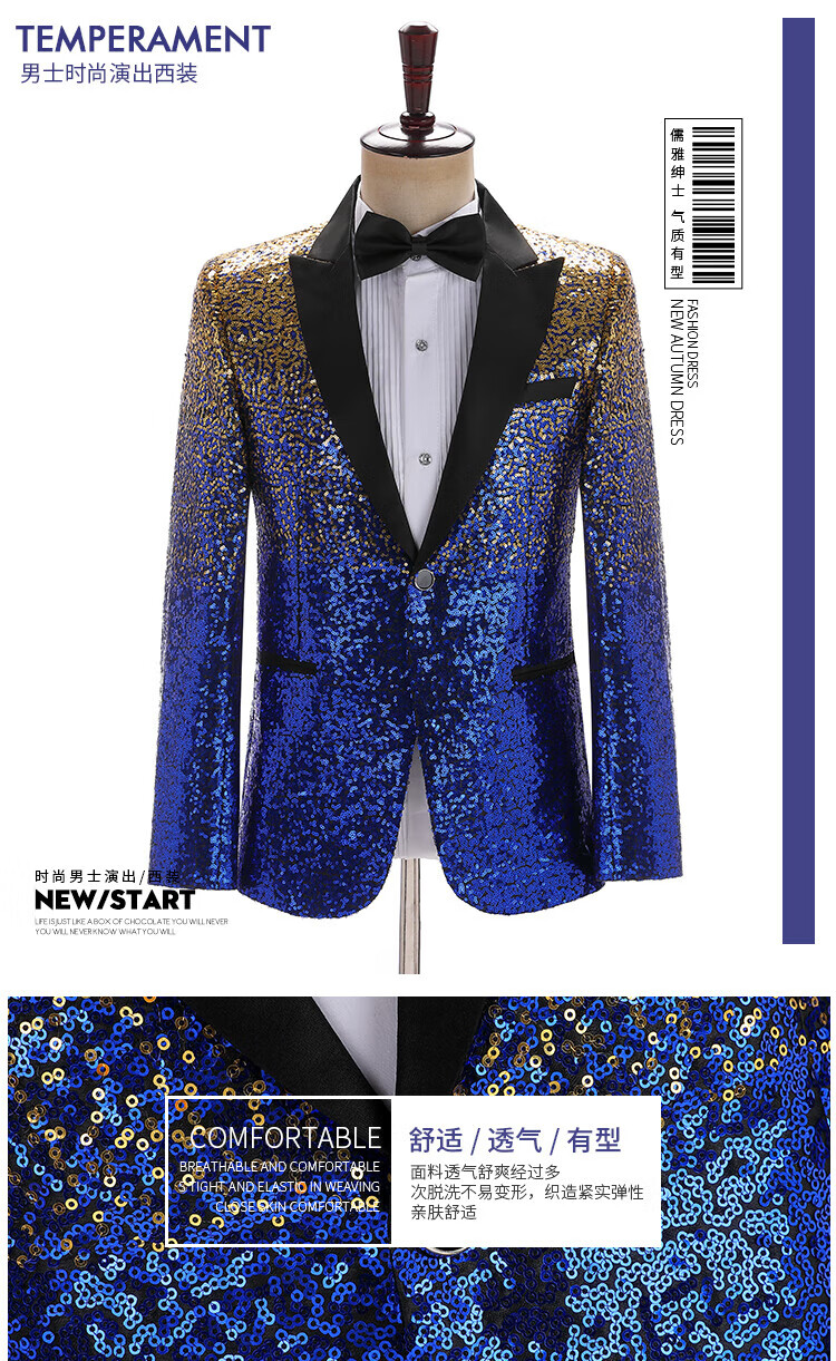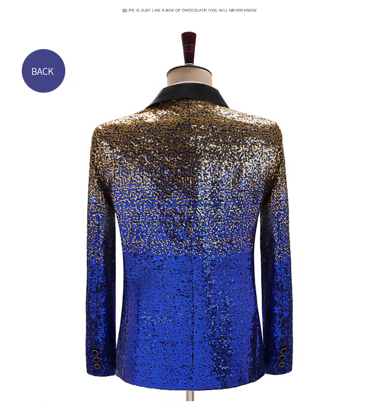 Zhehan host male singer performance clothing colorful gradient sequin suit top men's stage style shiny catwalk blue_gold L