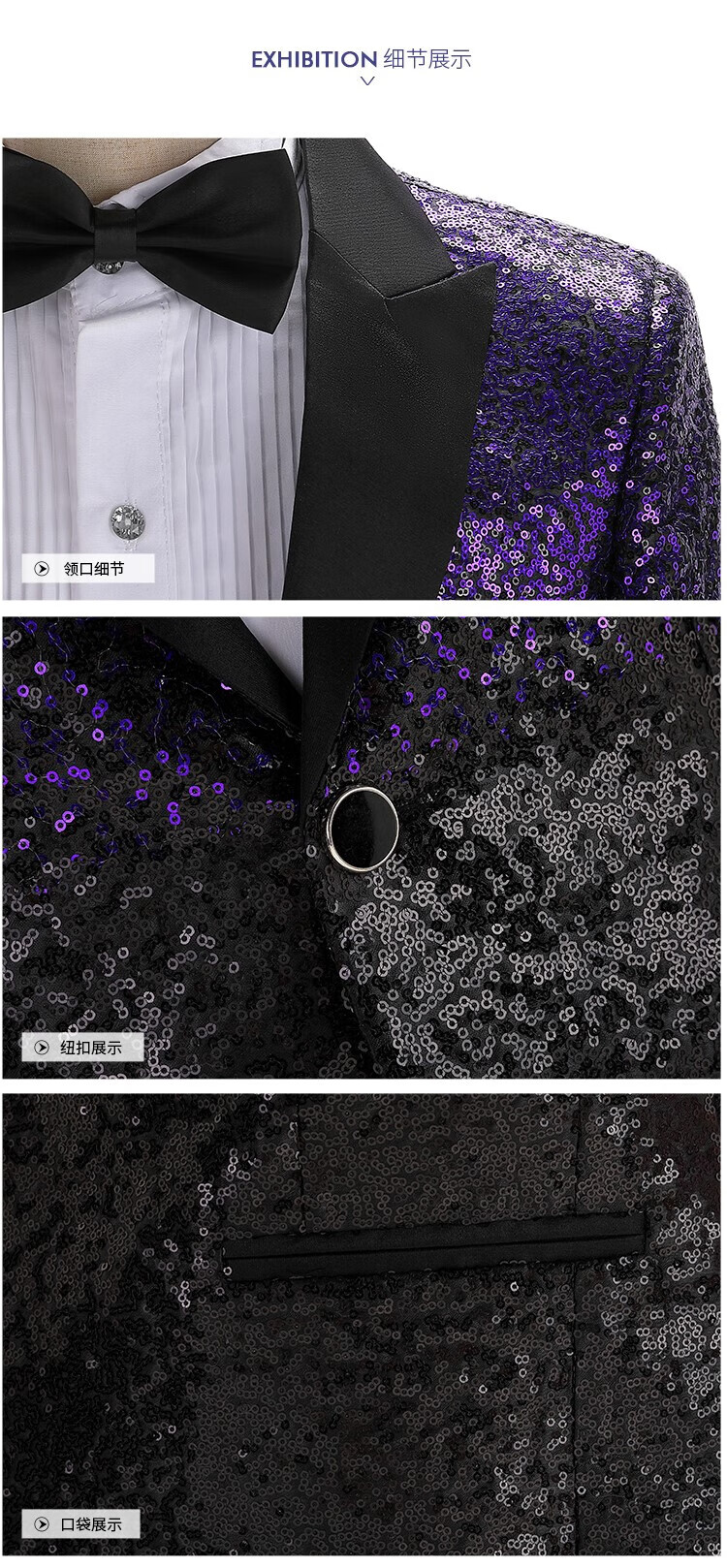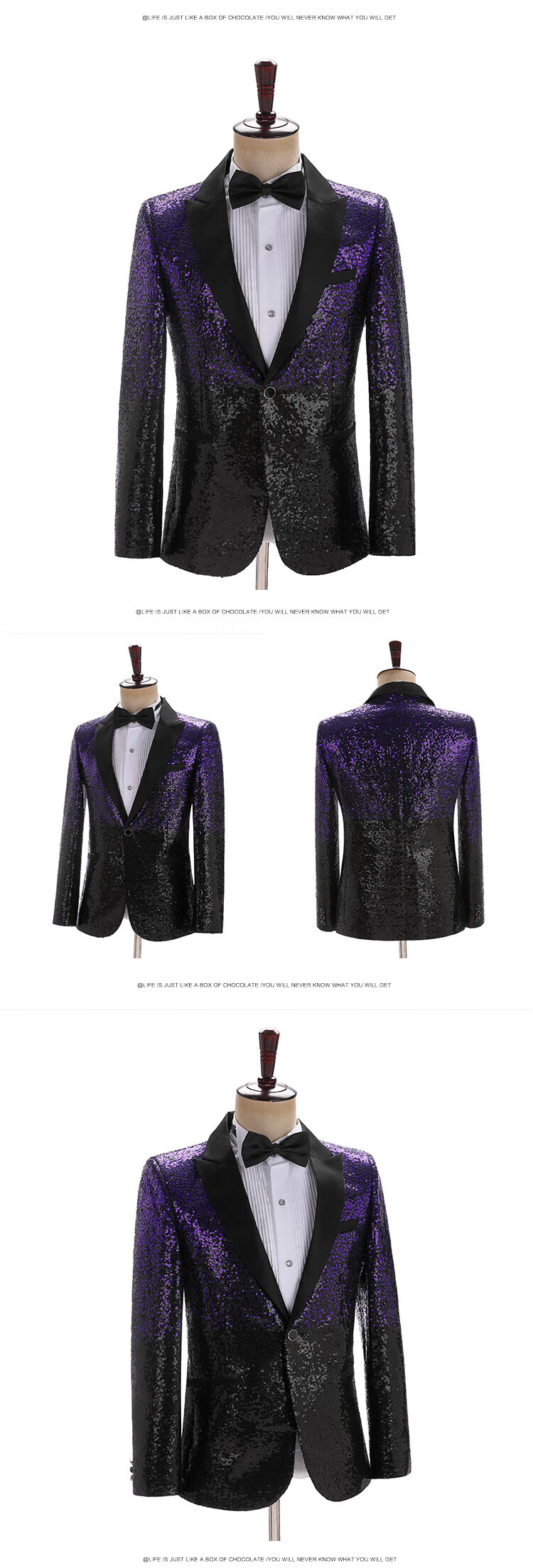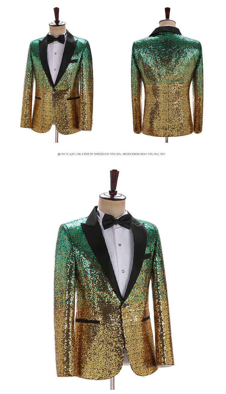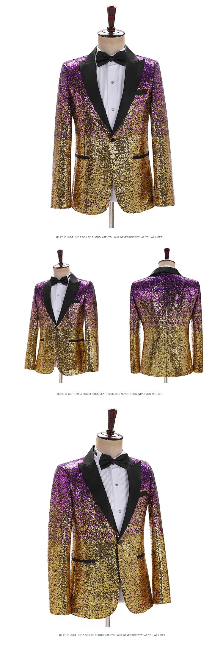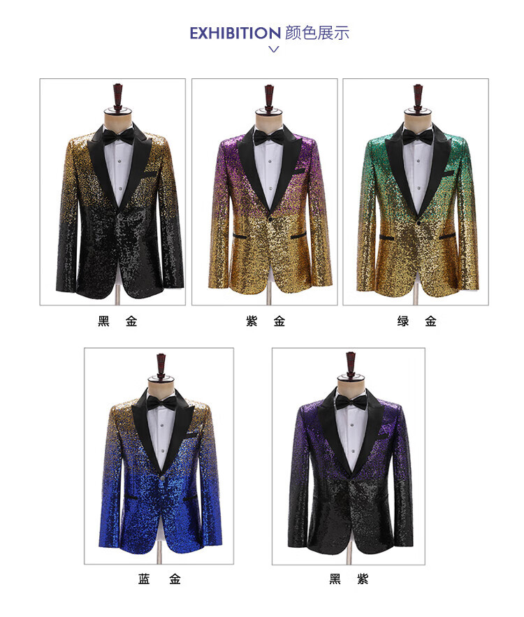 Zhehan host male singer performance clothing colorful gradient sequin suit top men's stage style shiny catwalk blue_gold L
