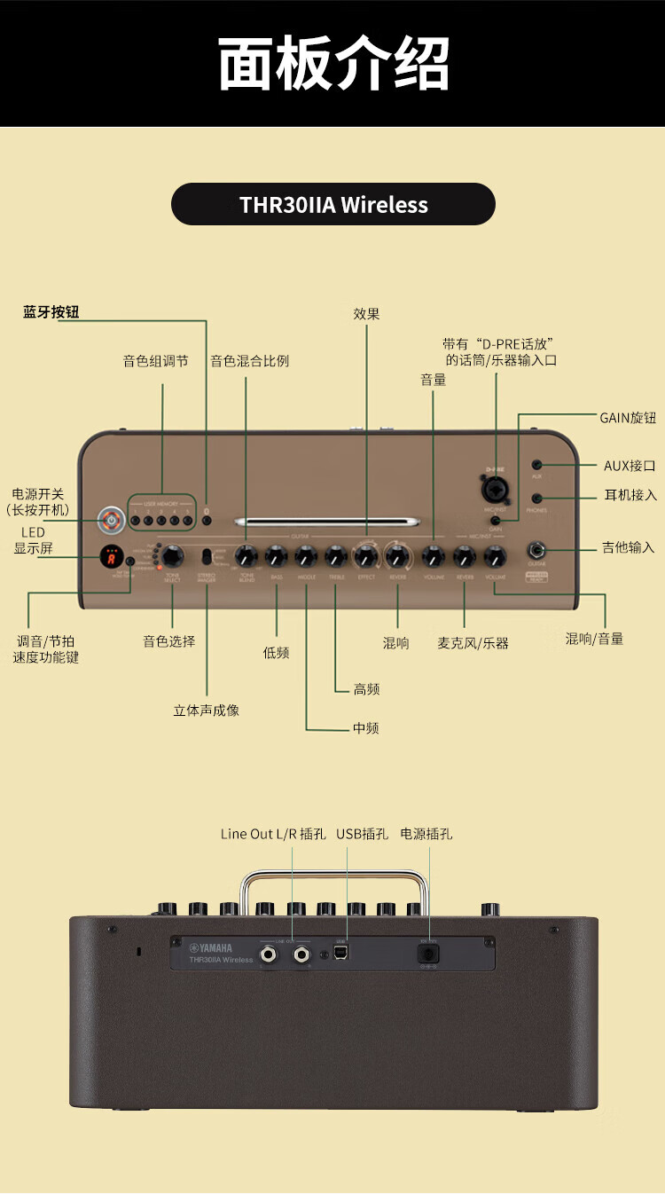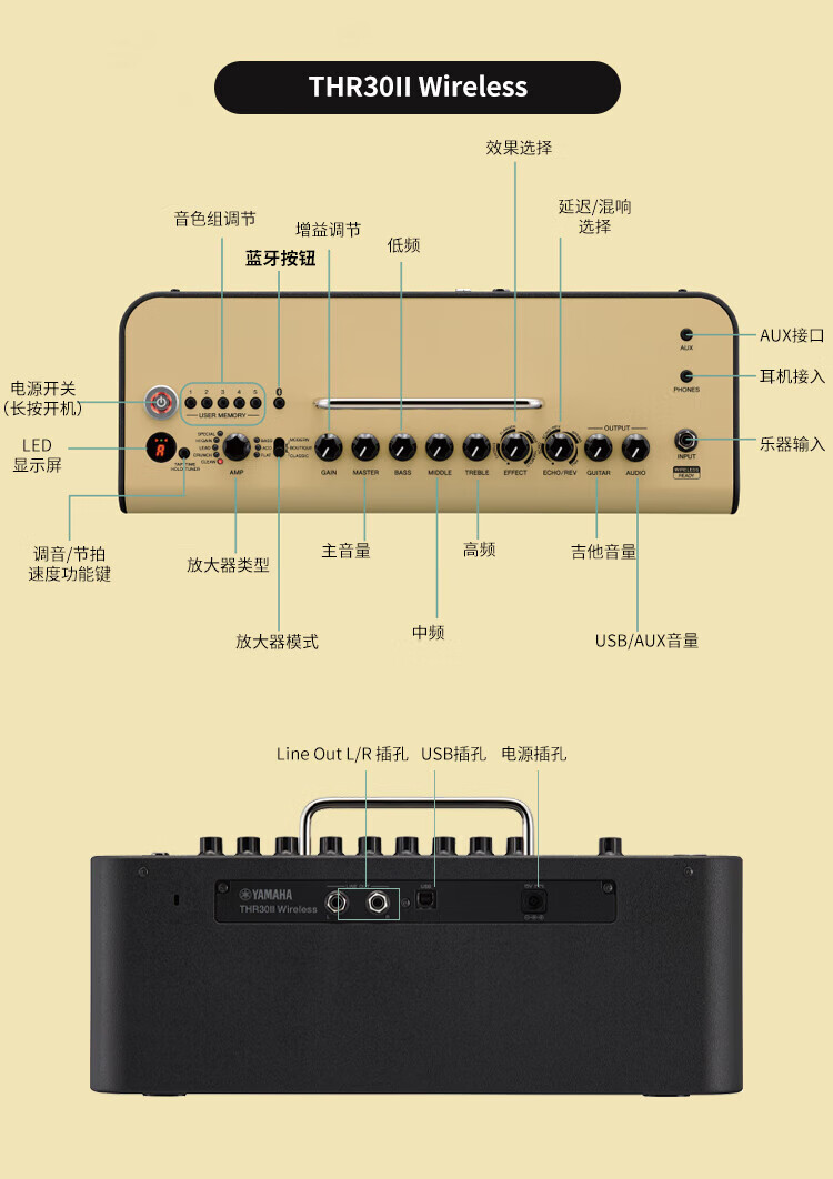 Yamaha (YAMAHA) THR10II guitar speaker THR30WL rechargeable portable Bluetooth playing and singing electric acoustic guitar speaker THR5 THR5A acoustic guitar + battery powered + 10W