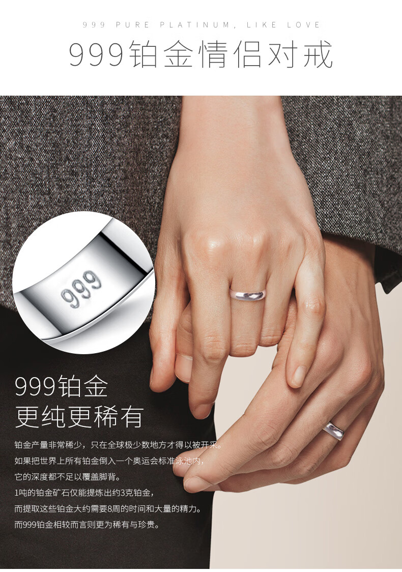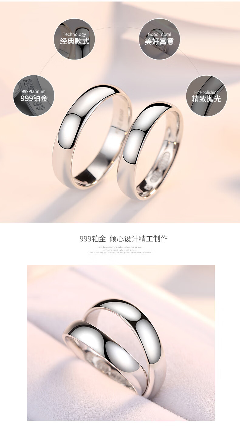 Misu Platinum Ring for Men and Women Couples PT999/950 Platinum Classic Versatile Smooth Ring Wedding Ring Birthday Number 12 Single 3.5-3.7 Grams