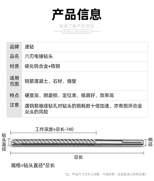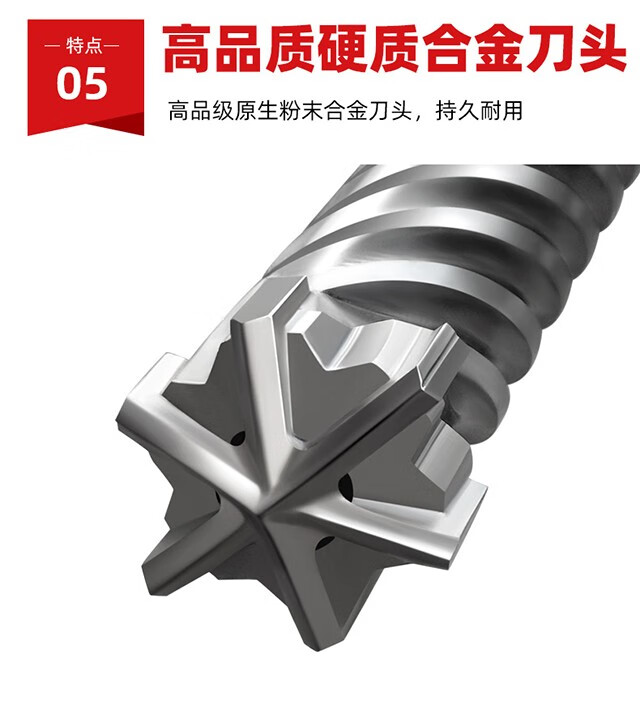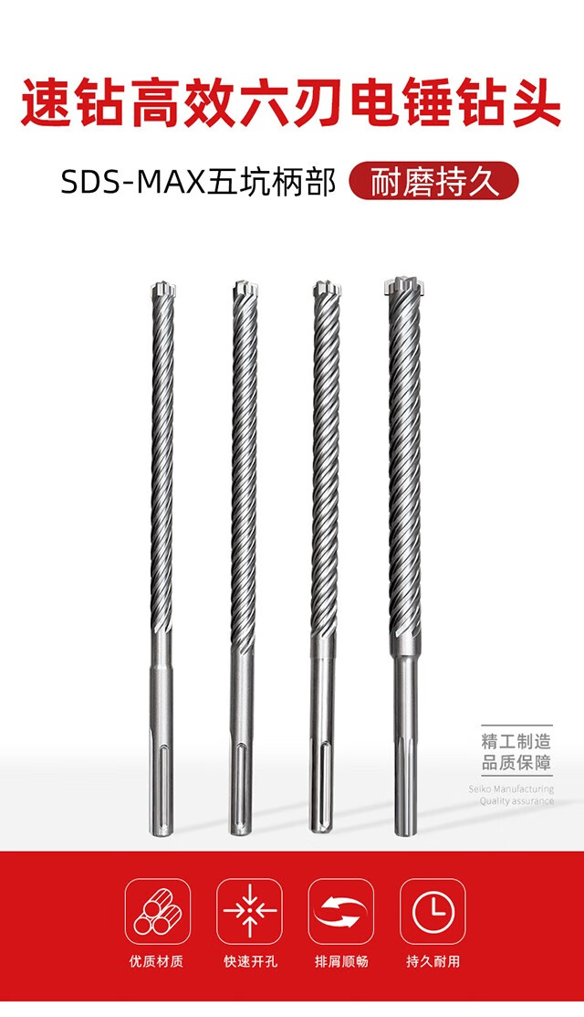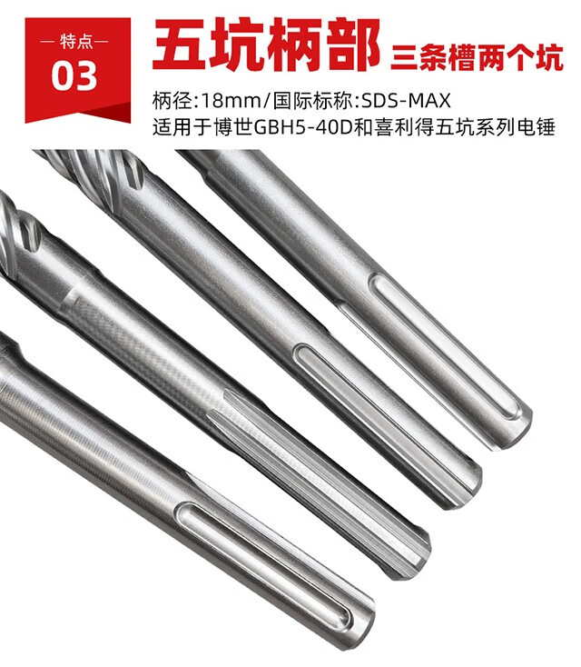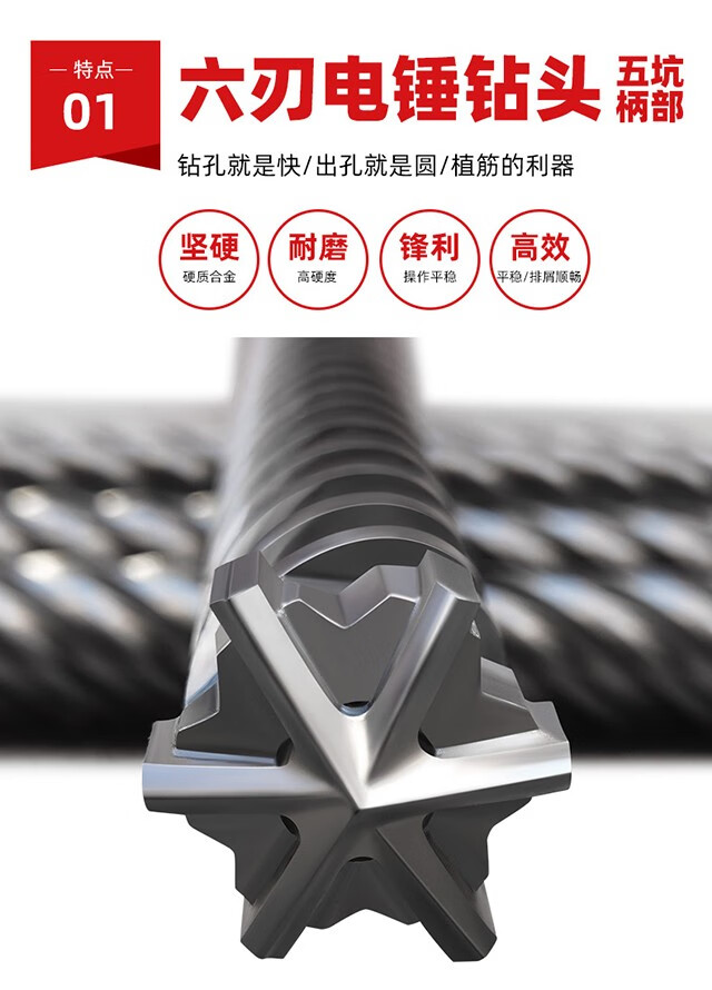 Speed drilling five-pit six-edged electric hammer drill bit for reinforced concrete wall stone drilling suitable for GBH5-40D electric hammer five-pit six-edged 18*340