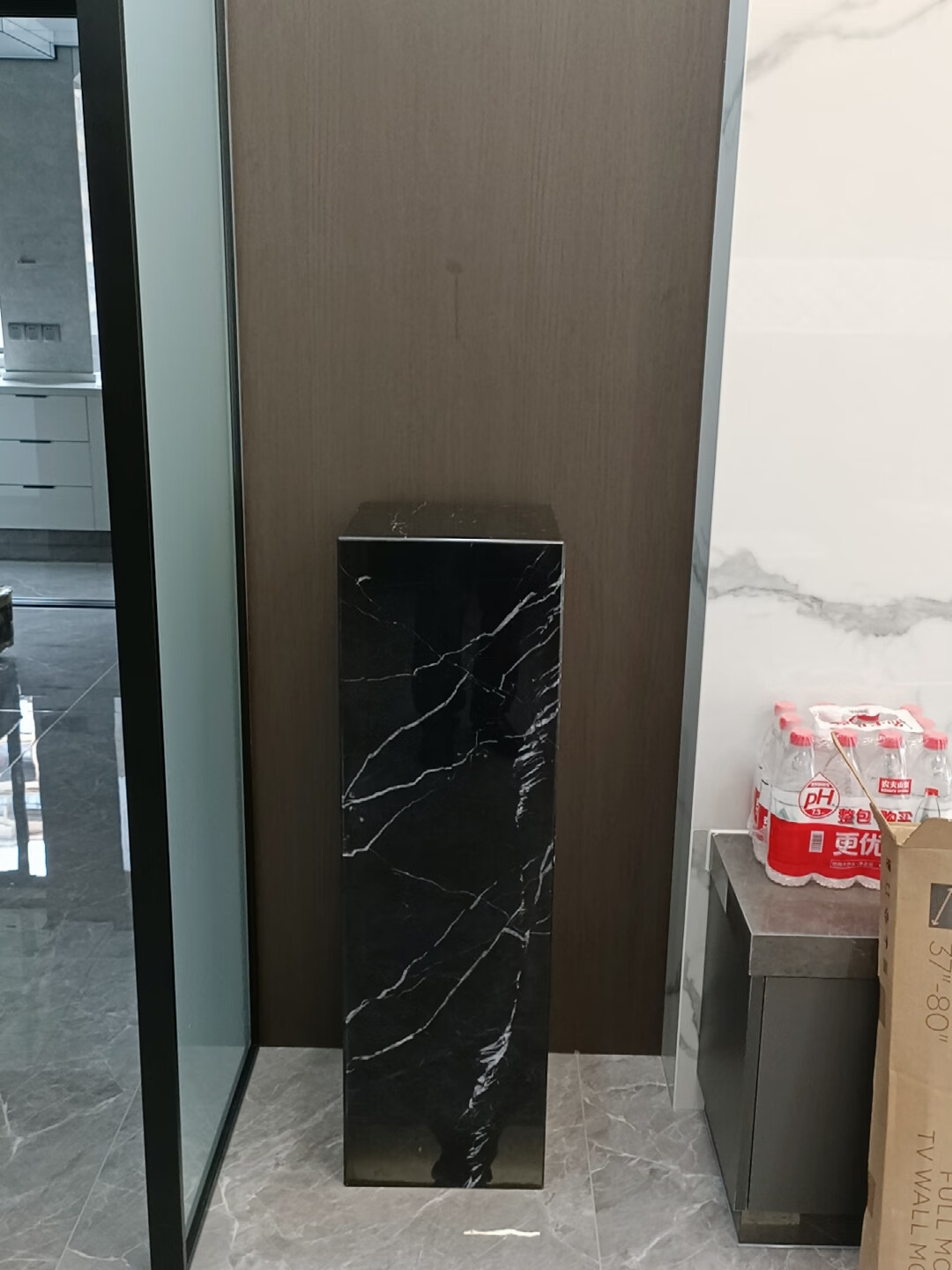 Black and white root marble base entrance hall decoration hotel sales office model room sculpture base floor display stand natural black and white root marble 300*300*400mm