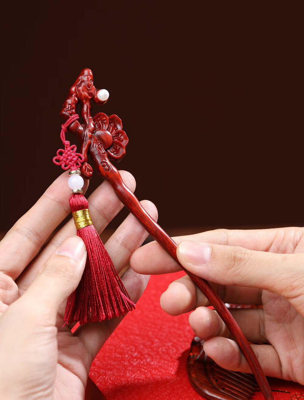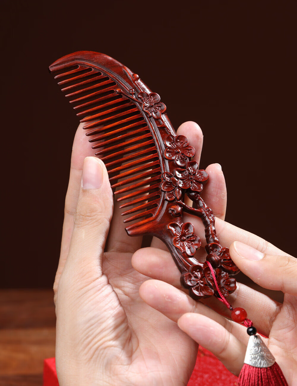 Meng Junchen Small Leaf Rosewood Hairpin Mahogany Peach Blossom Drunken Plum Blossom Hairdressing Comb for Girlfriend’s Birthday and Valentine’s Day Gift Set Peach Blossom Drunken (comb + Hairpin) Gift Box Set