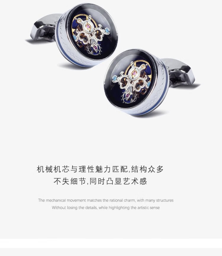 WILLIAM MILTON Blue Eternal Tourbillon Cufflinks Men's Light Luxury Accessories High-End French Cuff Nails Customized Birthday Gift Box Enamel Blue Bottom