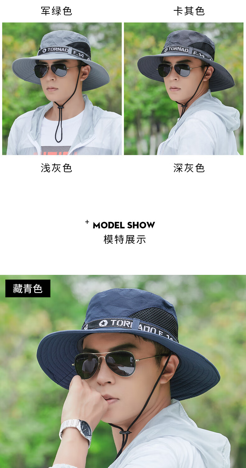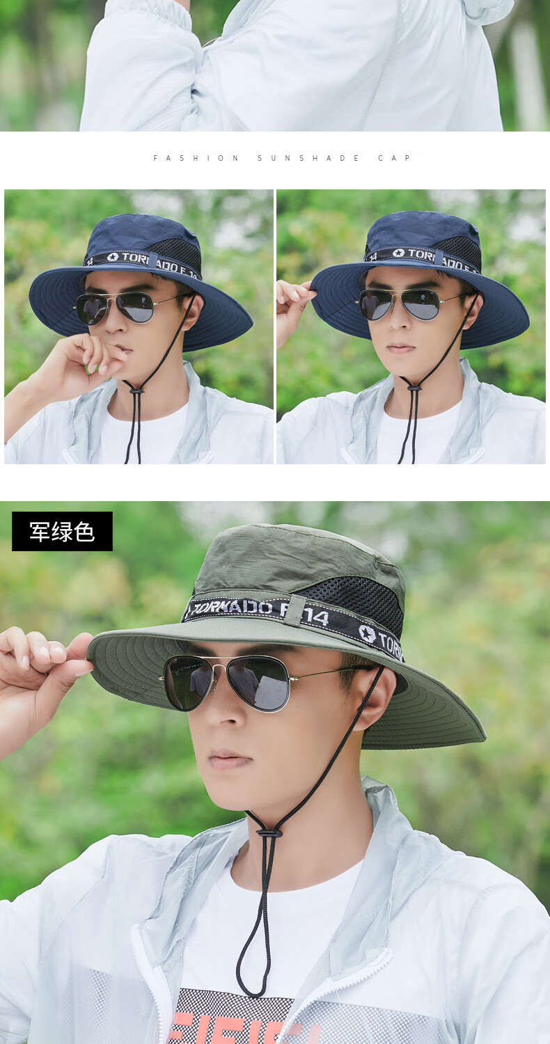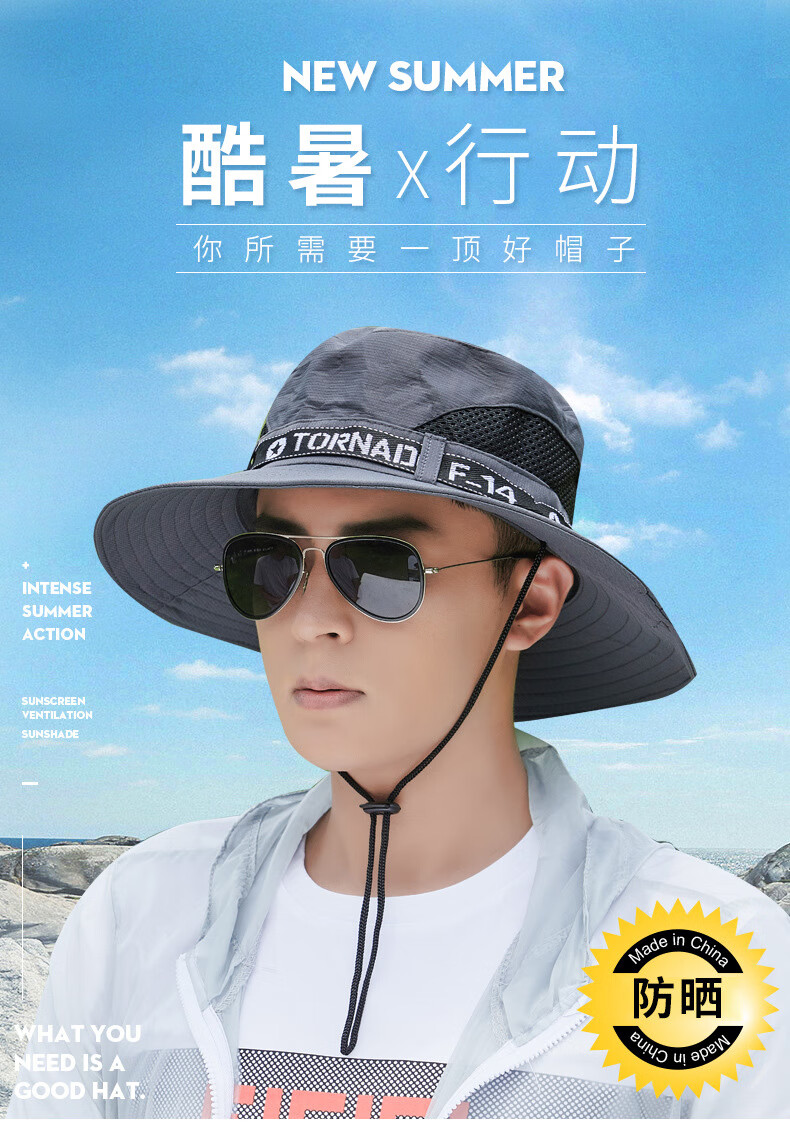 Charming sun hat men's summer fishing sun hat outdoor mountaineering sun large brim fisherman hat men's sun protection hat dark gray one size