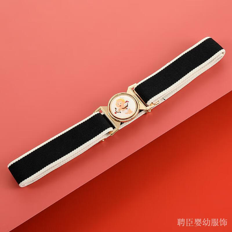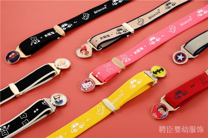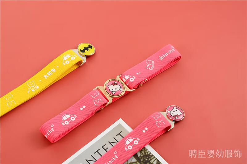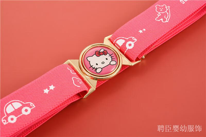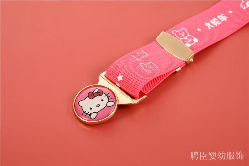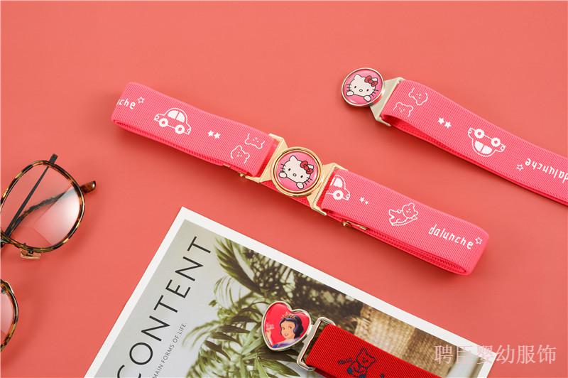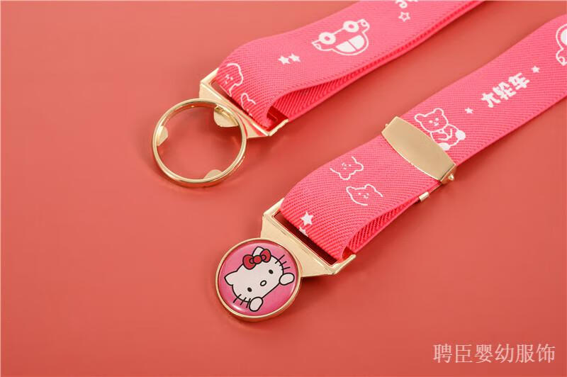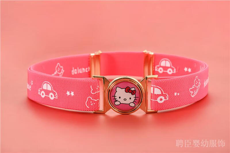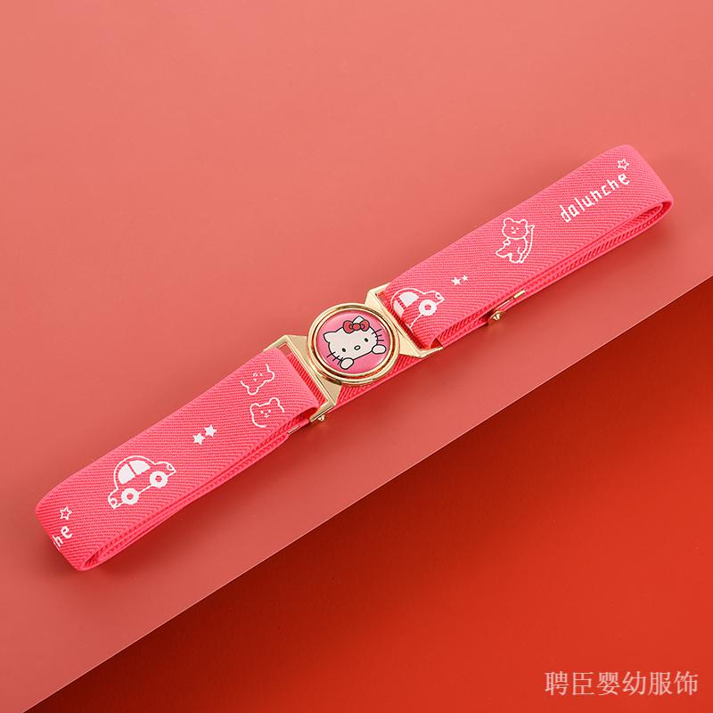 G.DUCKKIDS girls' pants belt, boy's primary school student's belt, children's rubber band, little girl's simple toddler anti-fall belt, middle and older children's printed model, pink, kitten gold round buckle