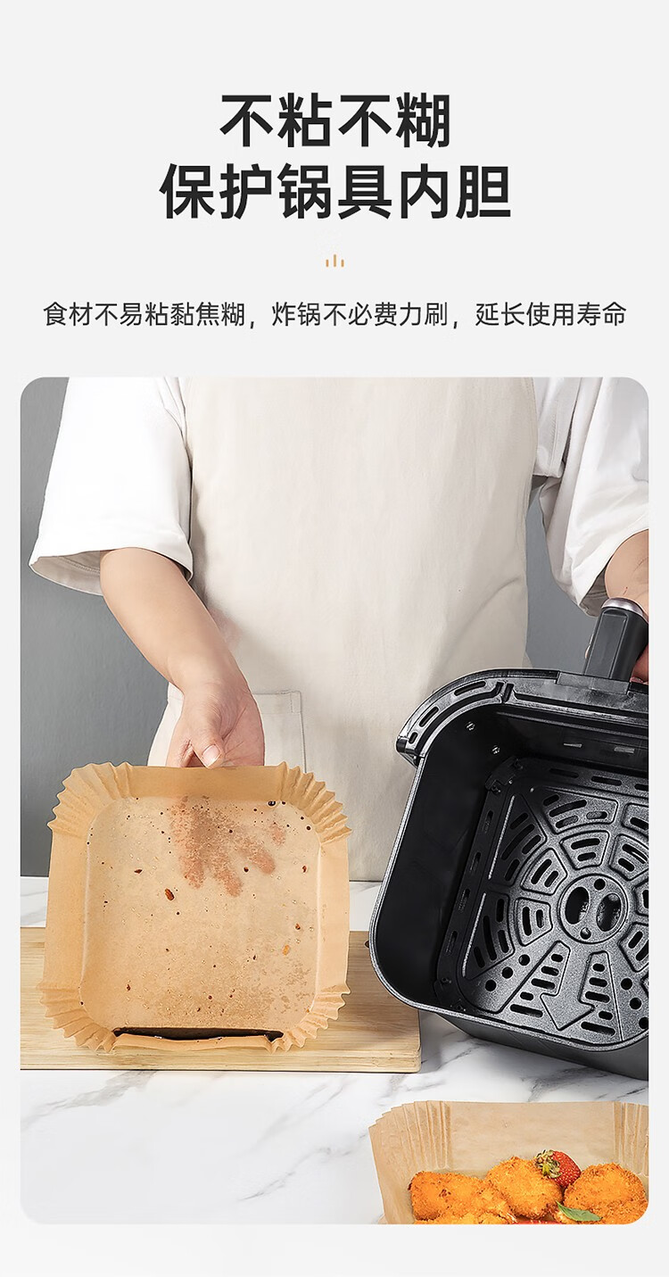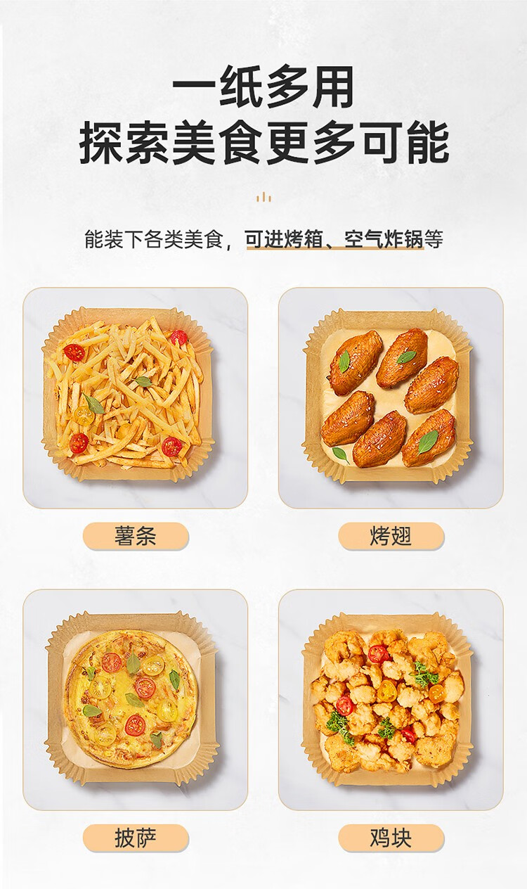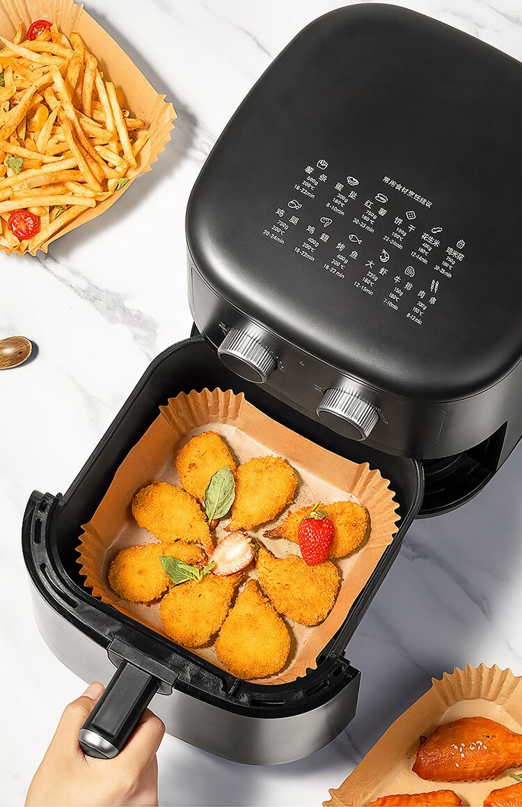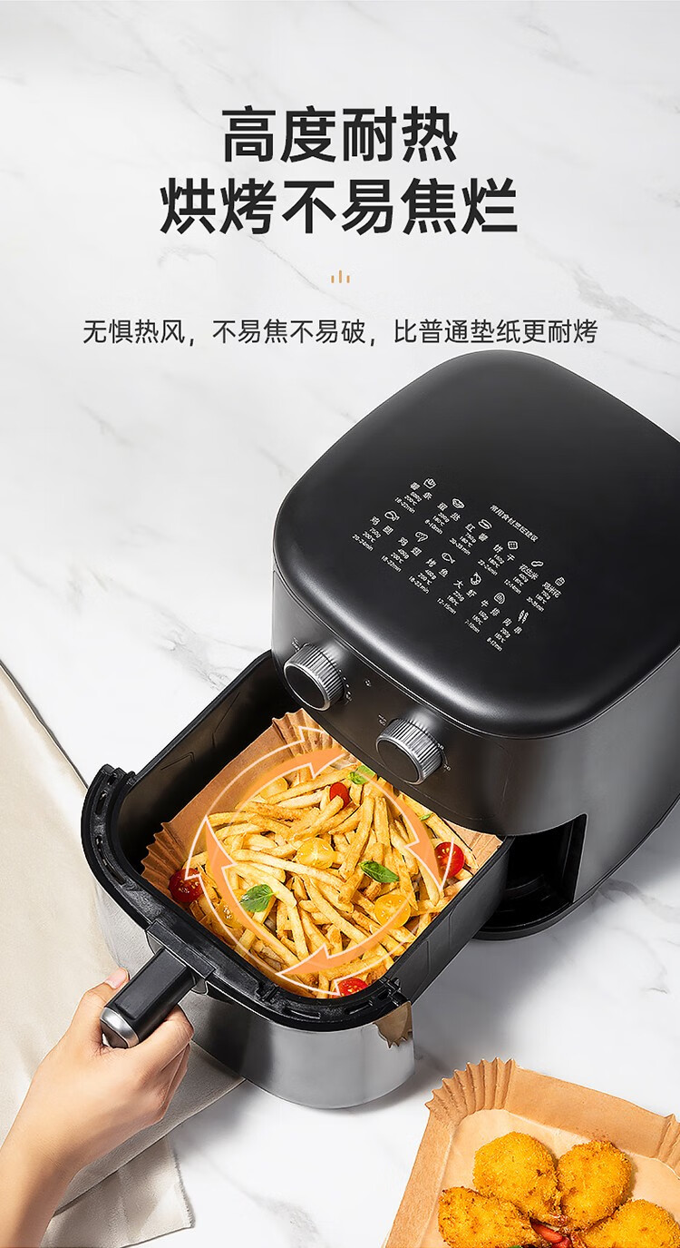 COOKER KING air fryer special paper log color square paper pad 5-6L household baking oil-absorbing paper pad barbecue paper 20cm 50 sheets suitable for 4-6 liter fryers